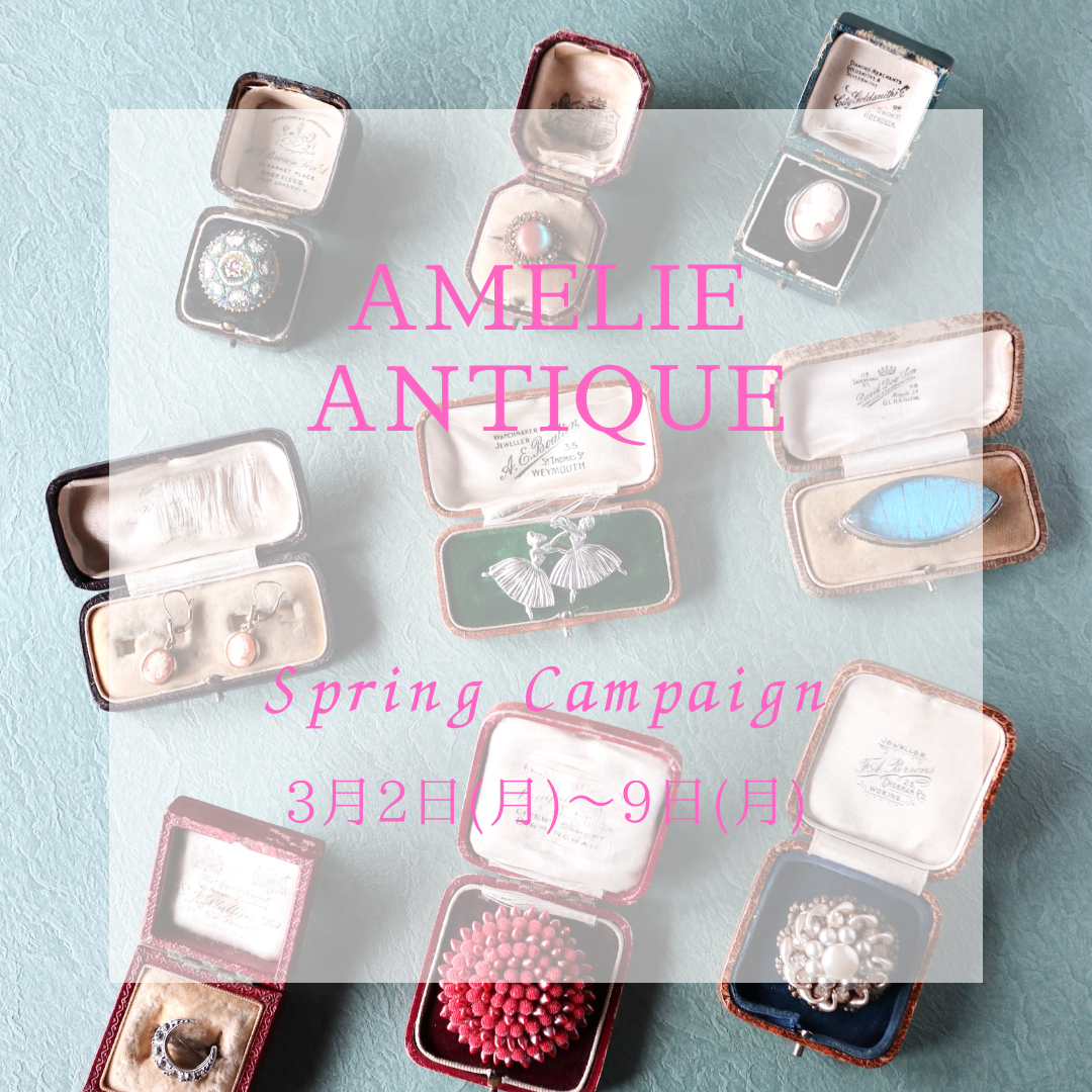 上記の期間、1回のお買い物で3万円以上ご購入頂いたお客様へ、AMELIE ANTIQUEジュエリーボックス(販売価格4,800円)をプレゼント致します。