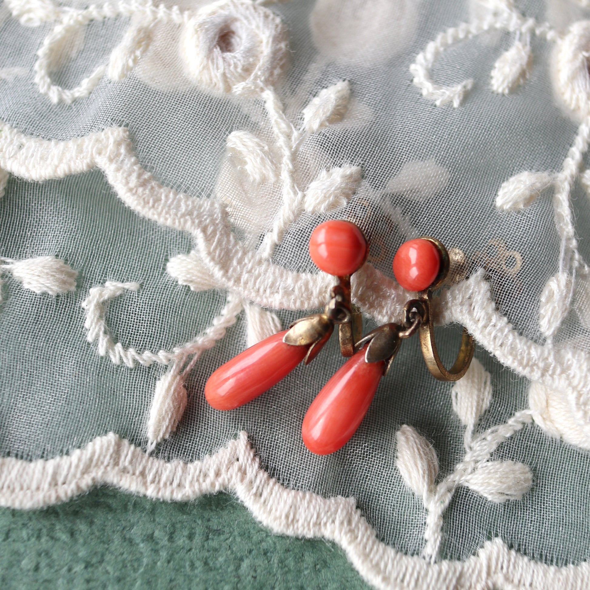 アンティークコーラル ドロップイヤリング(鑑別書付)