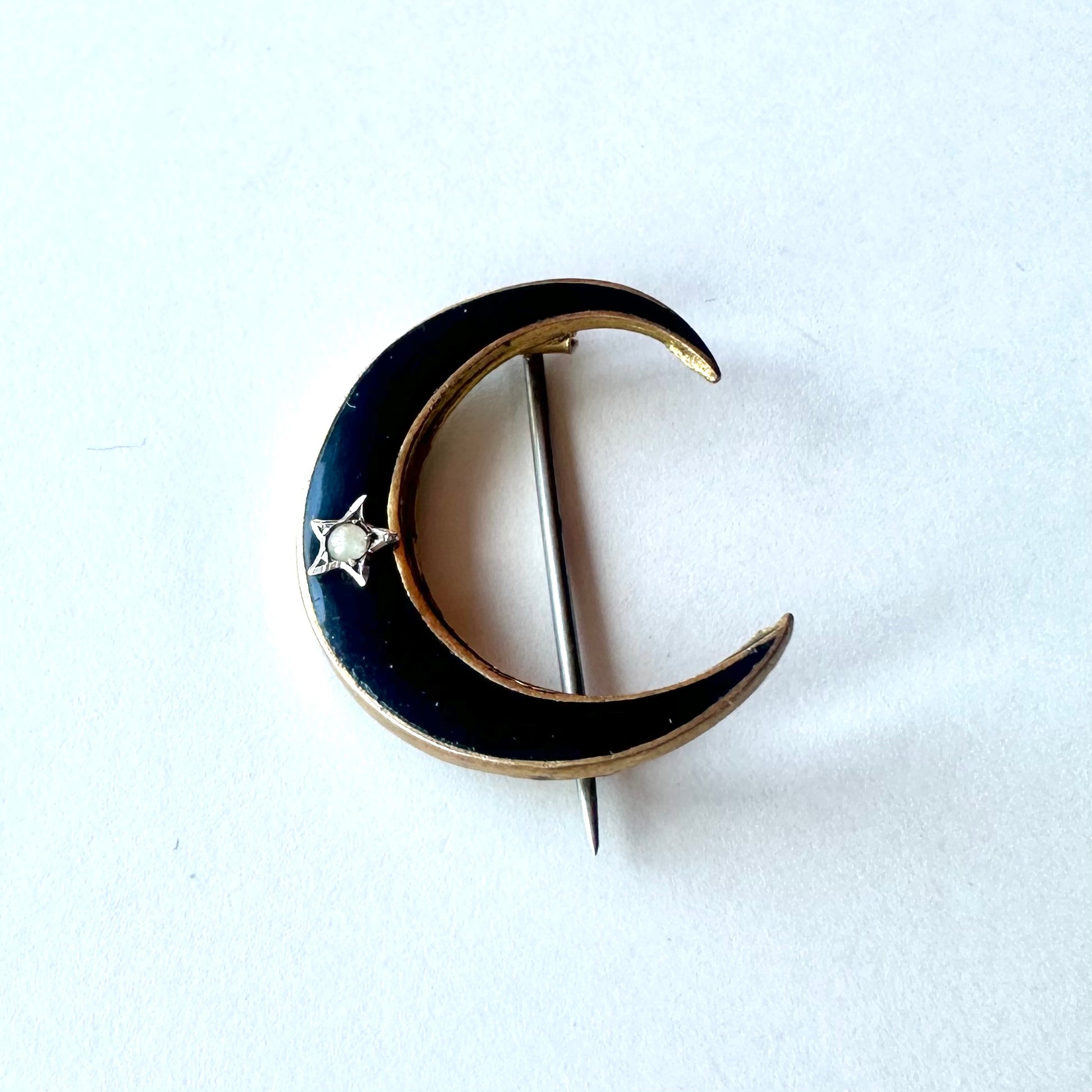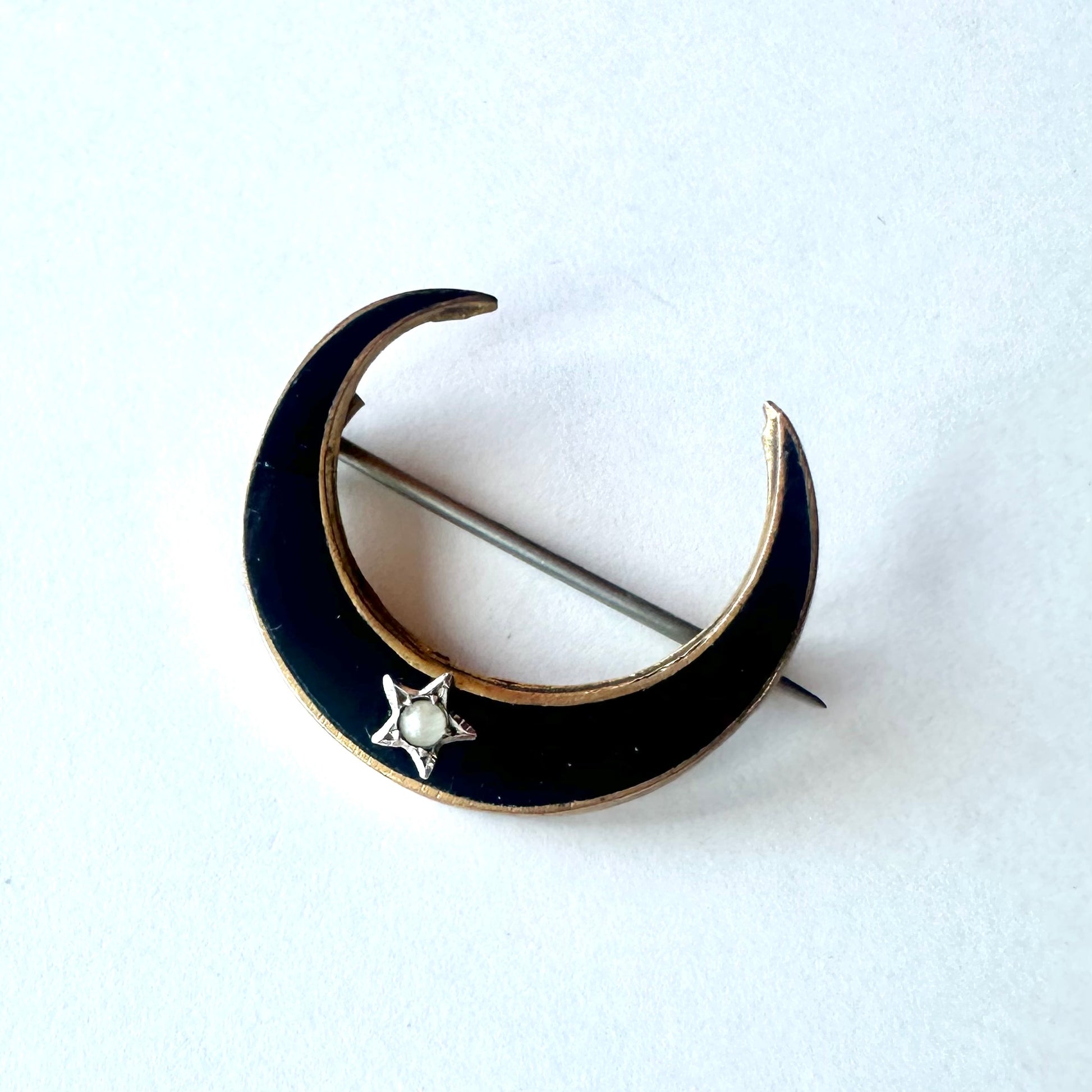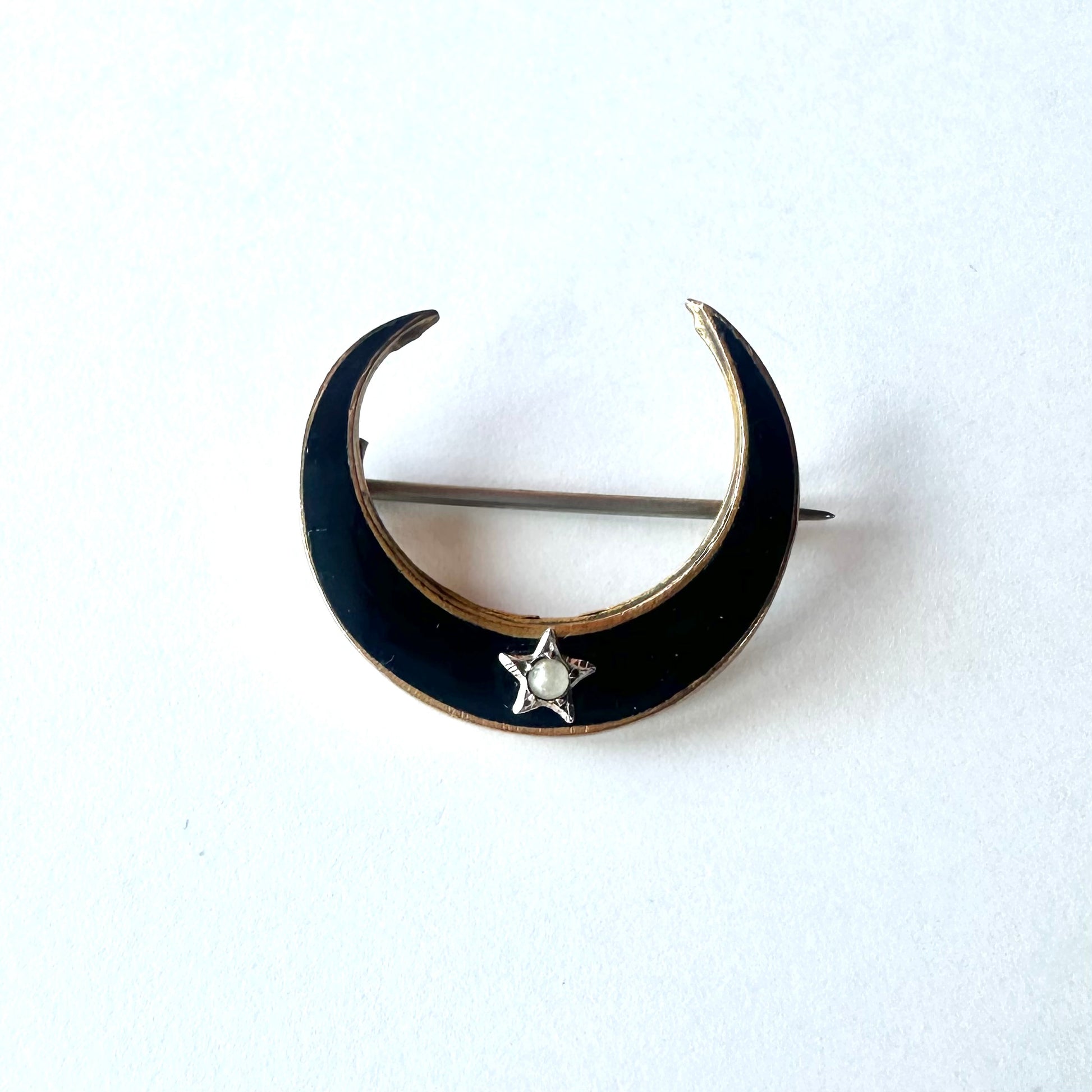 ブラックエナメル クレセント ブローチ