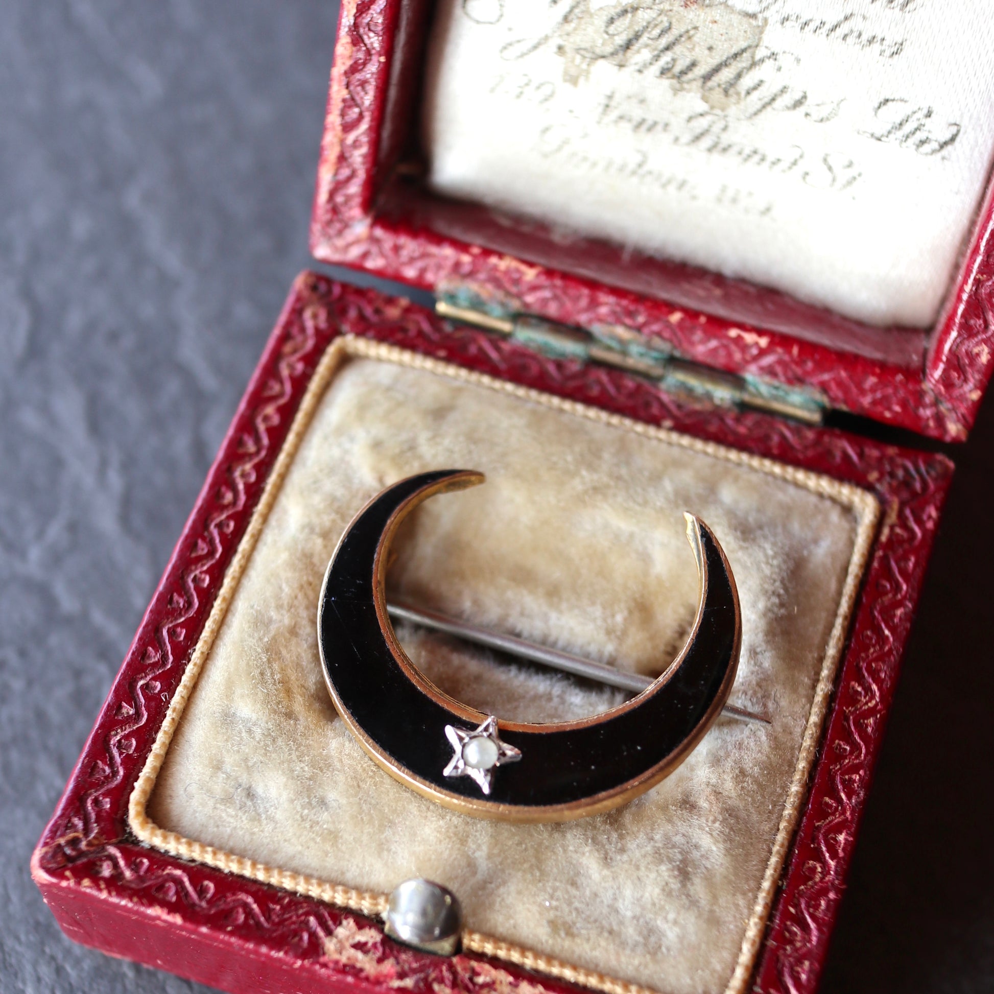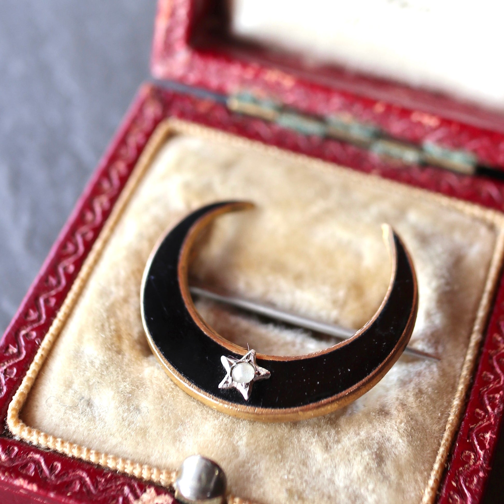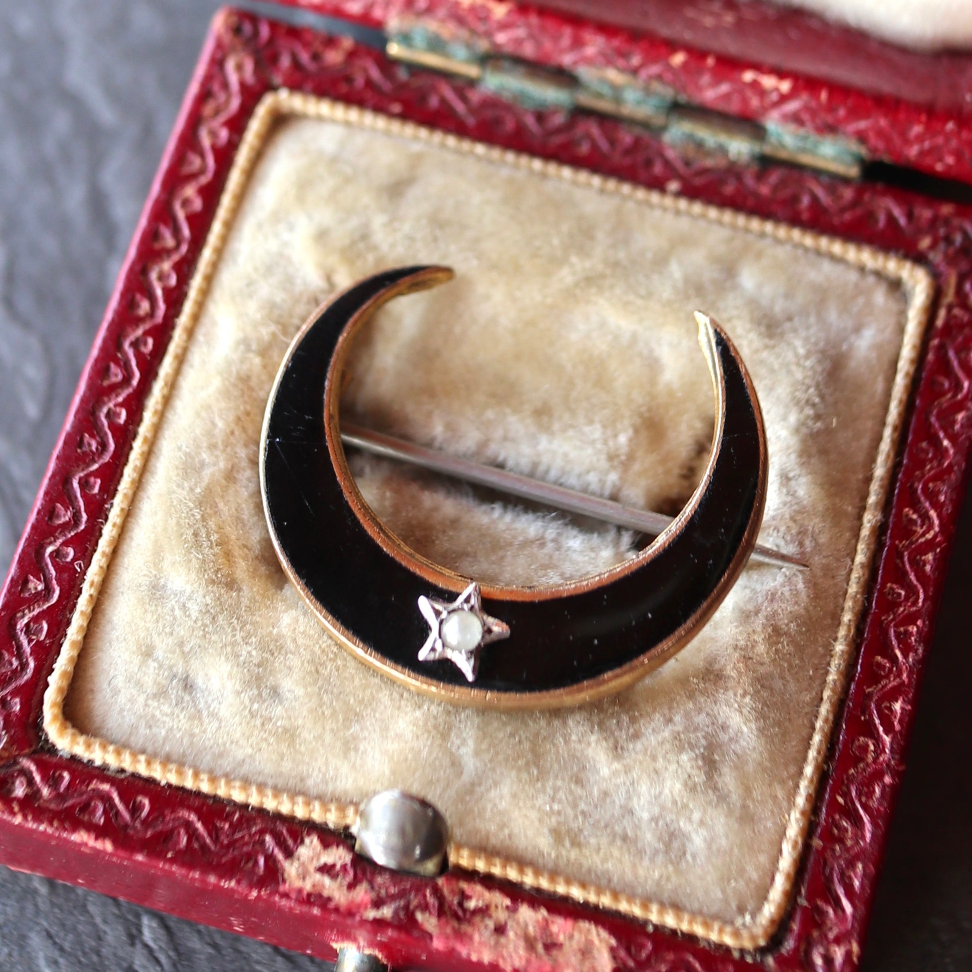 ブラックエナメル クレセント ブローチ