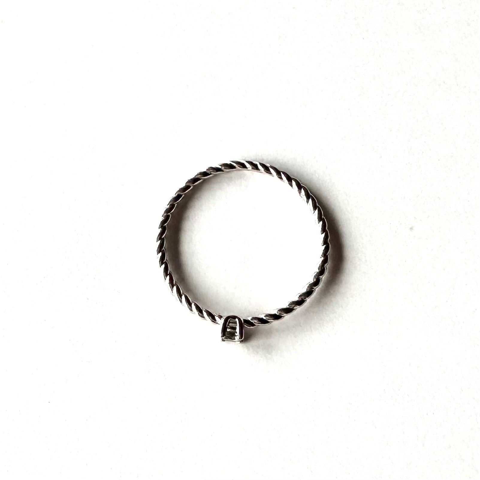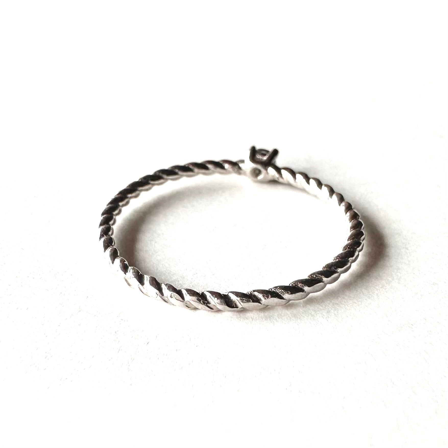 シルバー ツイストロープ&ペリドットカラーグラス ヴィンテージリング 14.5号