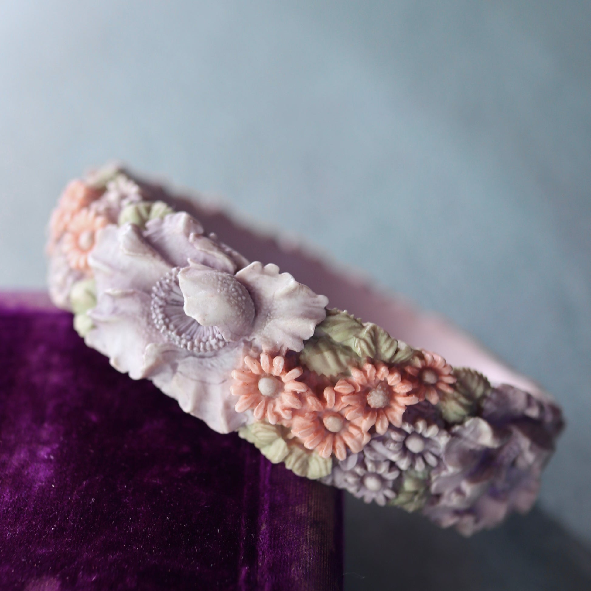 アネモネ、マーガレット、スミレ、リーフで装飾され、