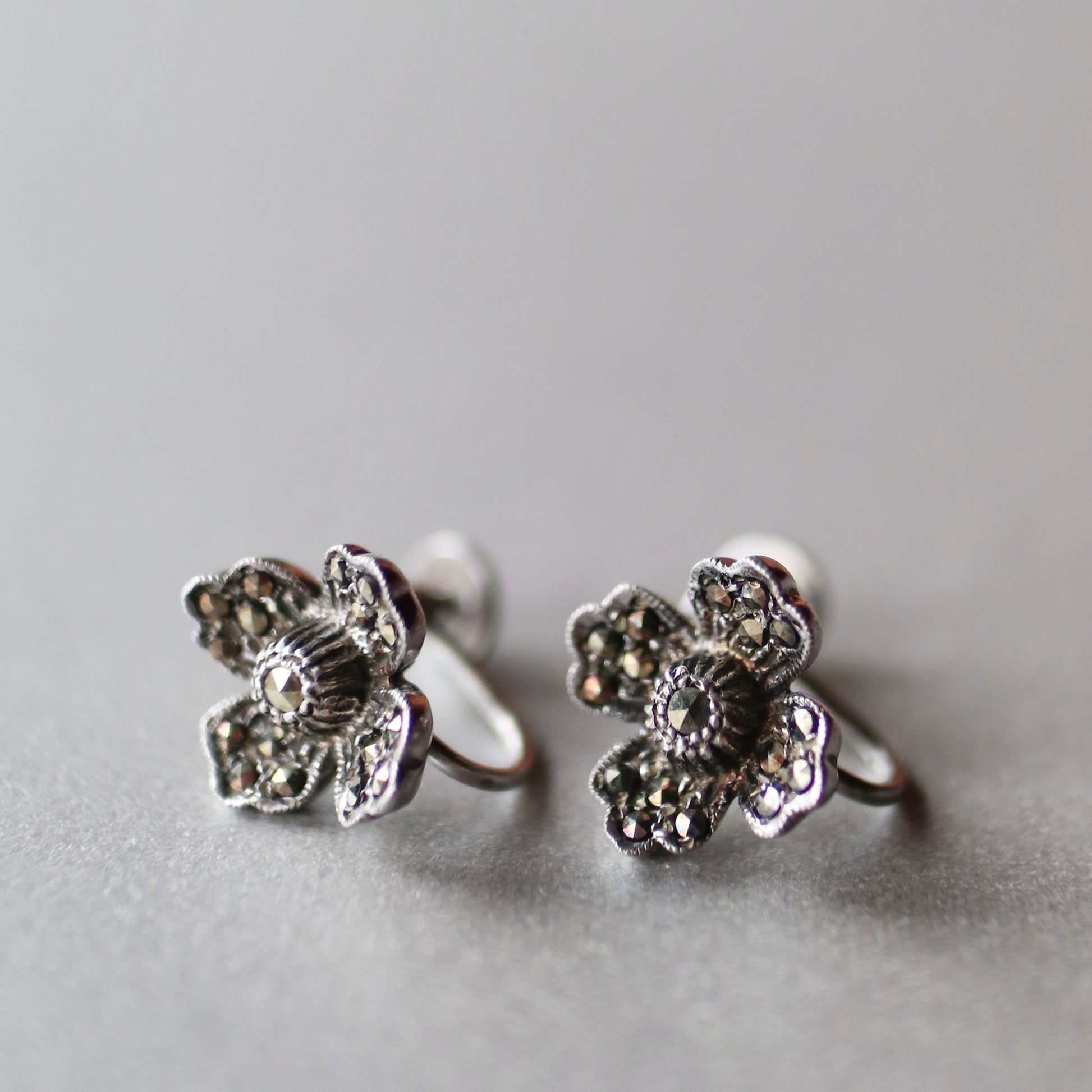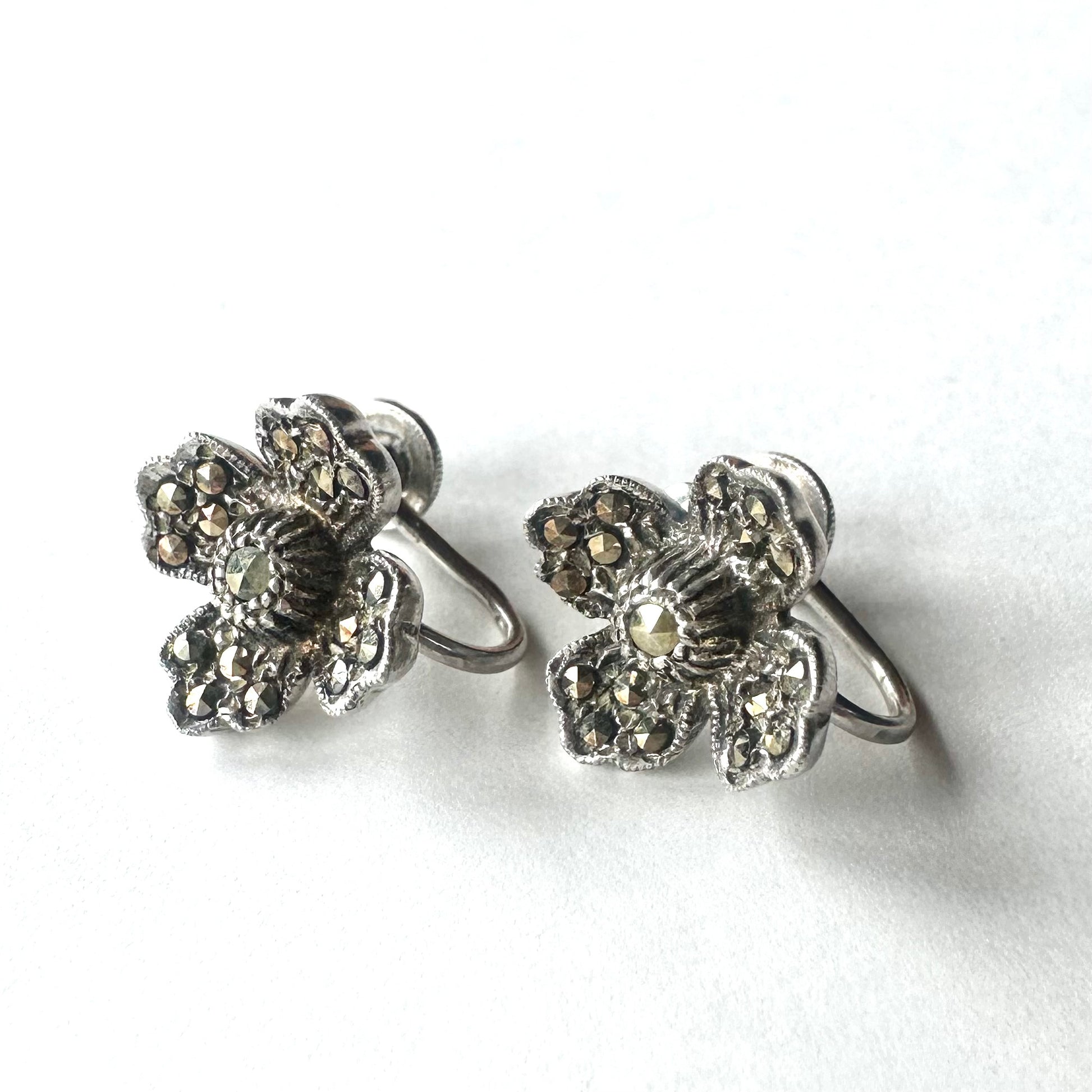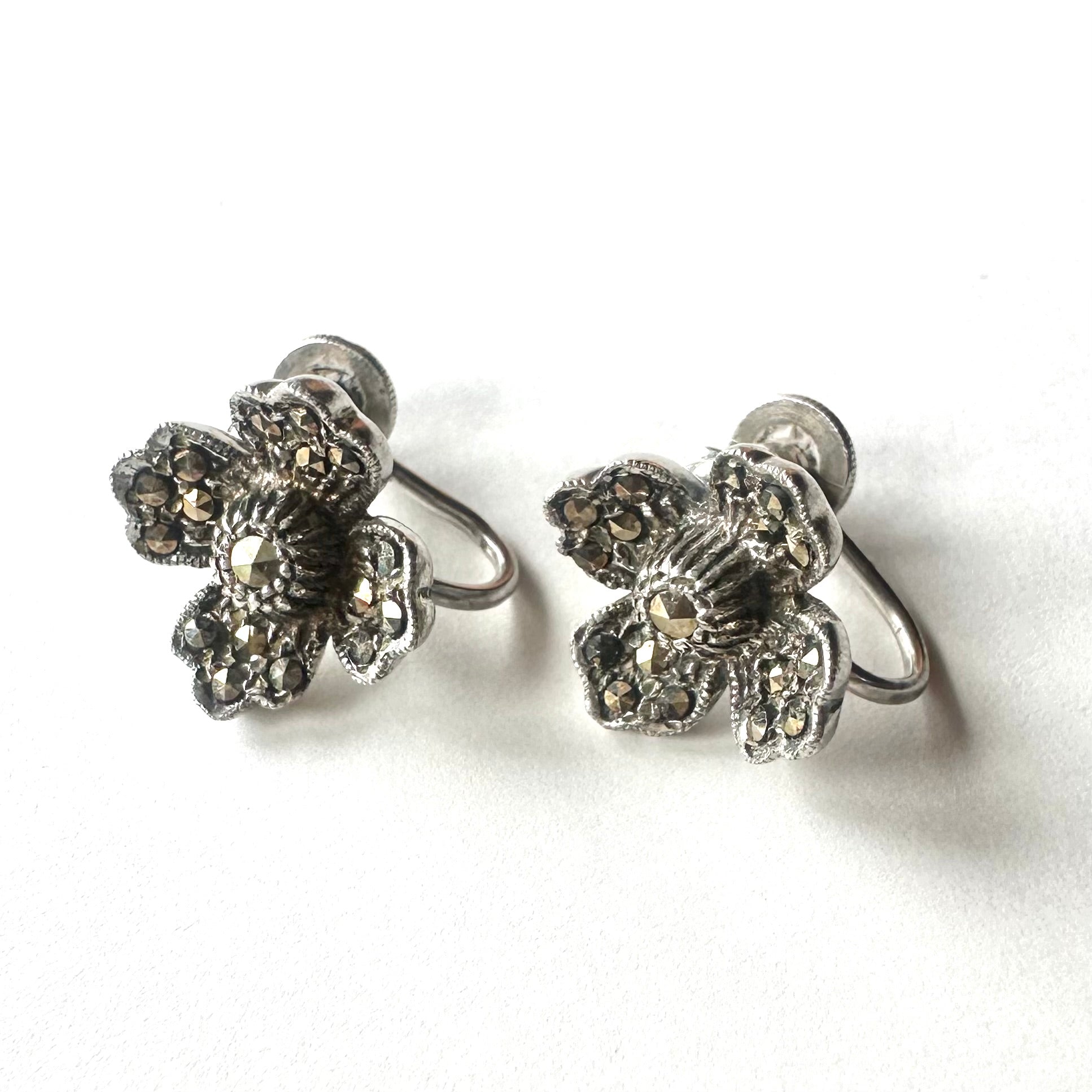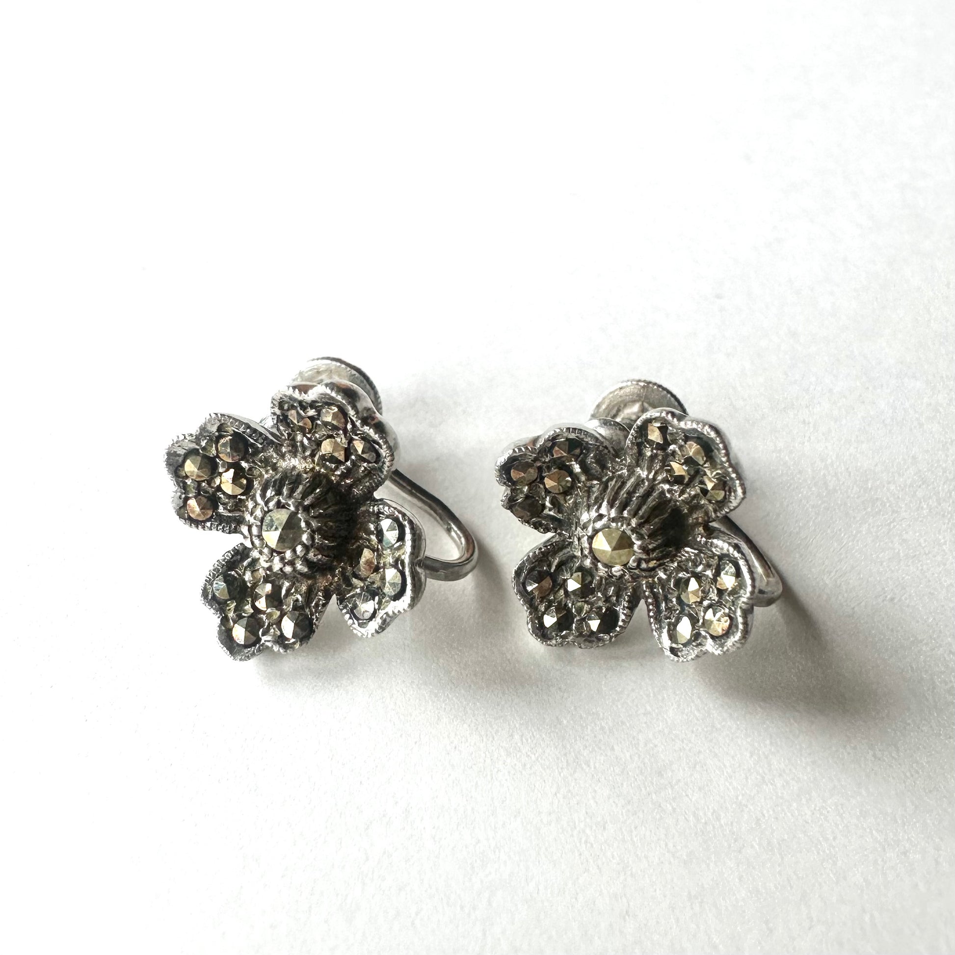 シルバー&マーカサイト フラワーモチーフイヤリング
