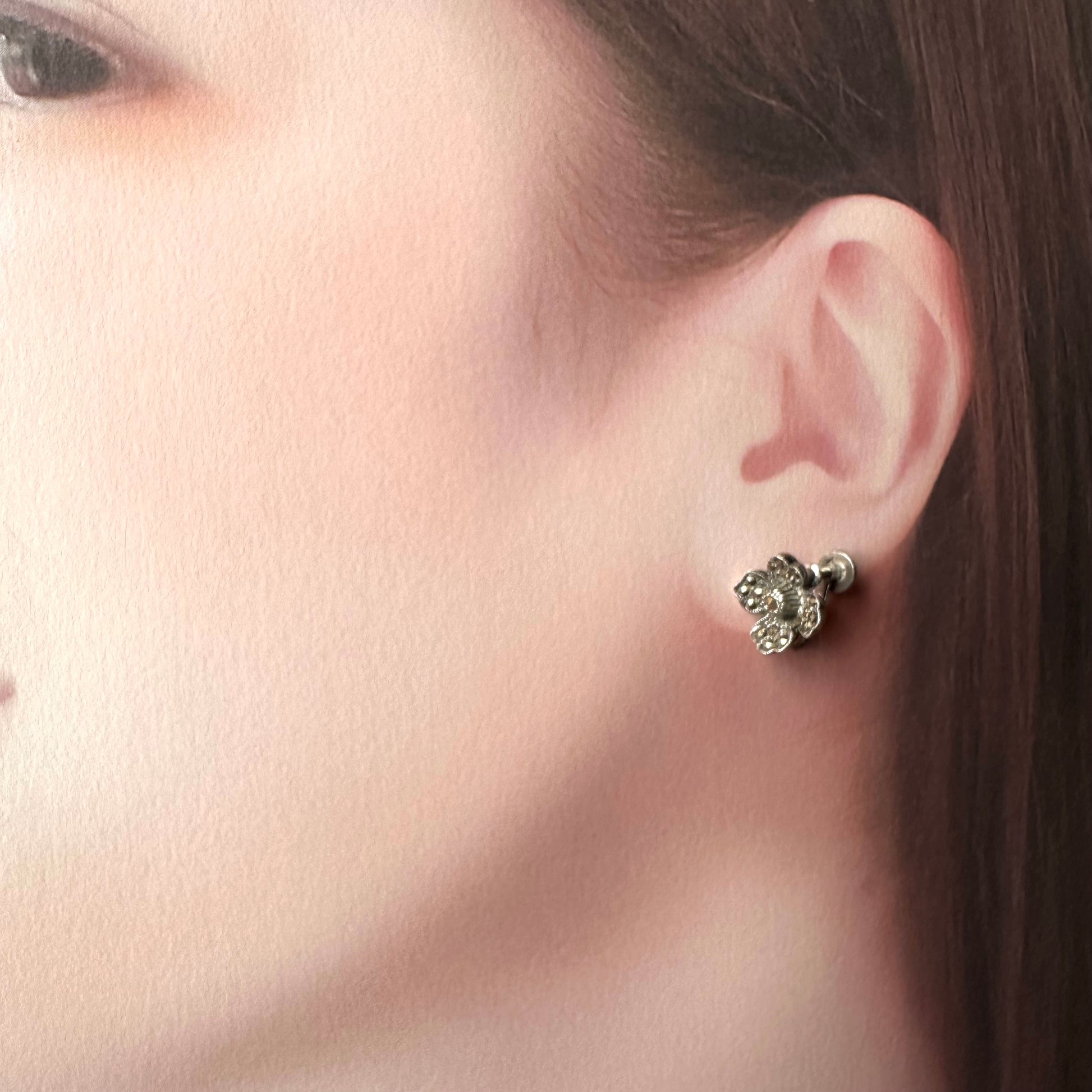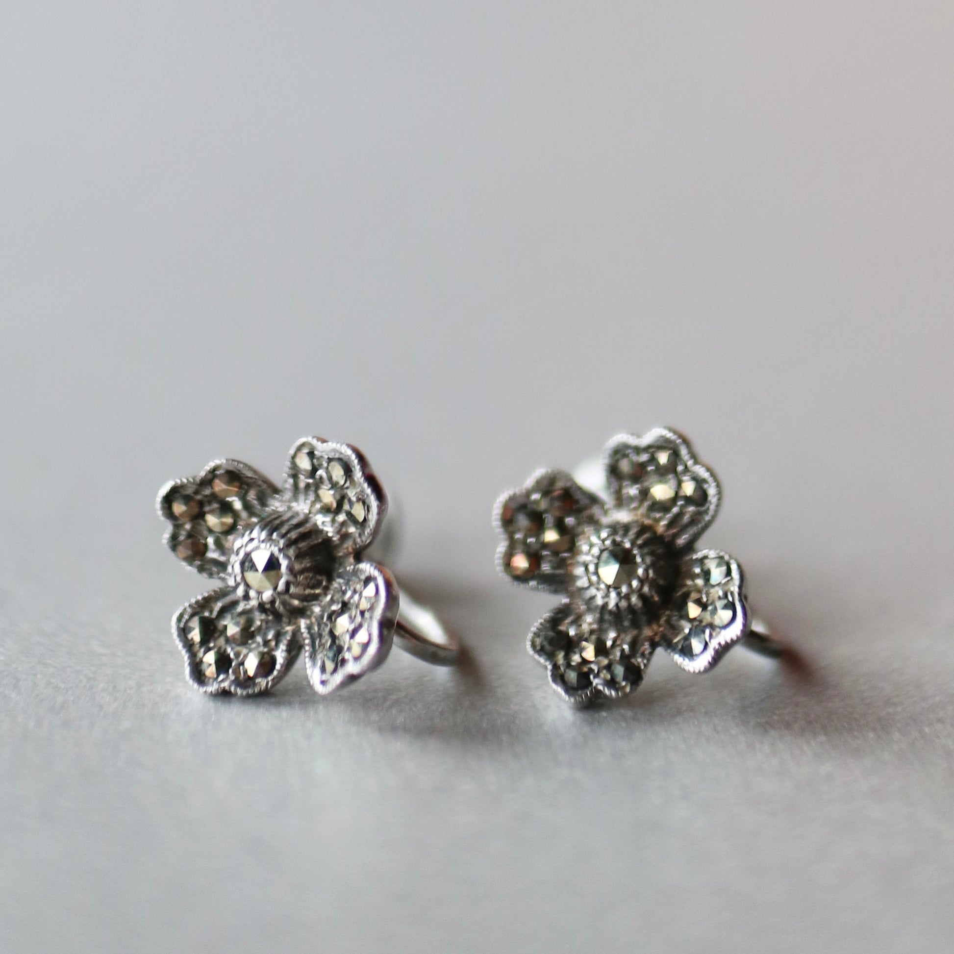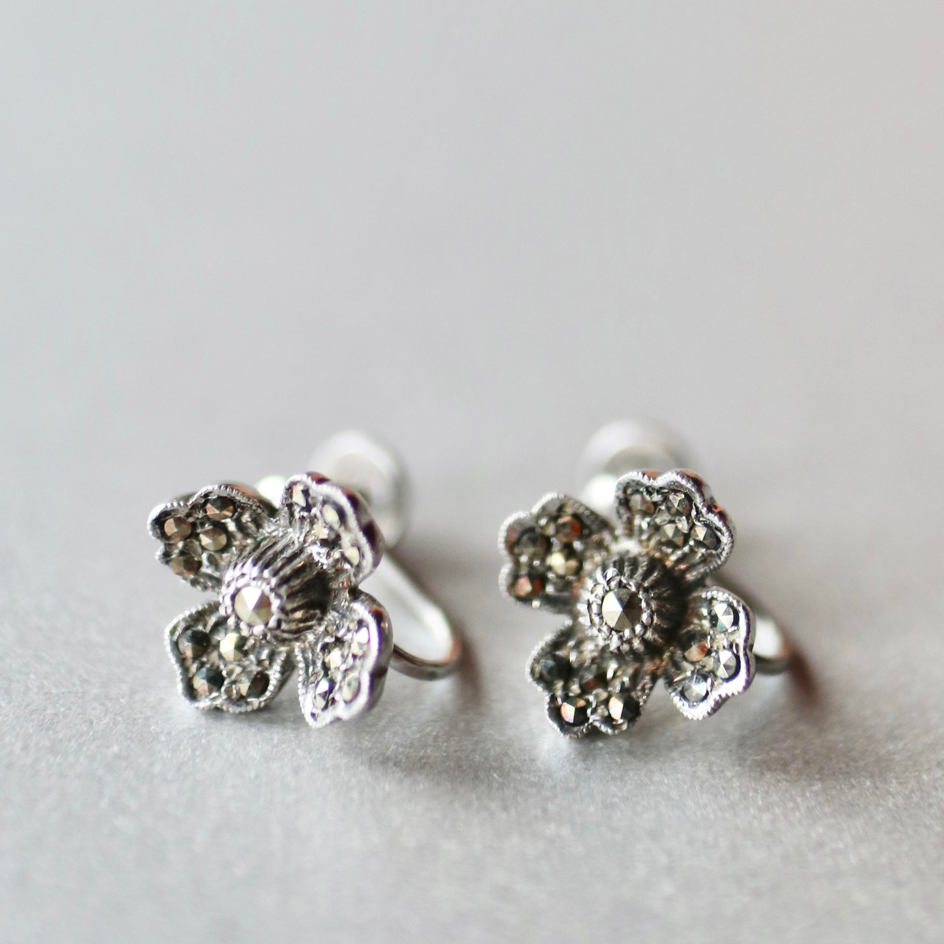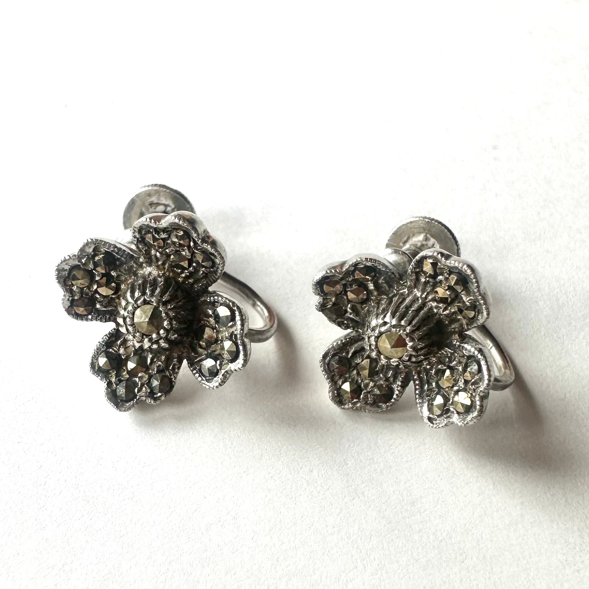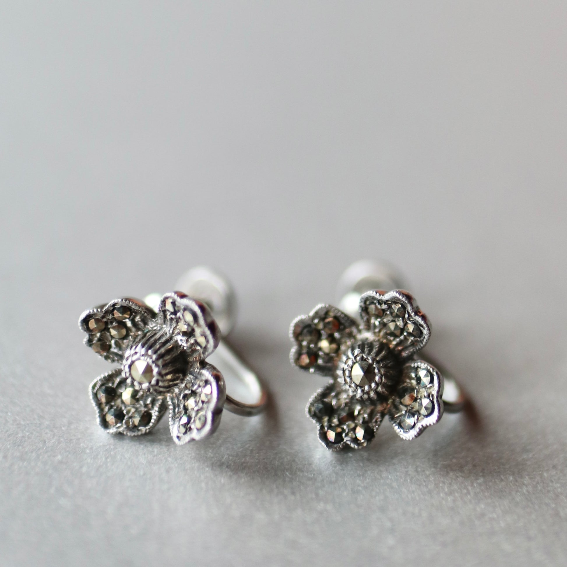 シルバー&マーカサイト フラワーモチーフイヤリング