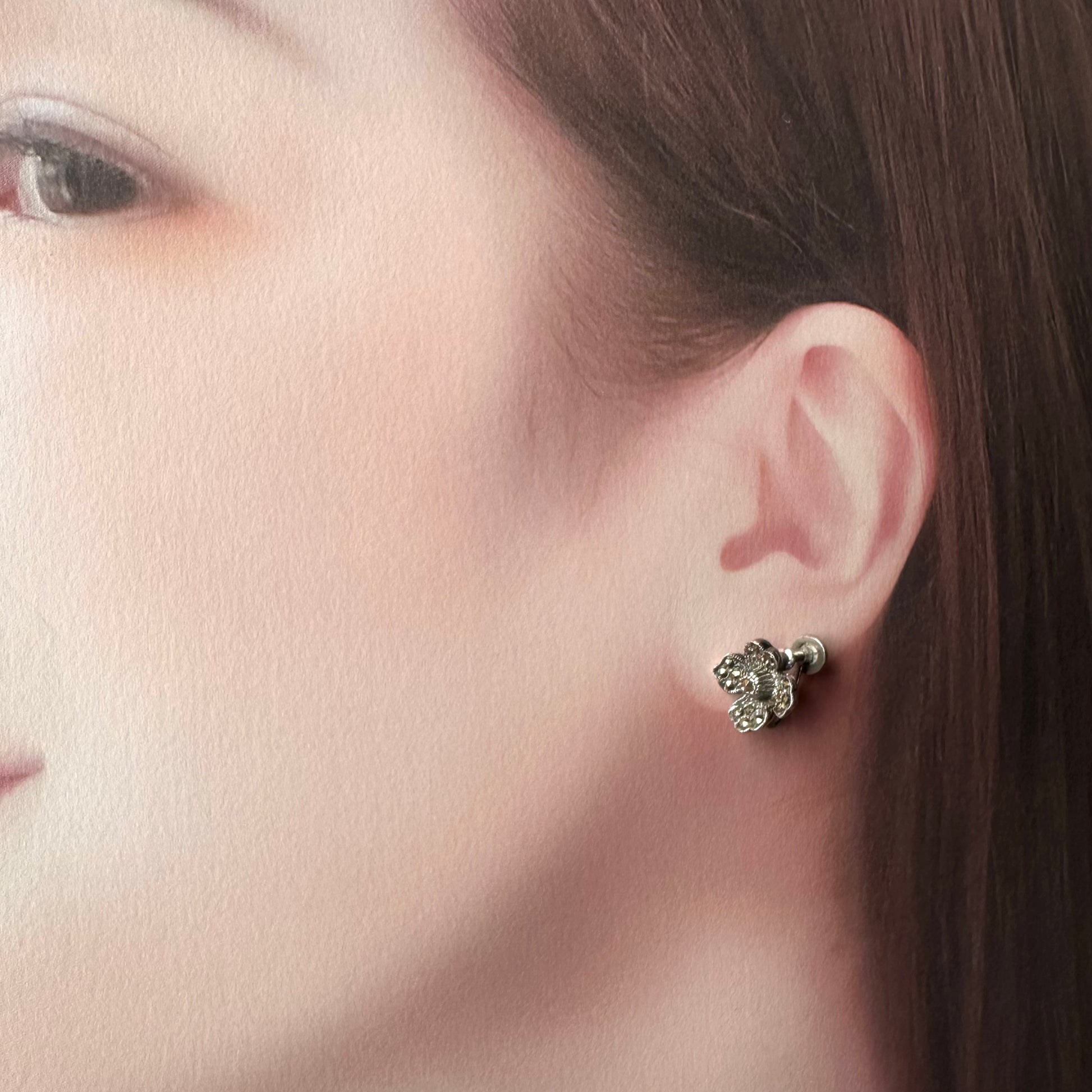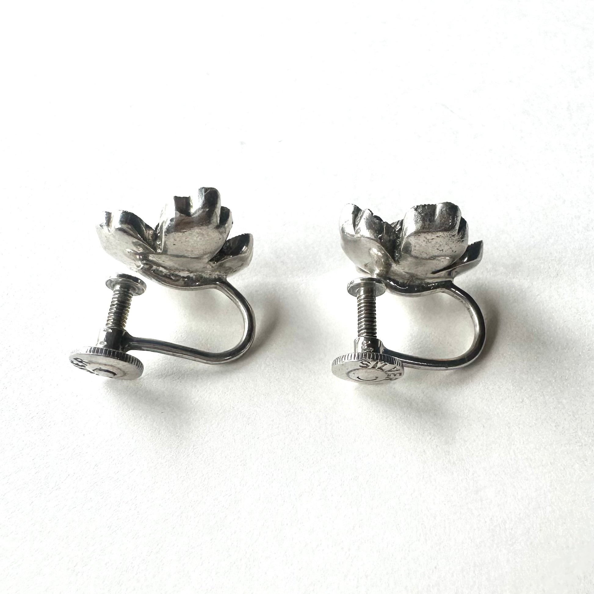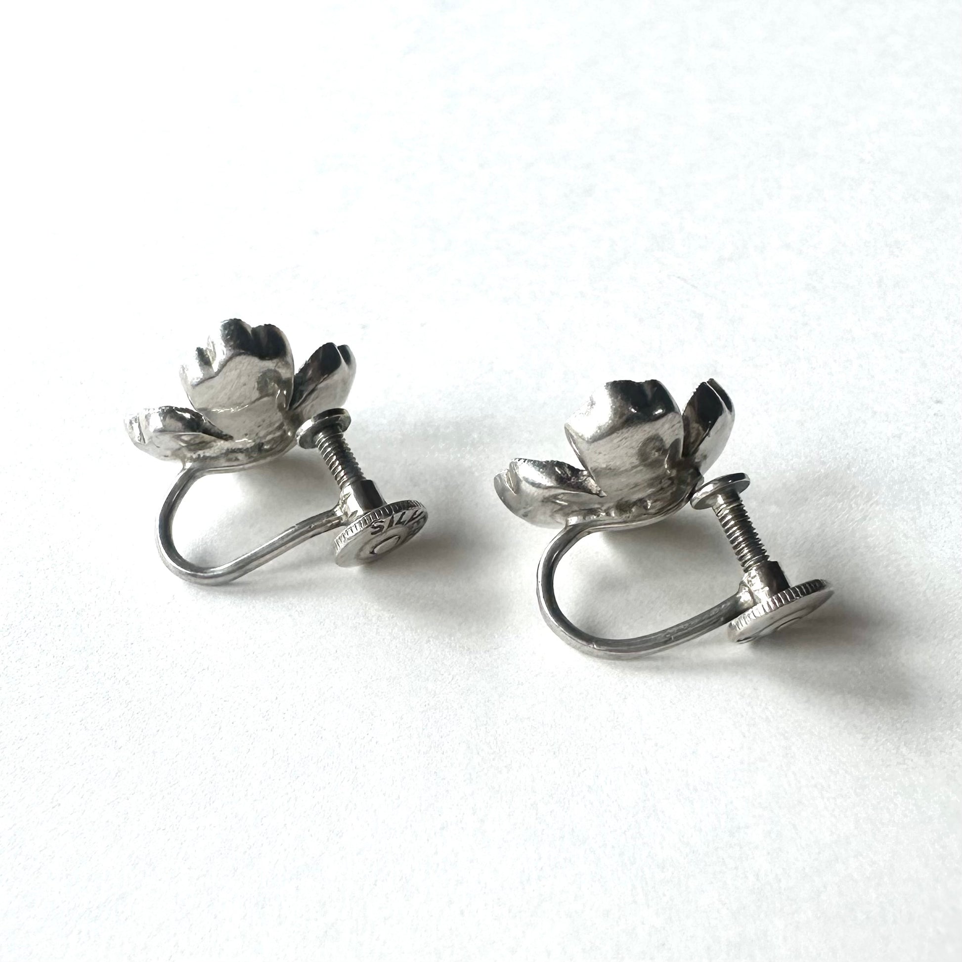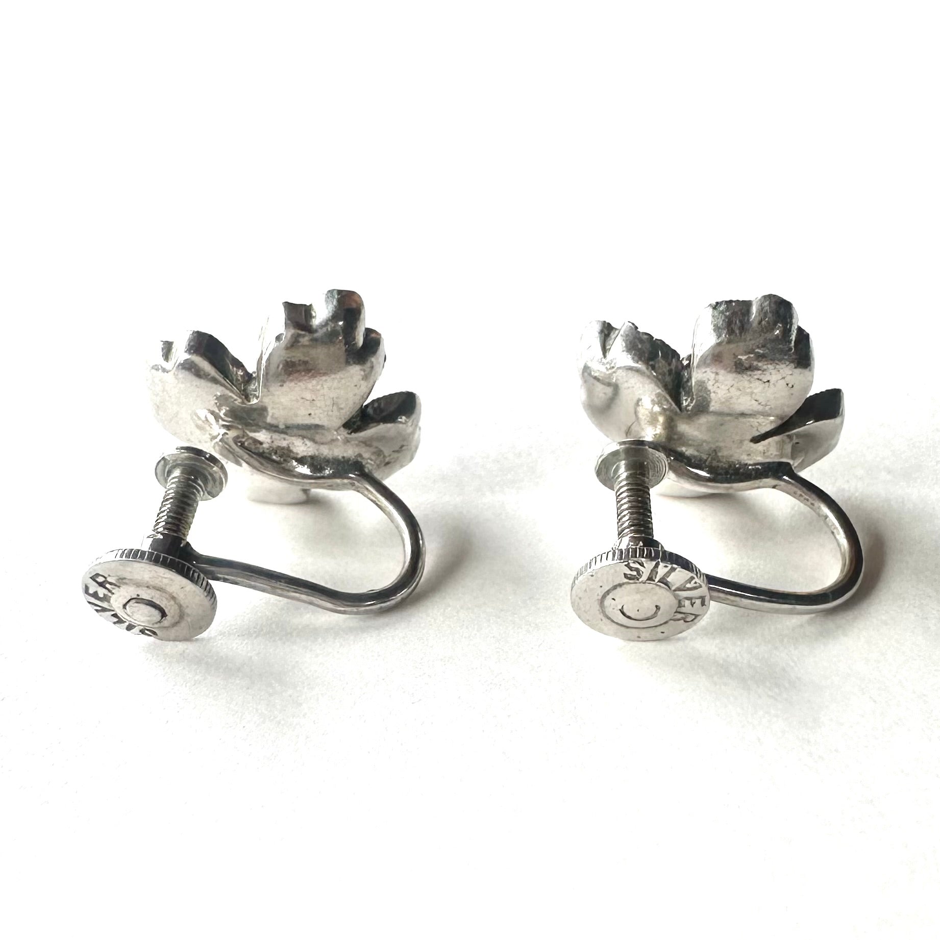 シルバー&マーカサイト フラワーモチーフイヤリング