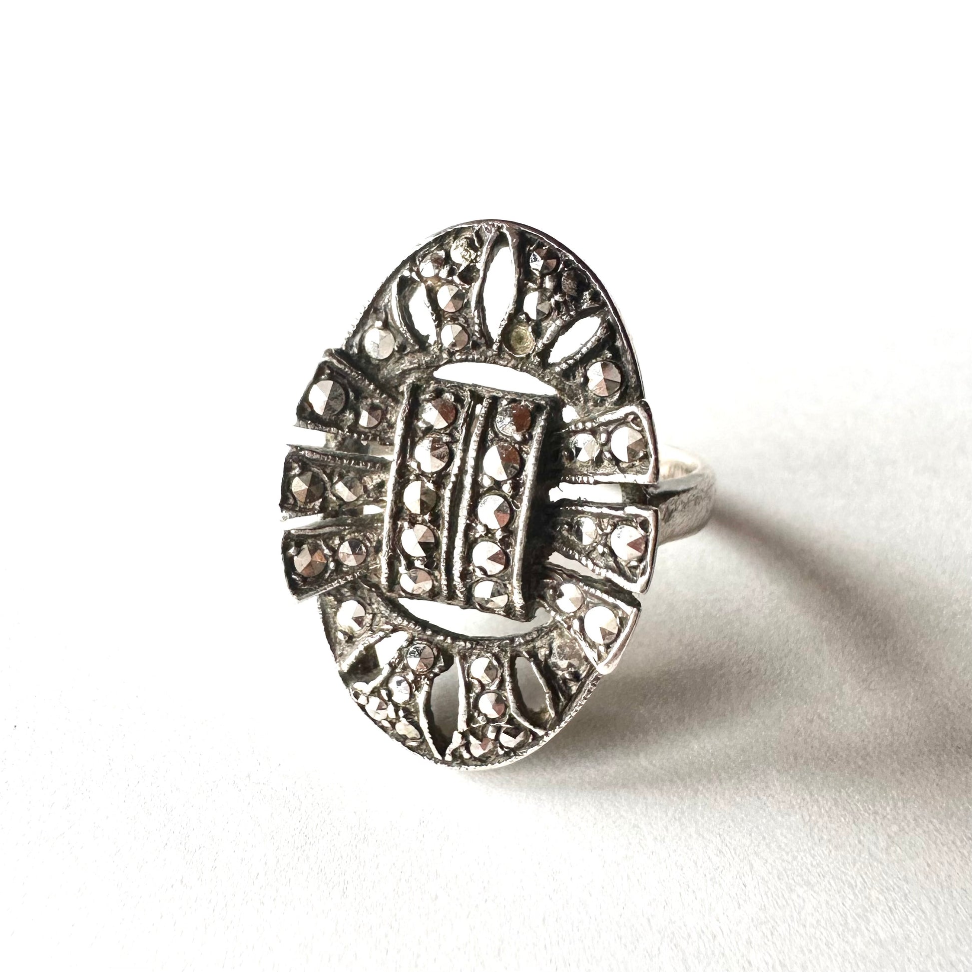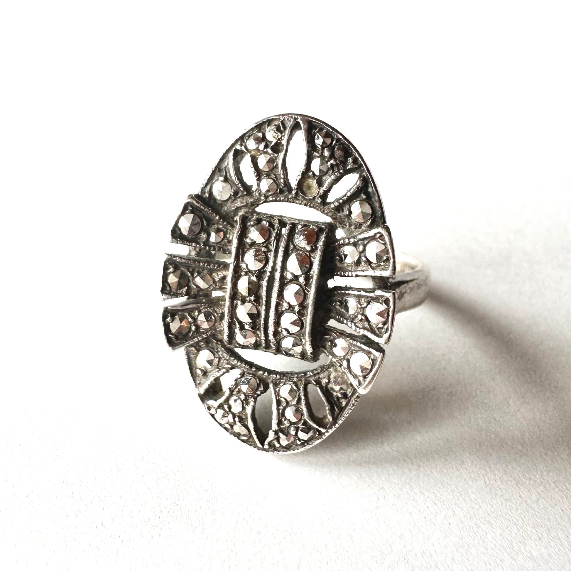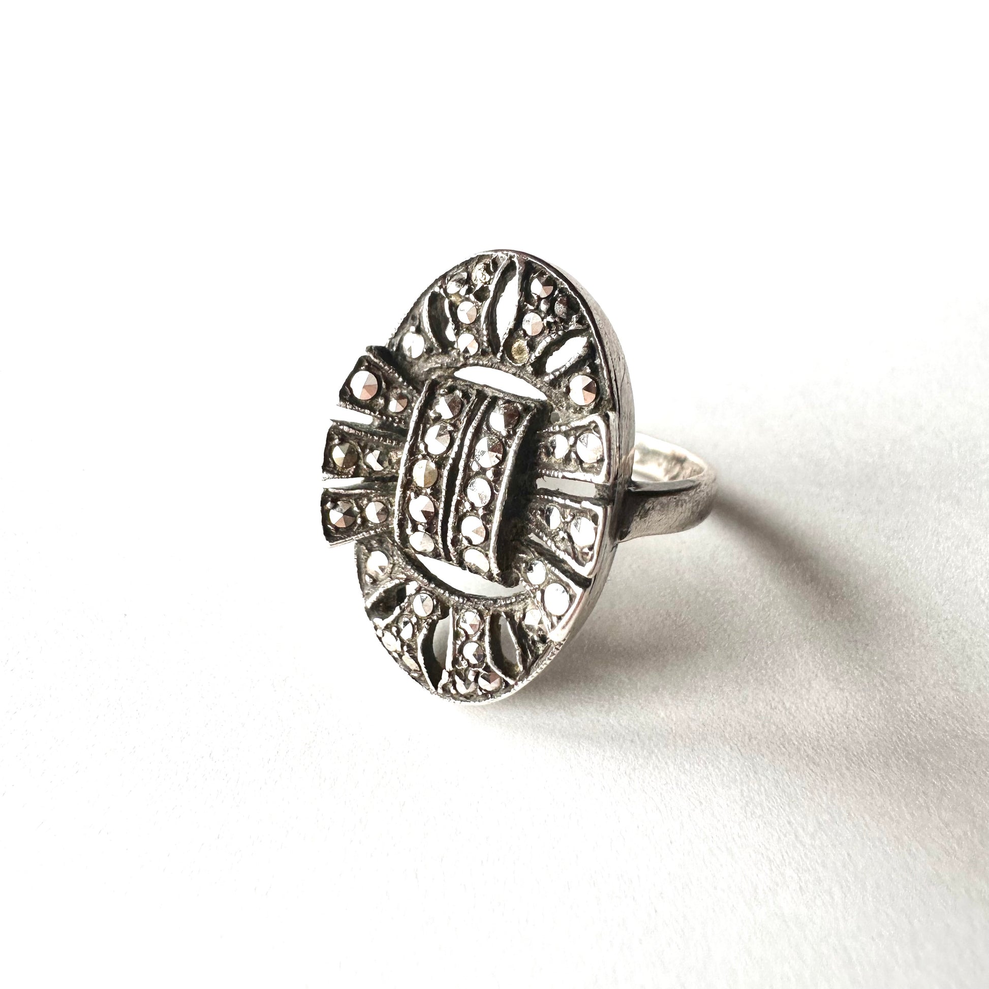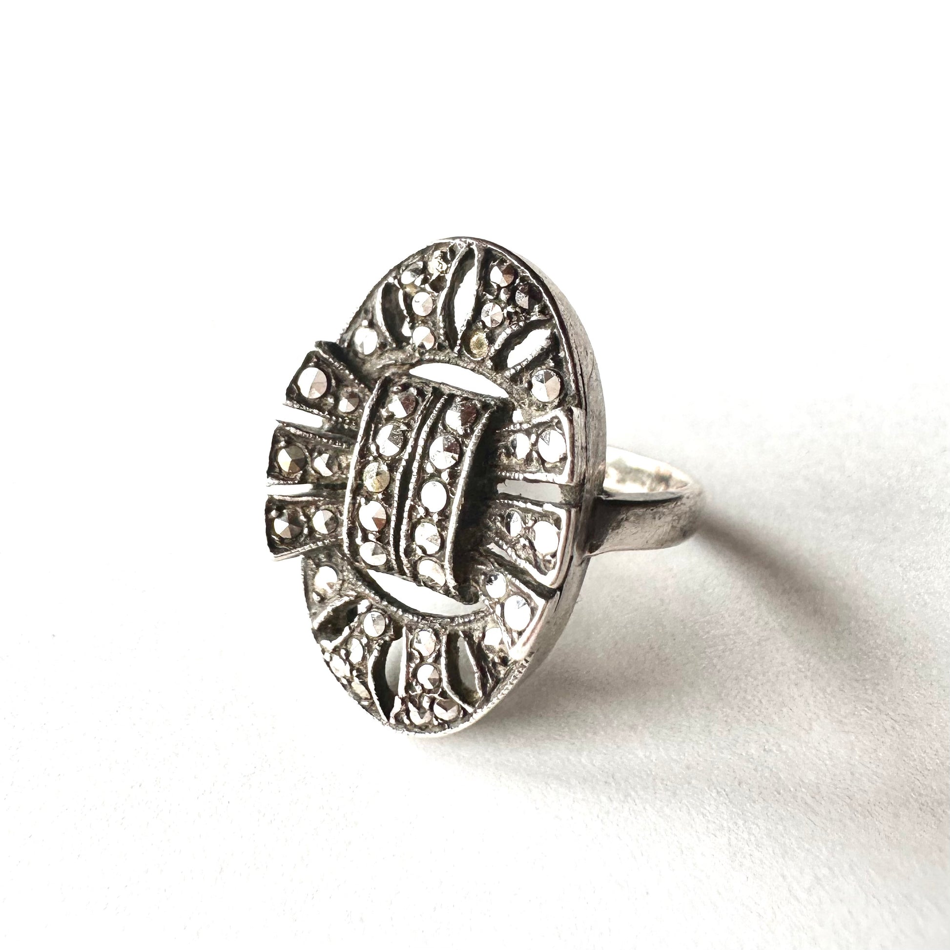 シルバー&マーカサイト ヴィンテージリング 10号