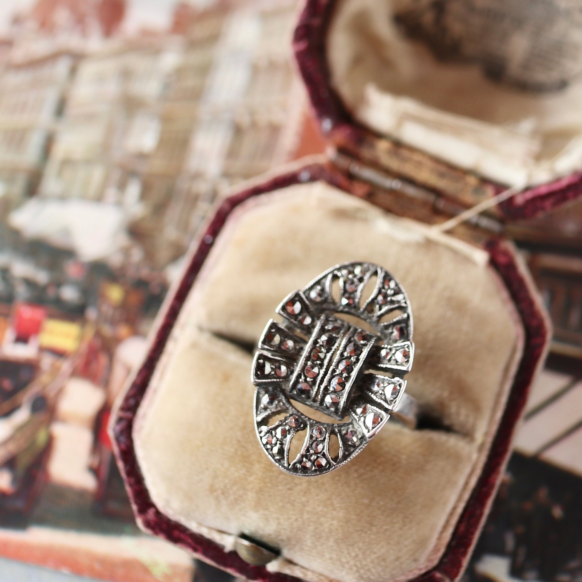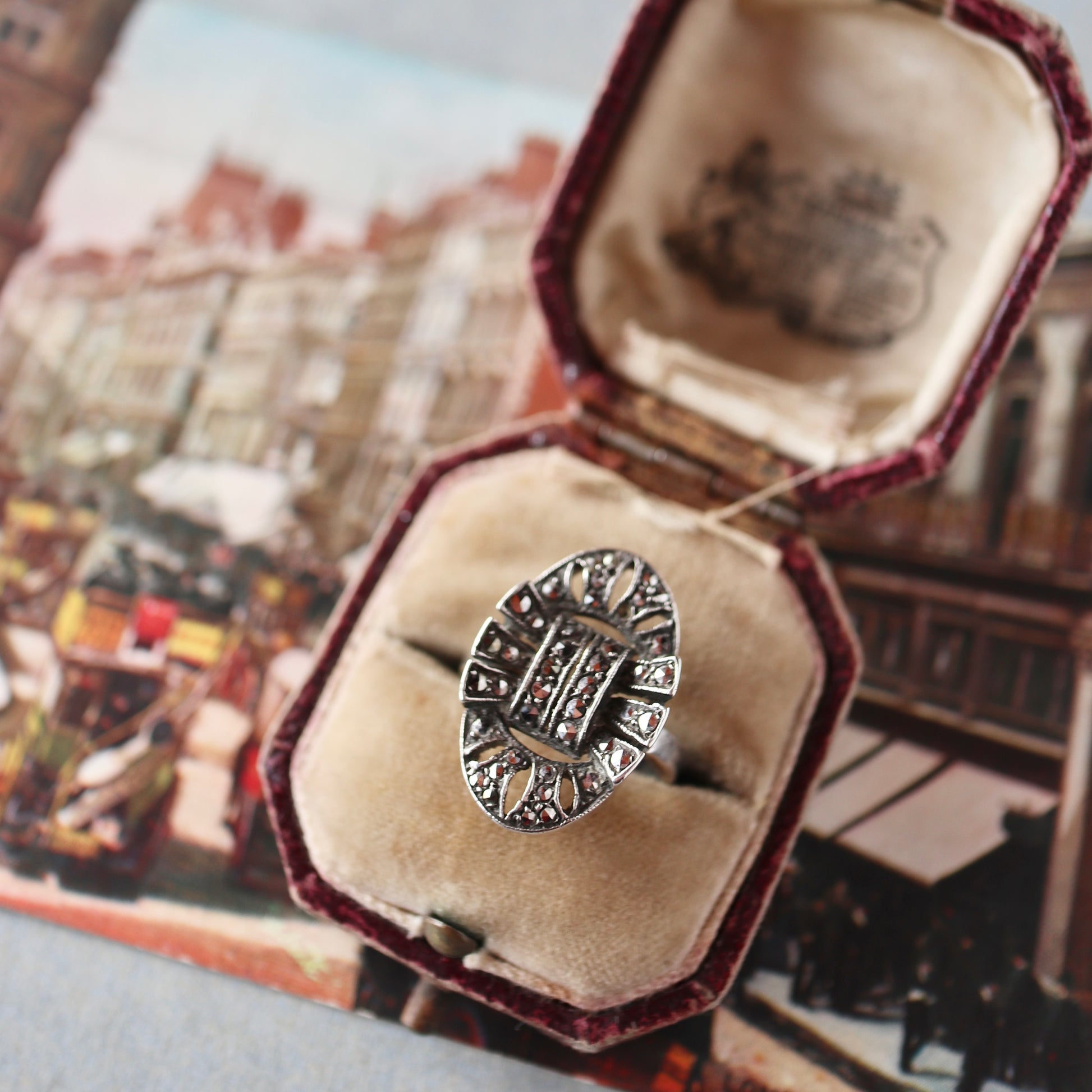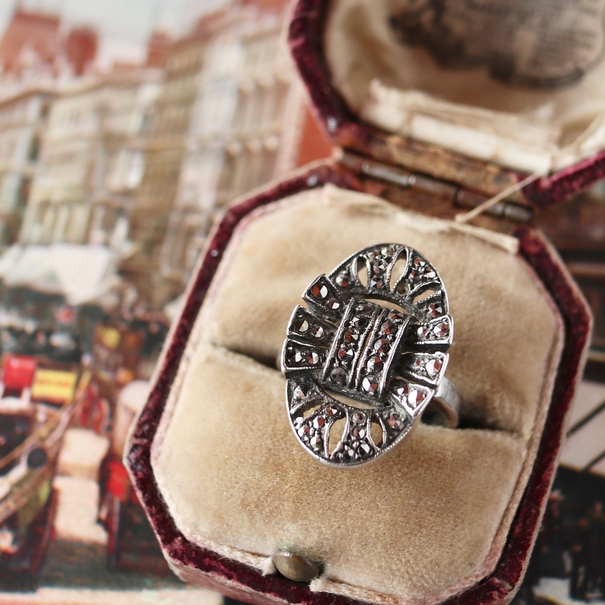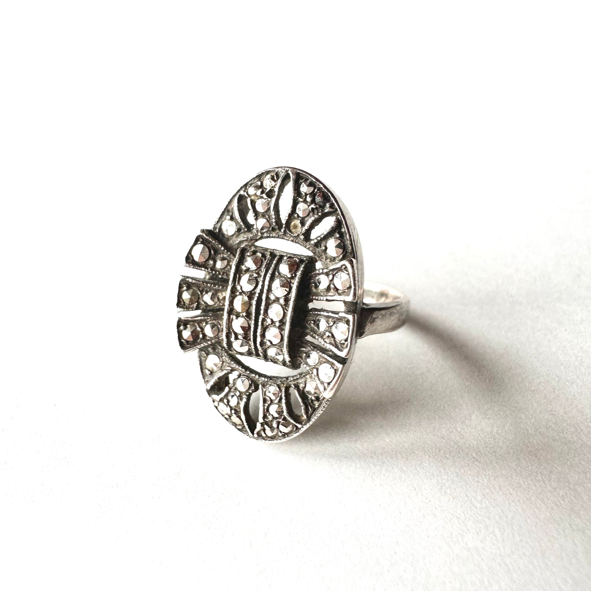 シルバー&マーカサイト ヴィンテージリング 10号