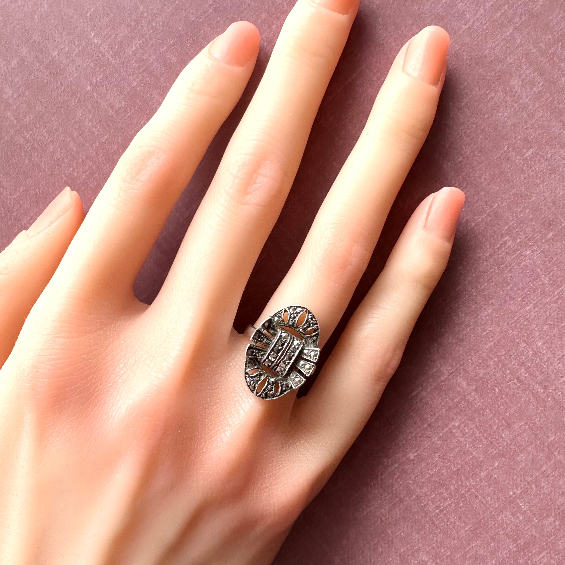 アールデコのデザインを踏襲したリング。