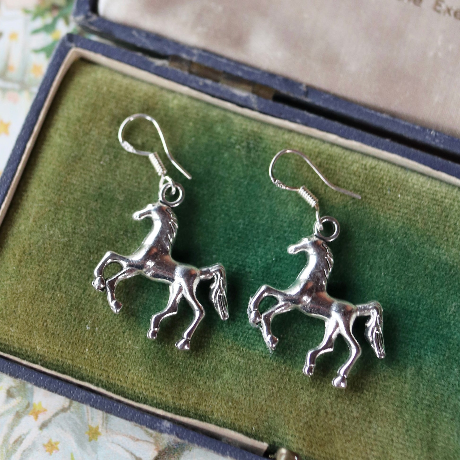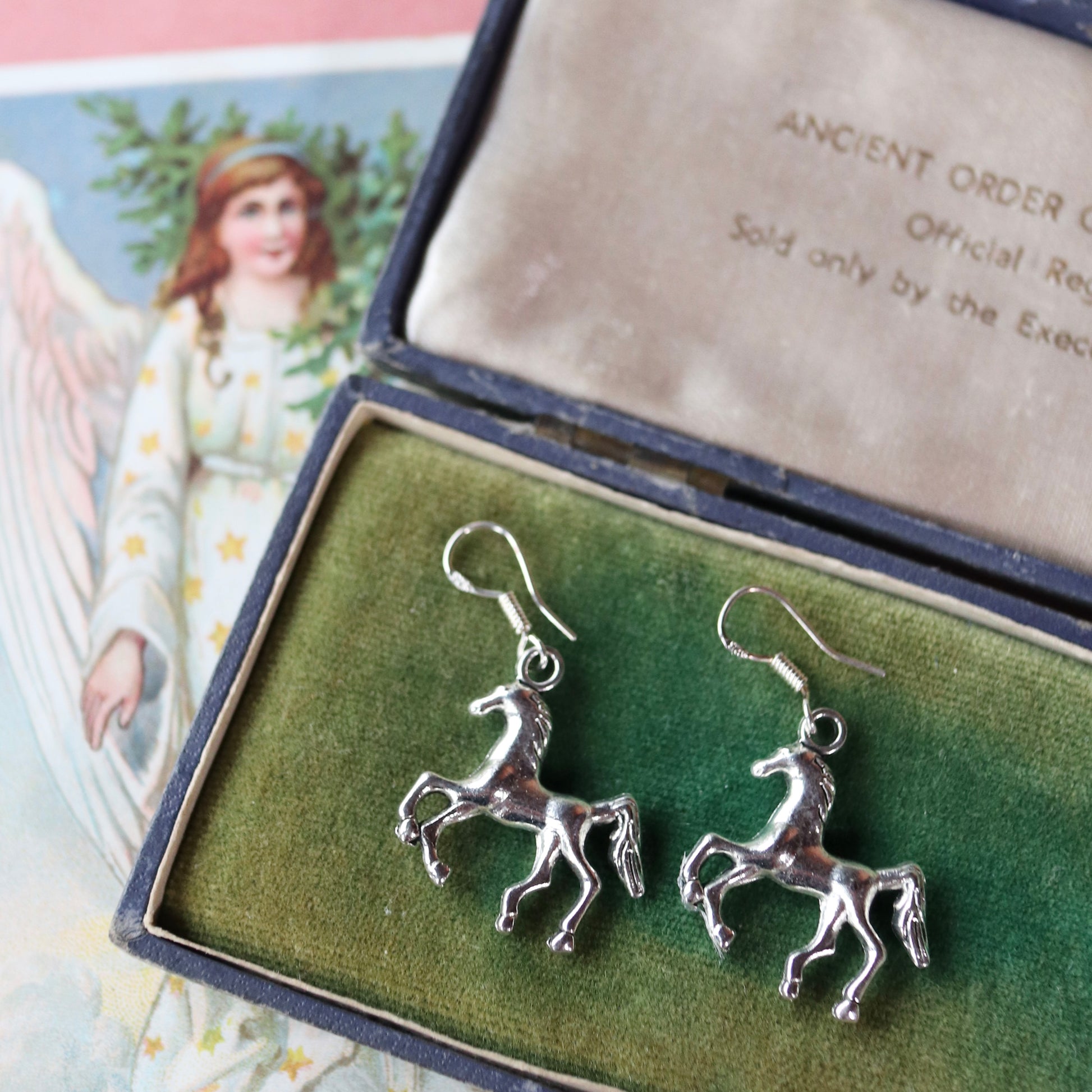 たてがみや尾の再現も美しいヴィンテージシルバーピアスです。