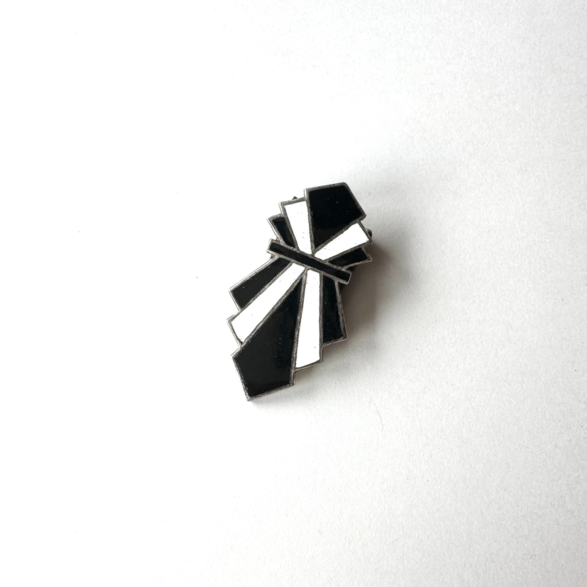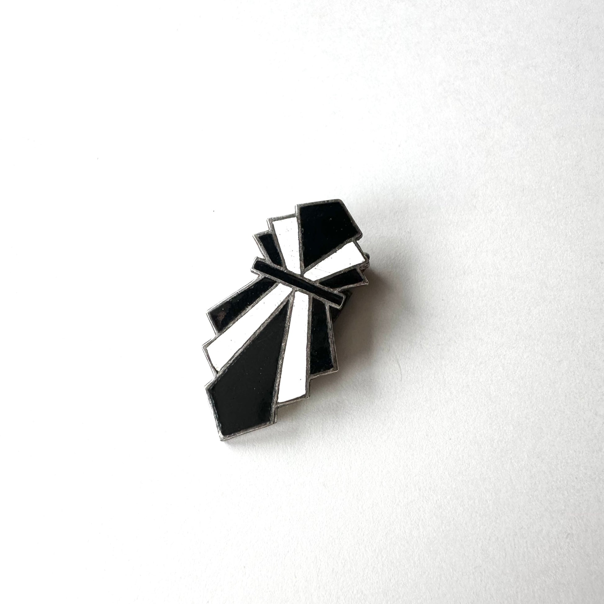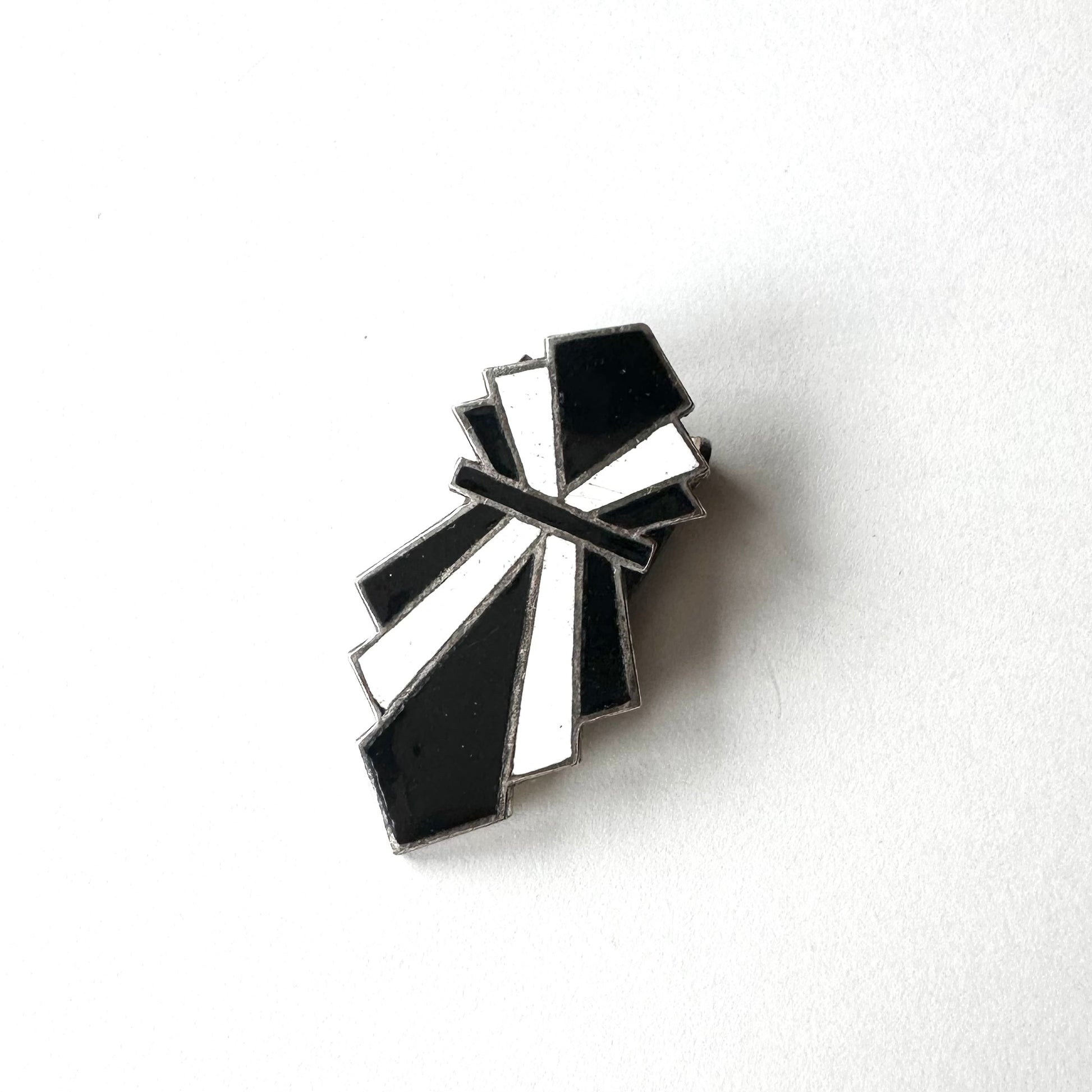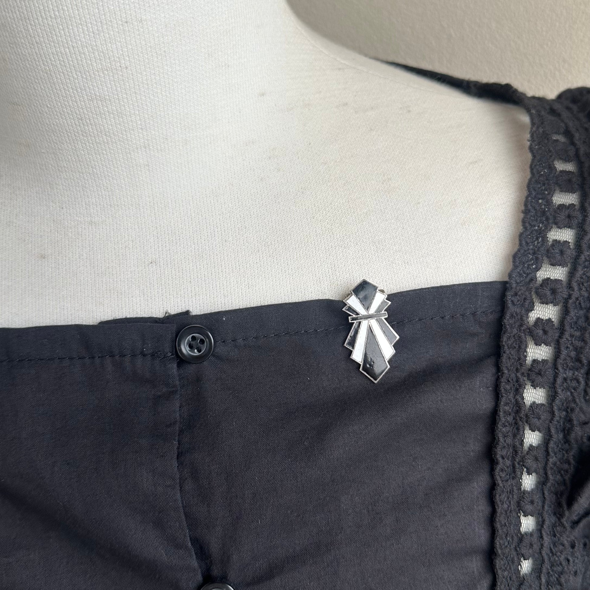 アールデコ ブラック&ホワイト エナメル ドレスクリップ