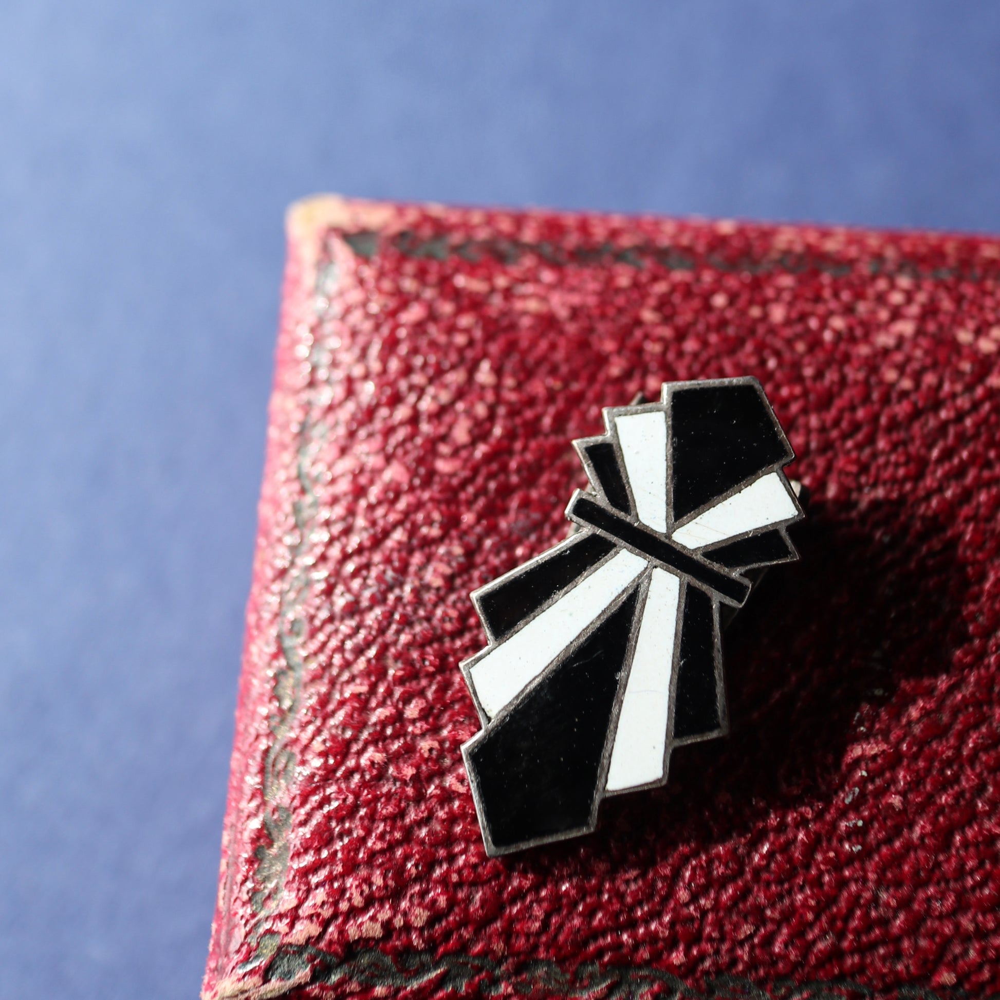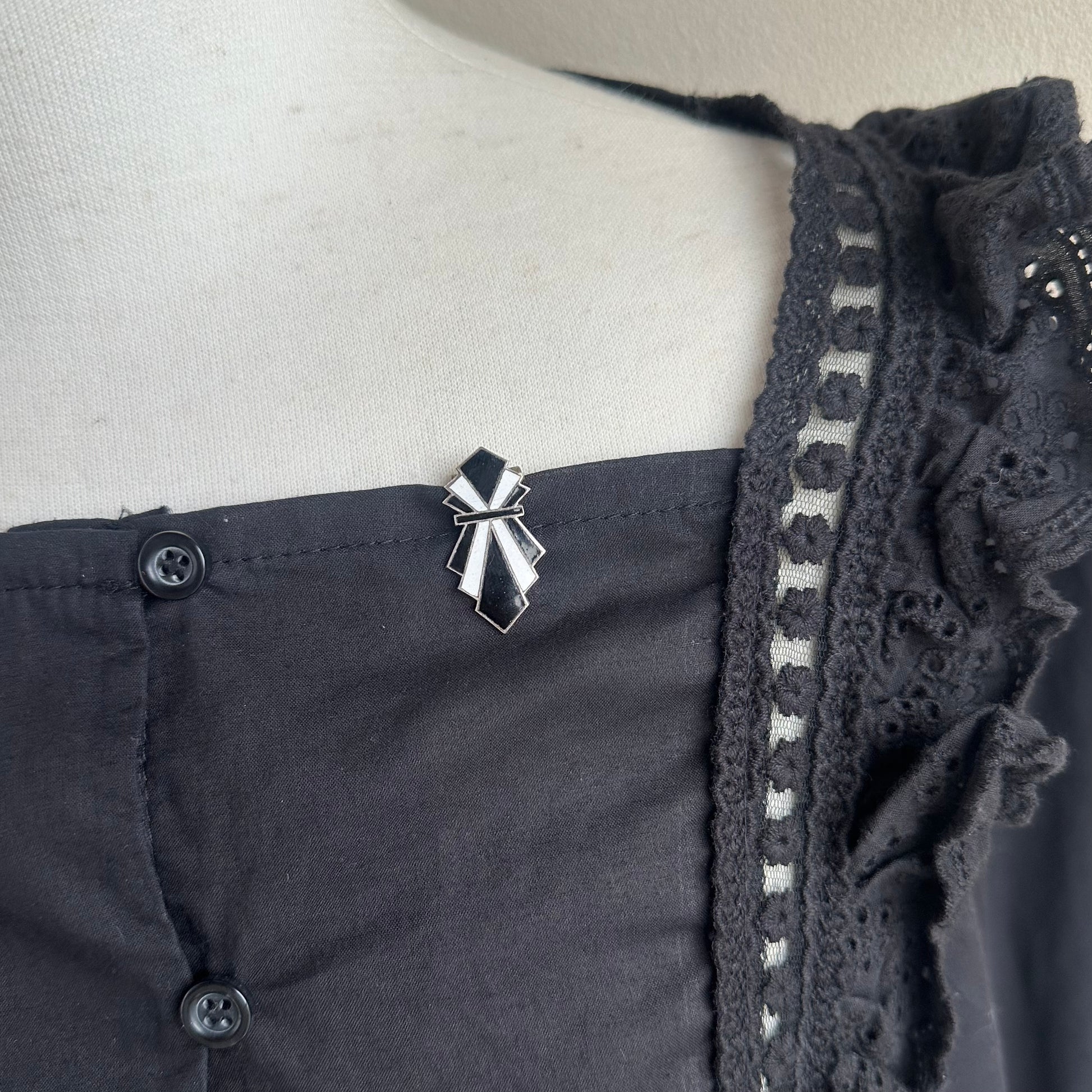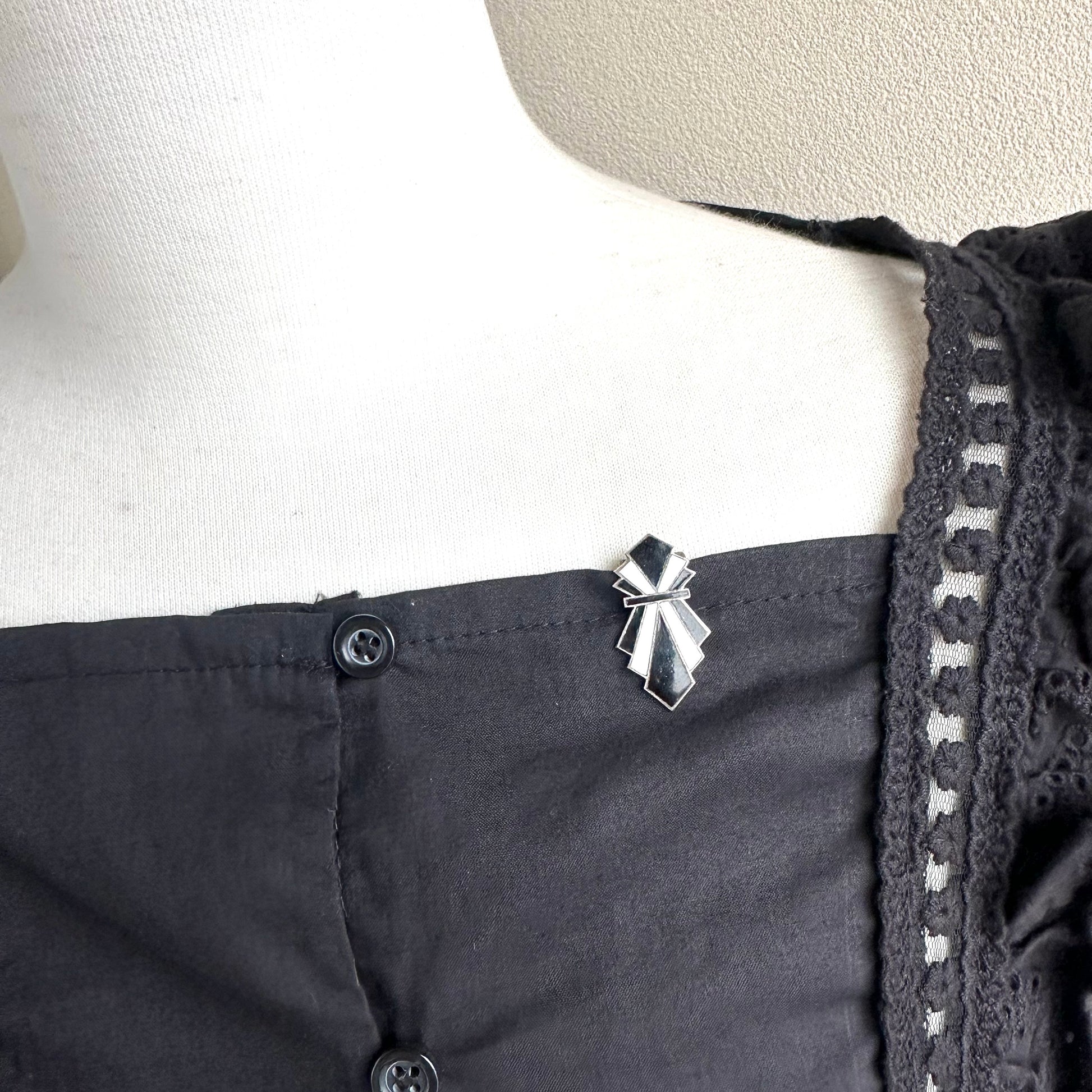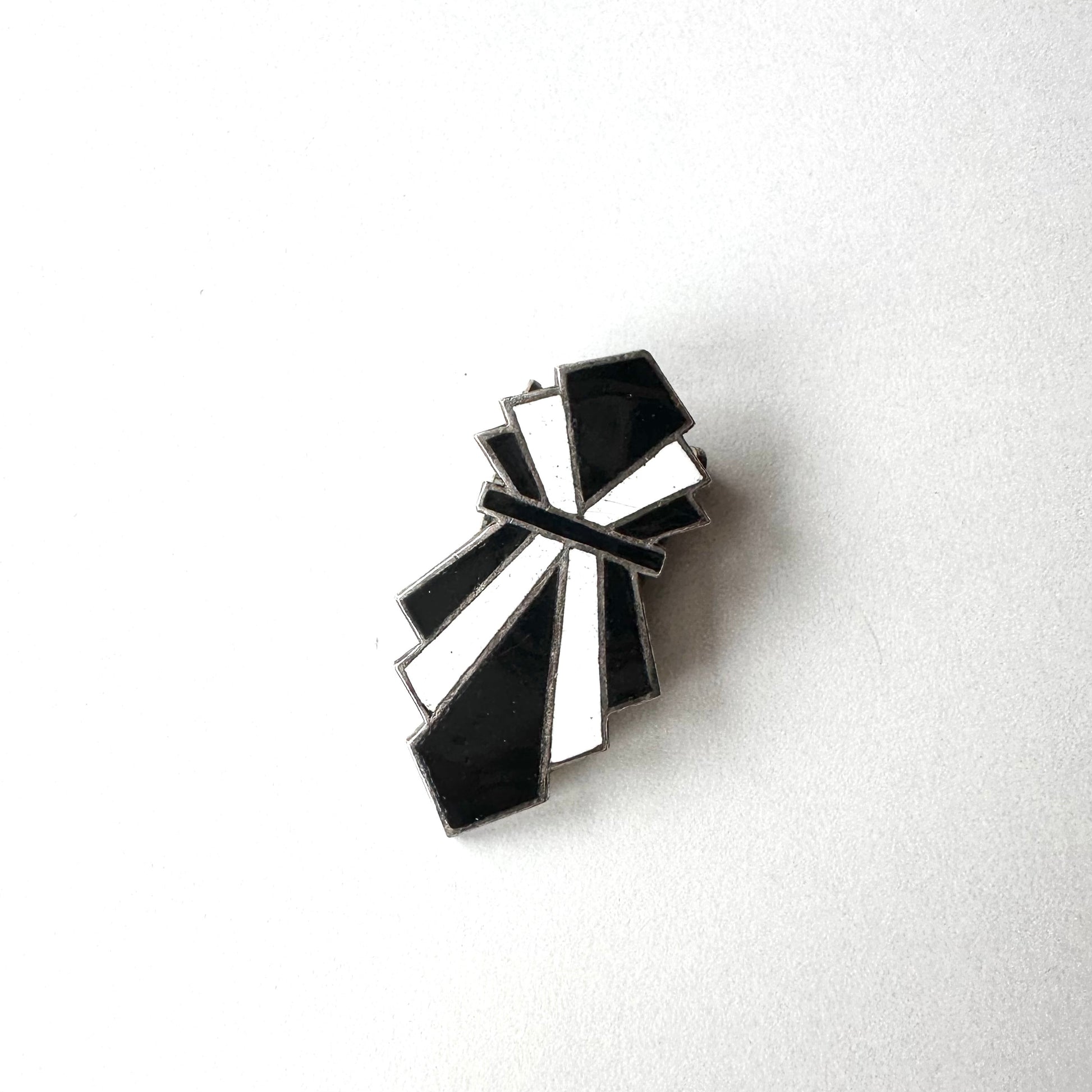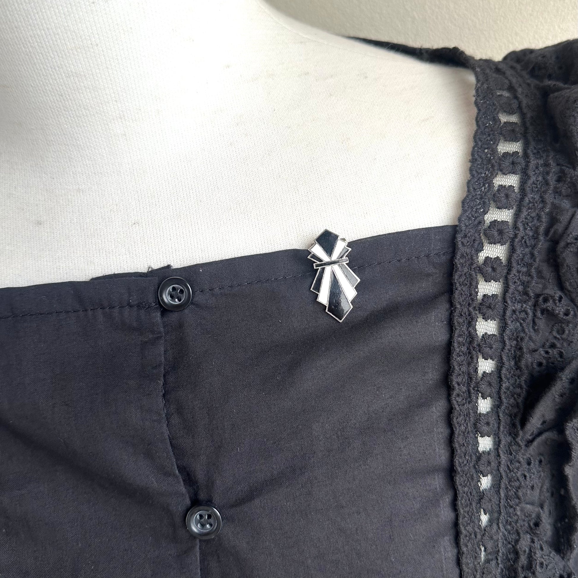 アールデコ ブラック&ホワイト エナメル ドレスクリップ