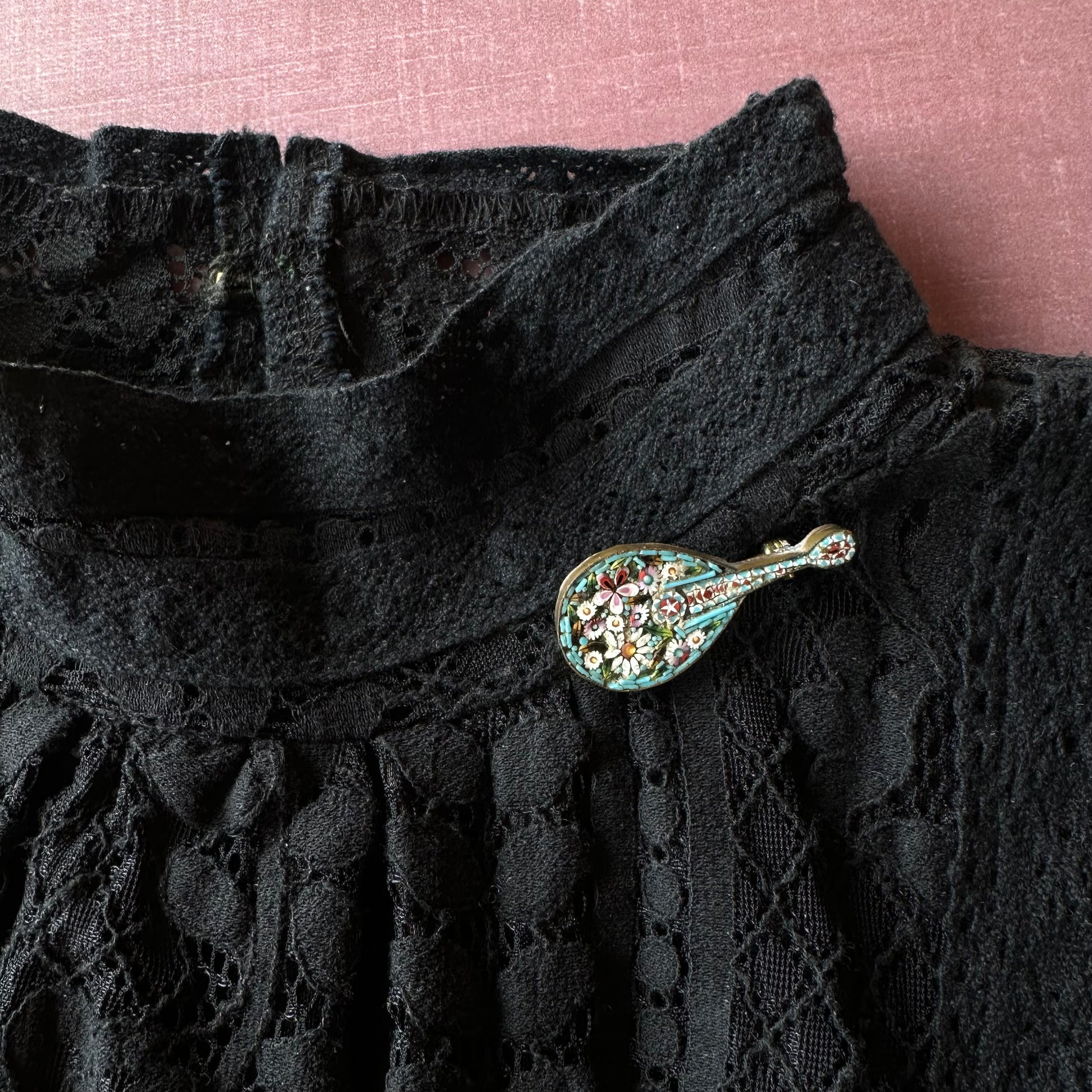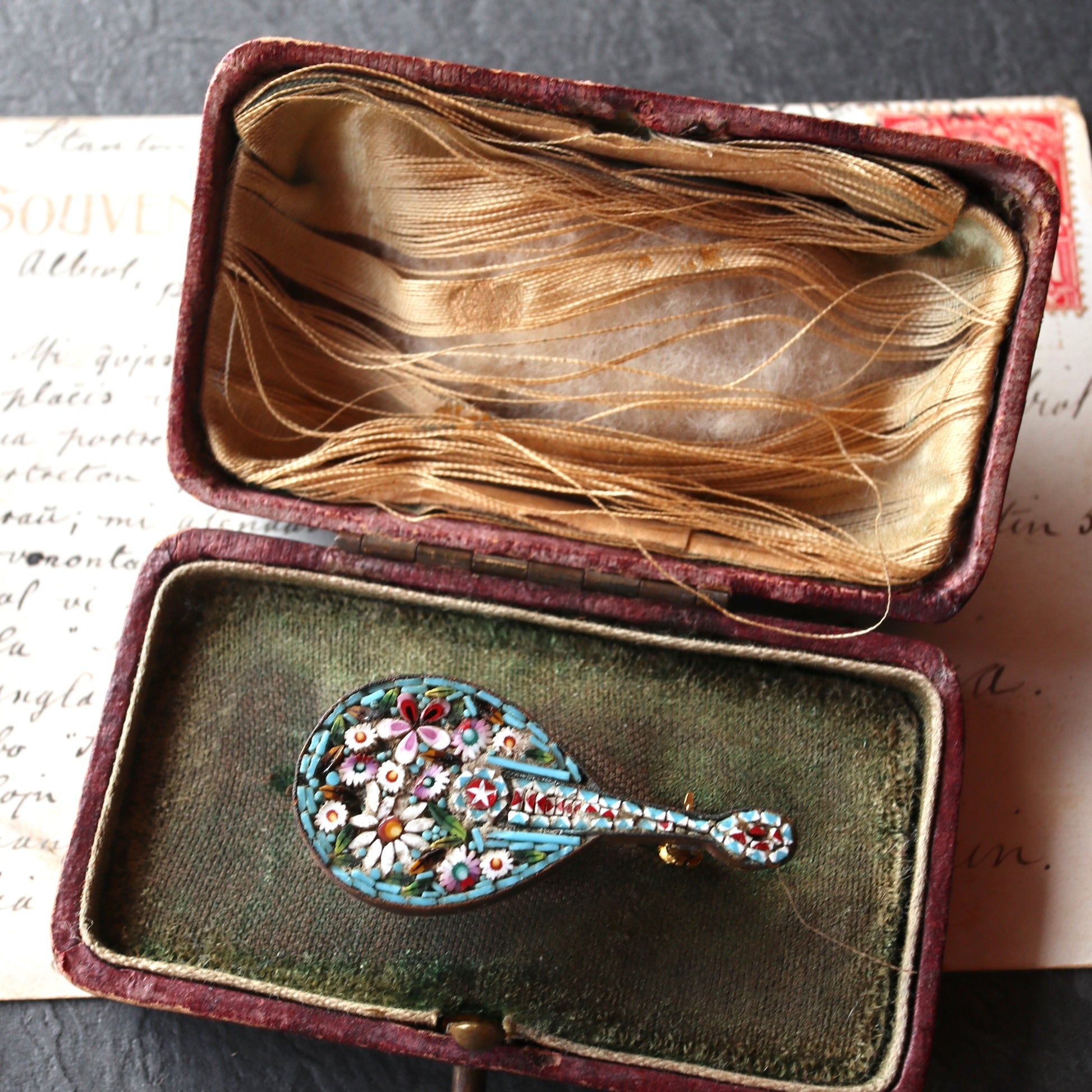 こちらはマンドリンモチーフのアンティークのマイクロモザイク。