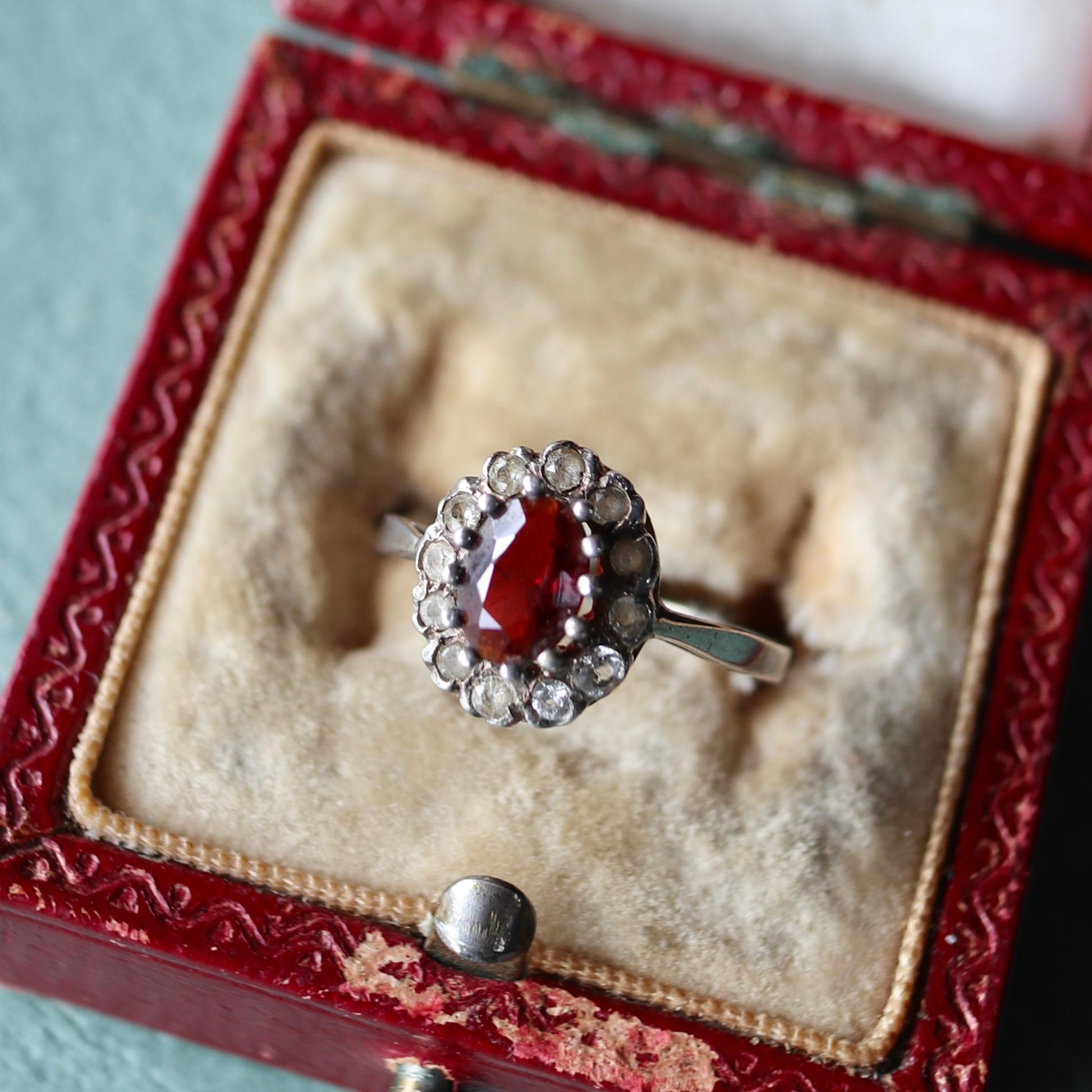 ルビーのような深紅のガーネット、パイロープガーネットのヴィンテージリング。