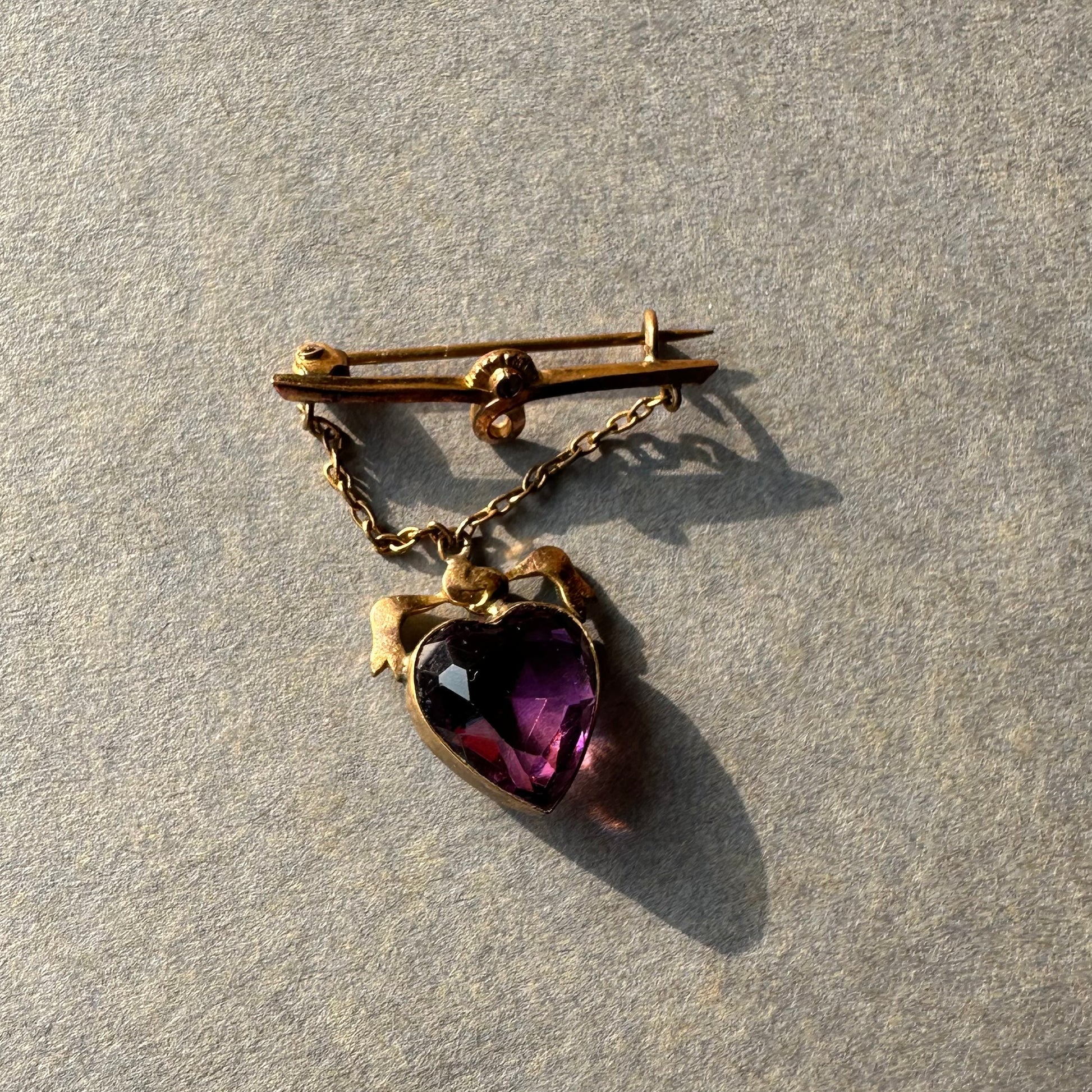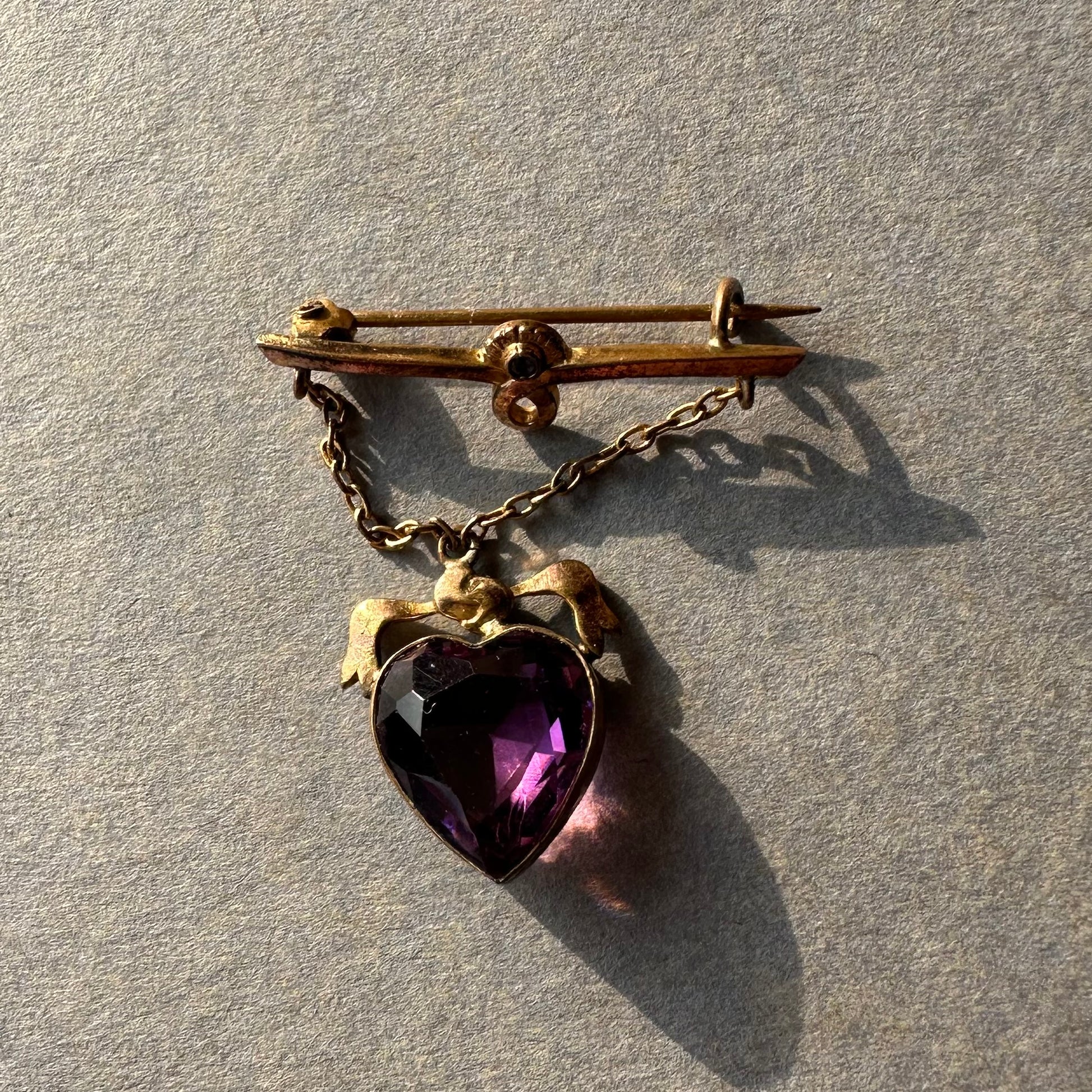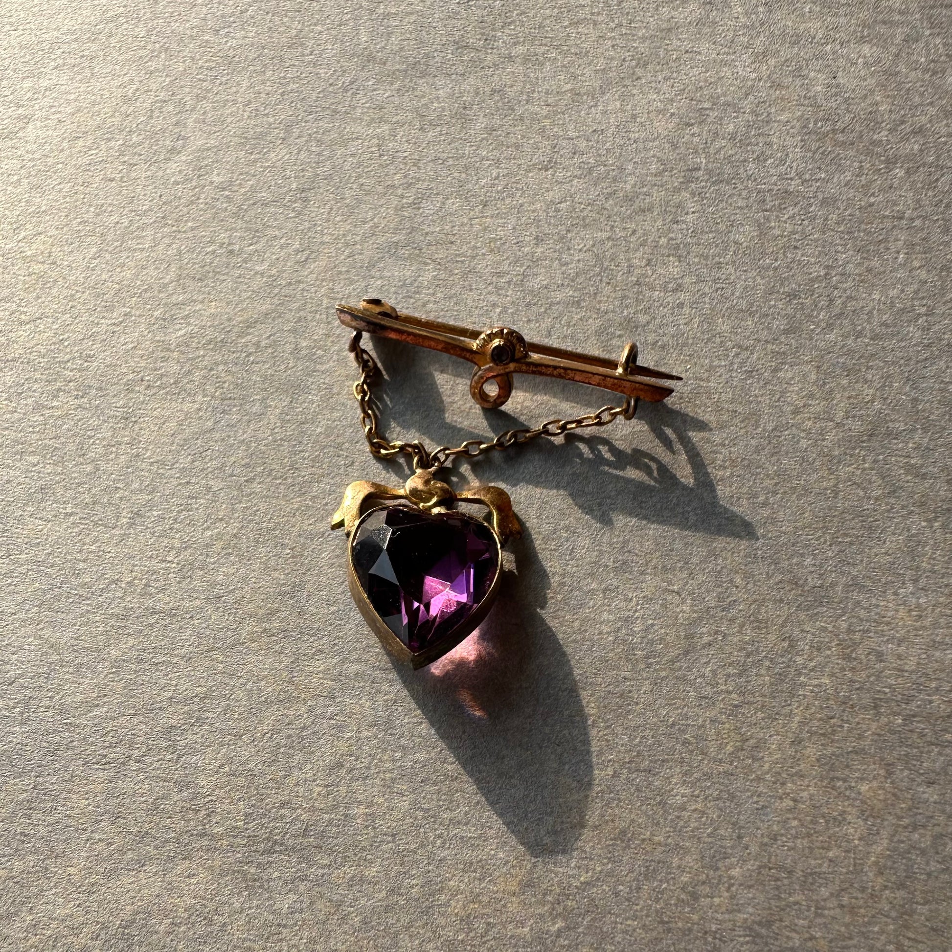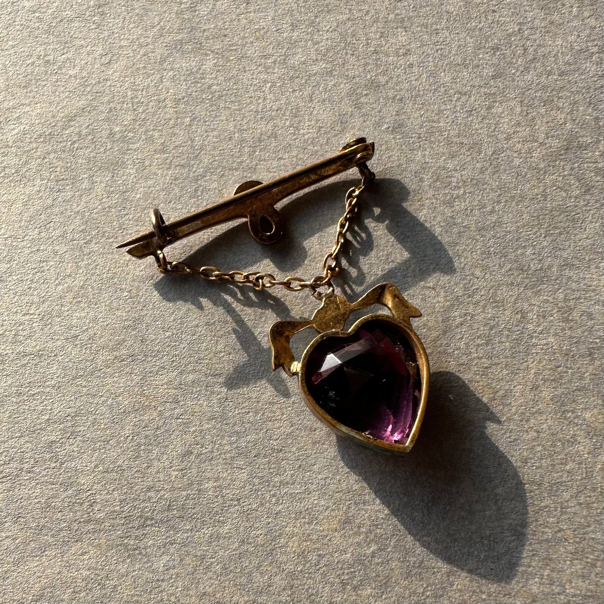 ハート アメジストカラーグラス ハンギング ブローチ