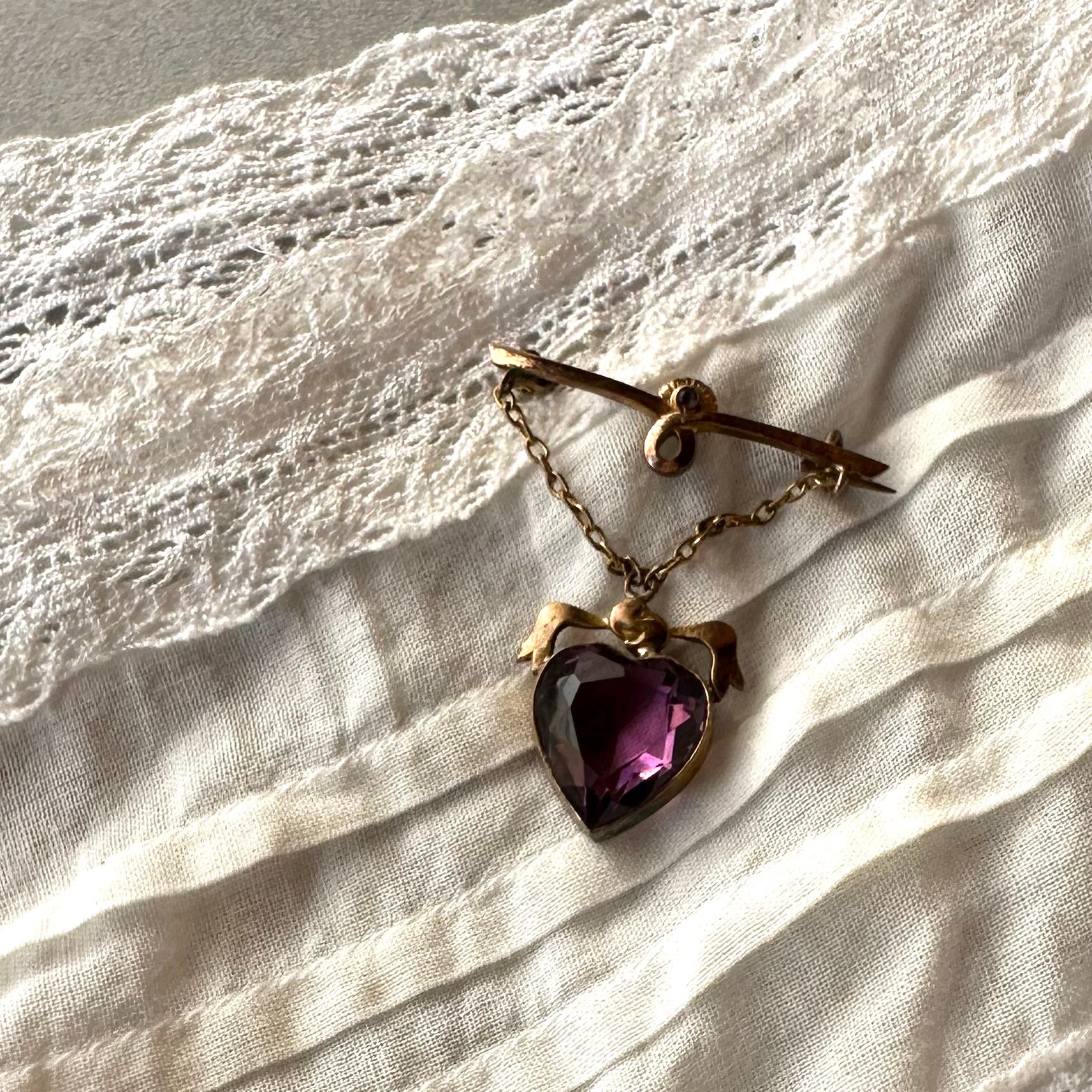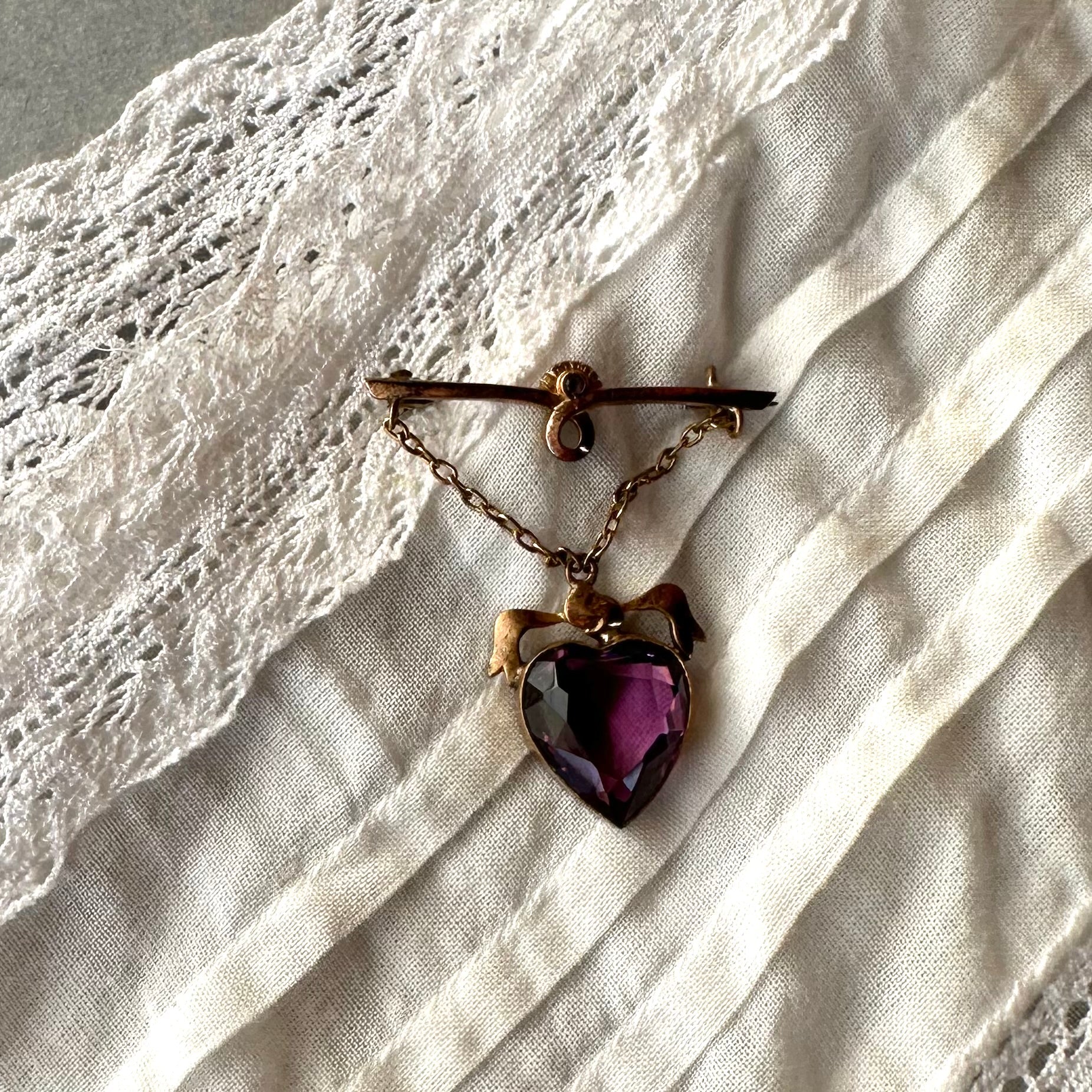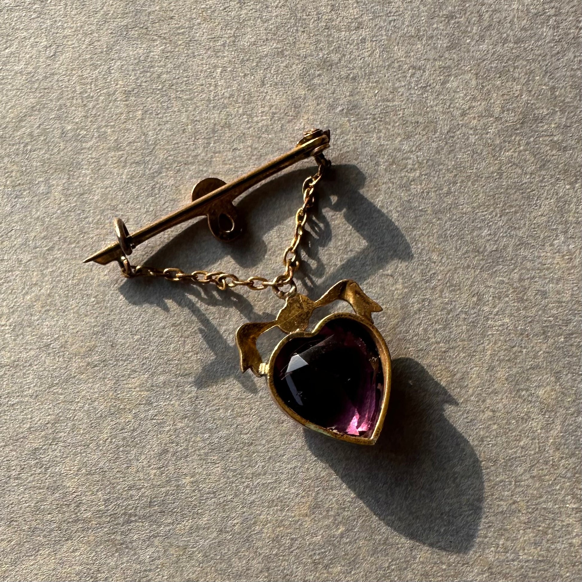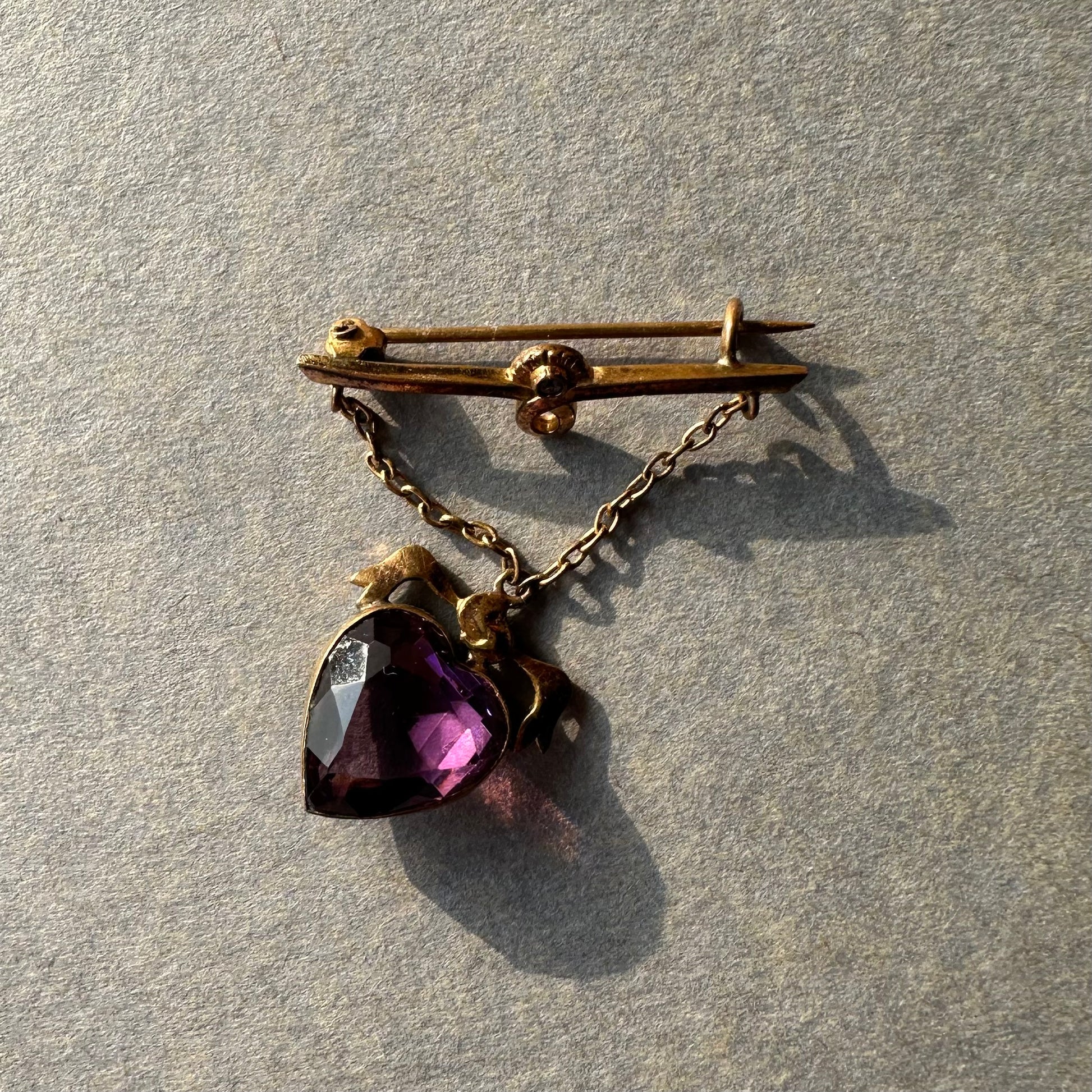 ハート アメジストカラーグラス ハンギング ブローチ
