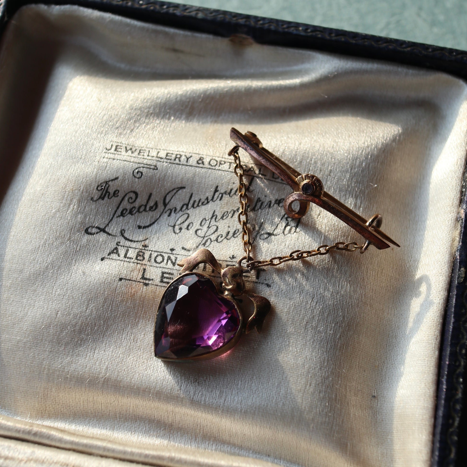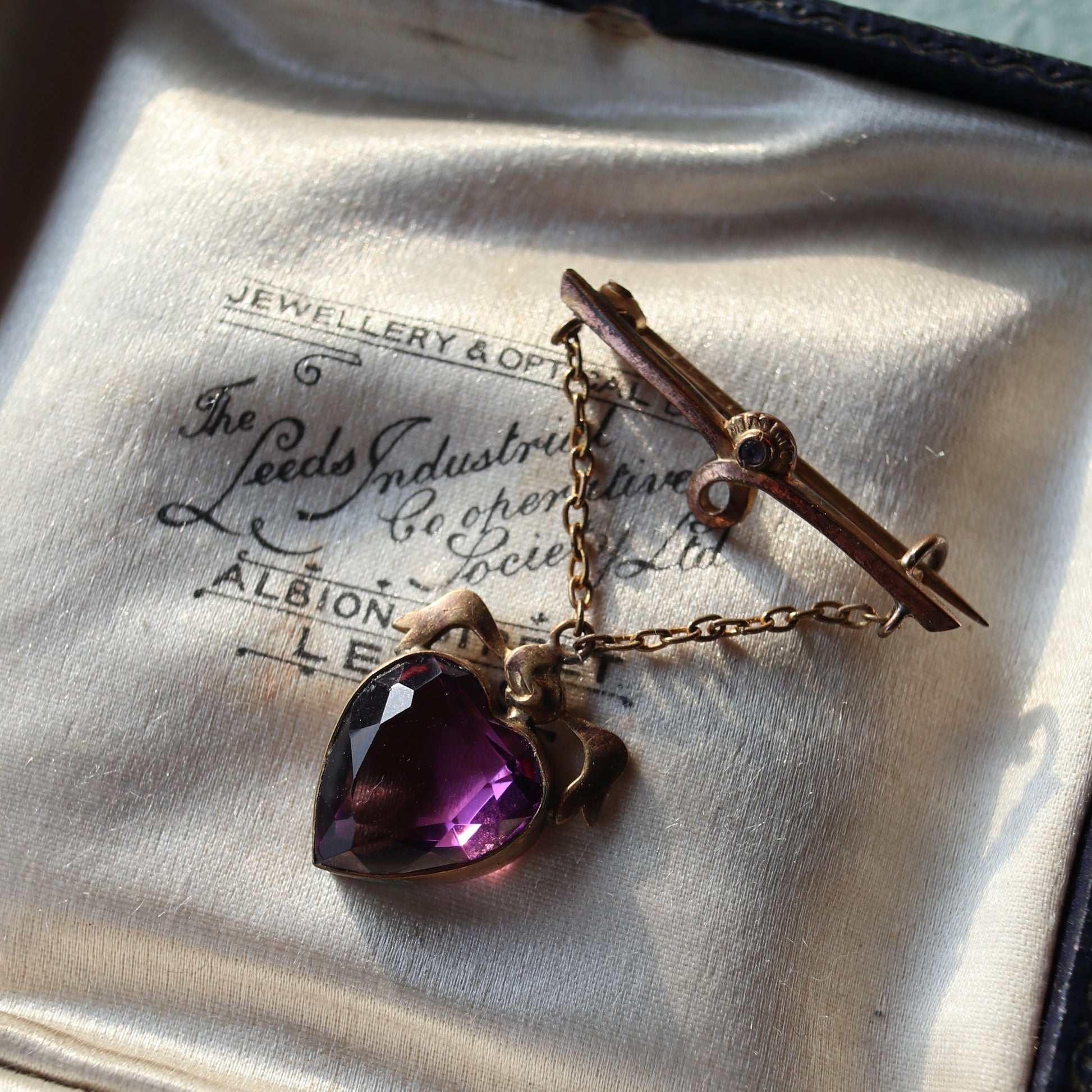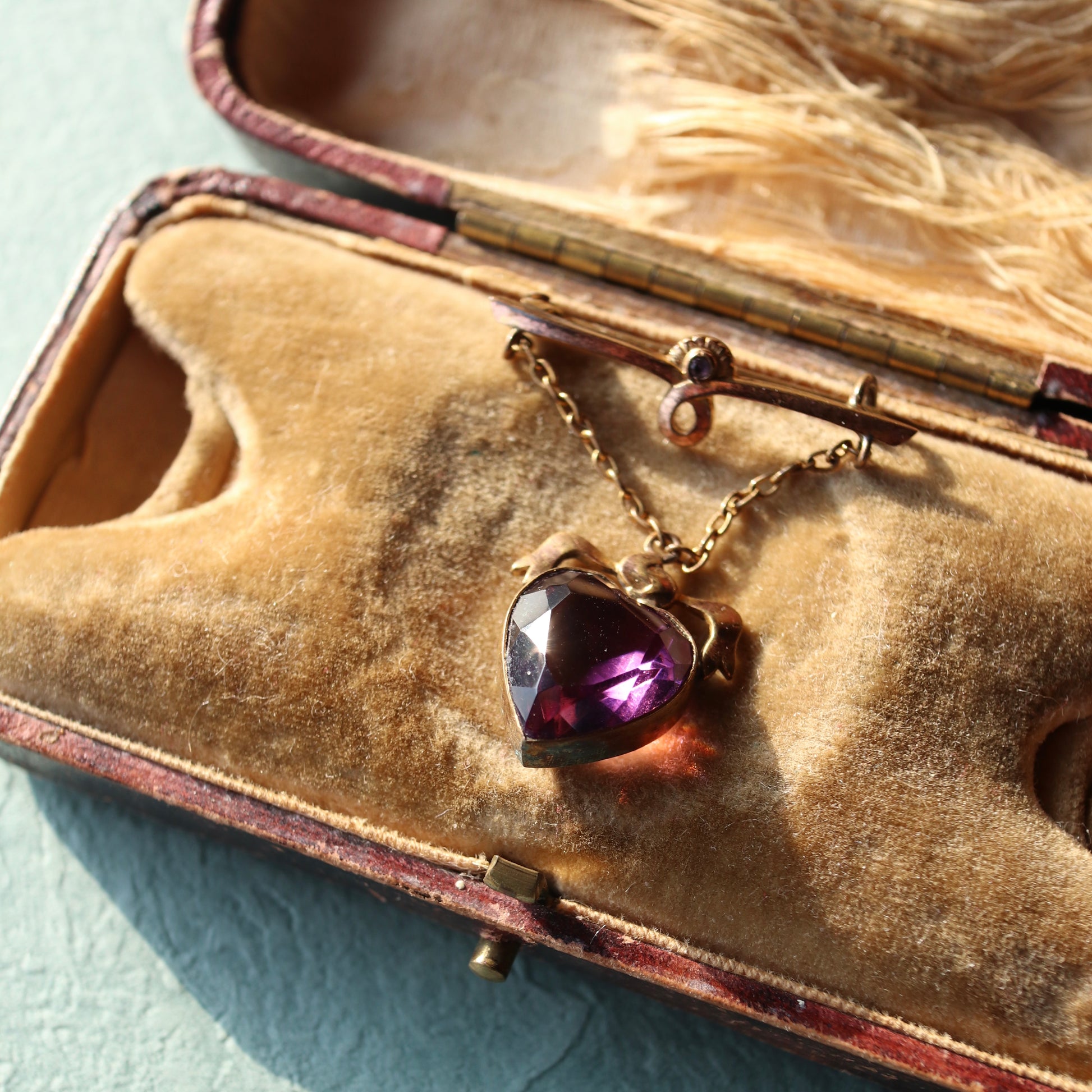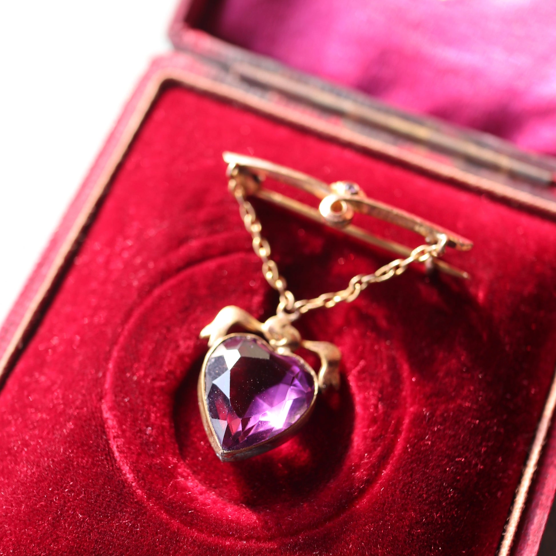 ハート アメジストカラーグラス ハンギング ブローチ