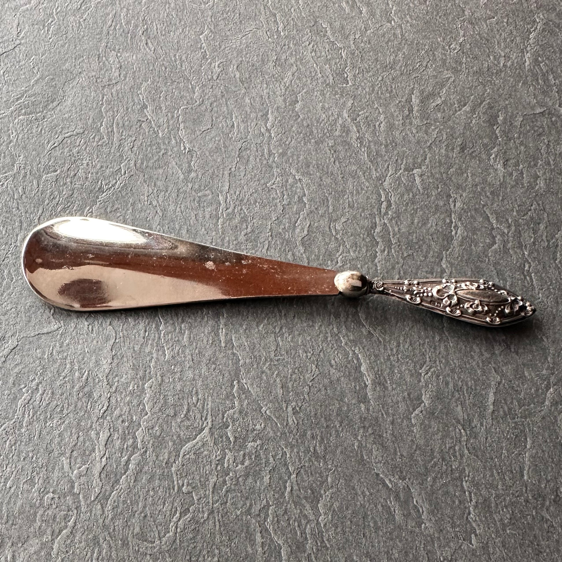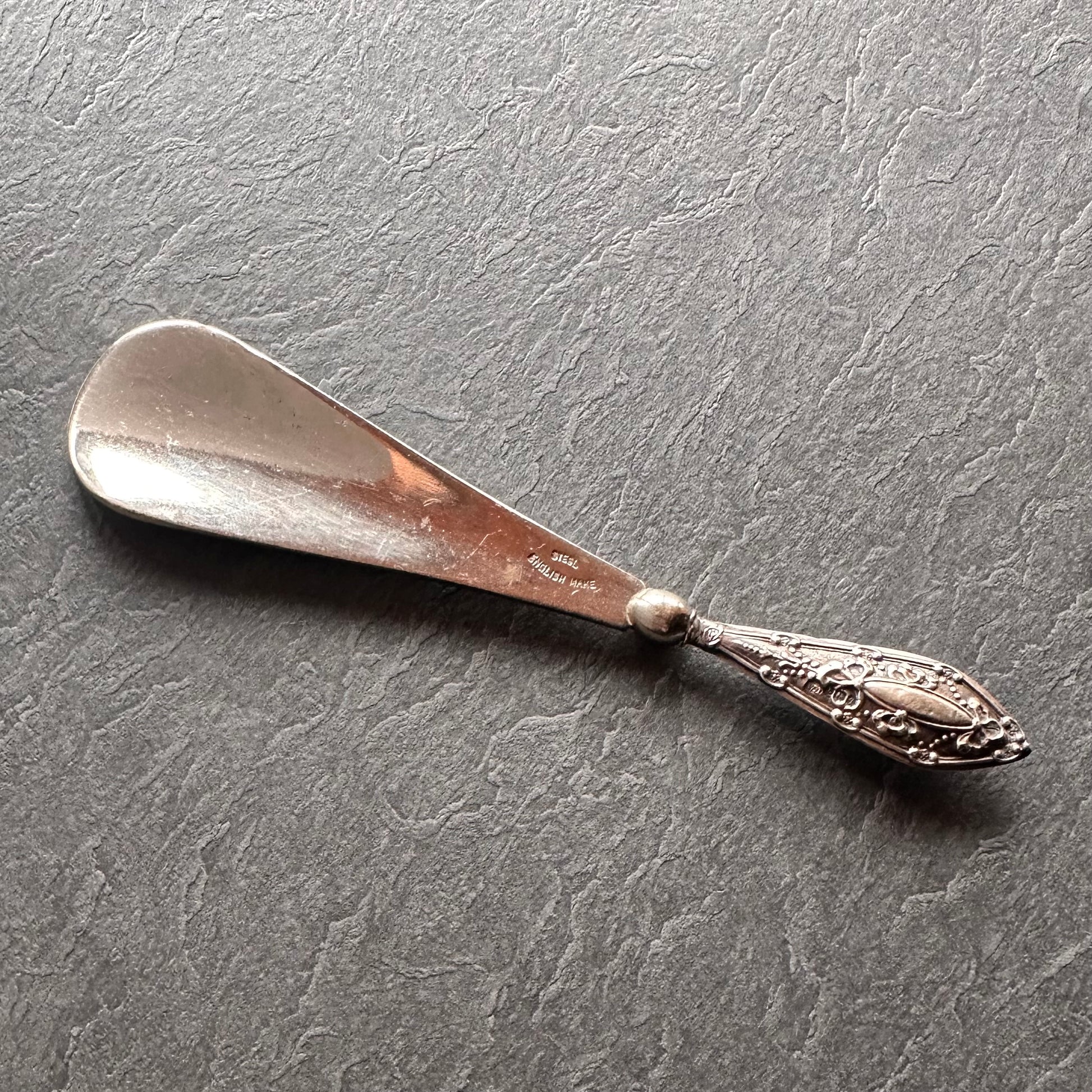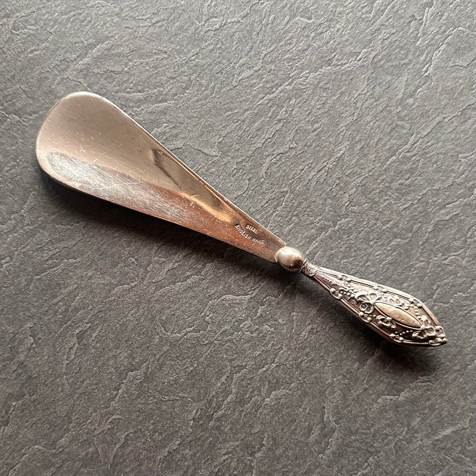 スターリングシルバー&スチール アンティークシューホーン 1915年 バーミンガム