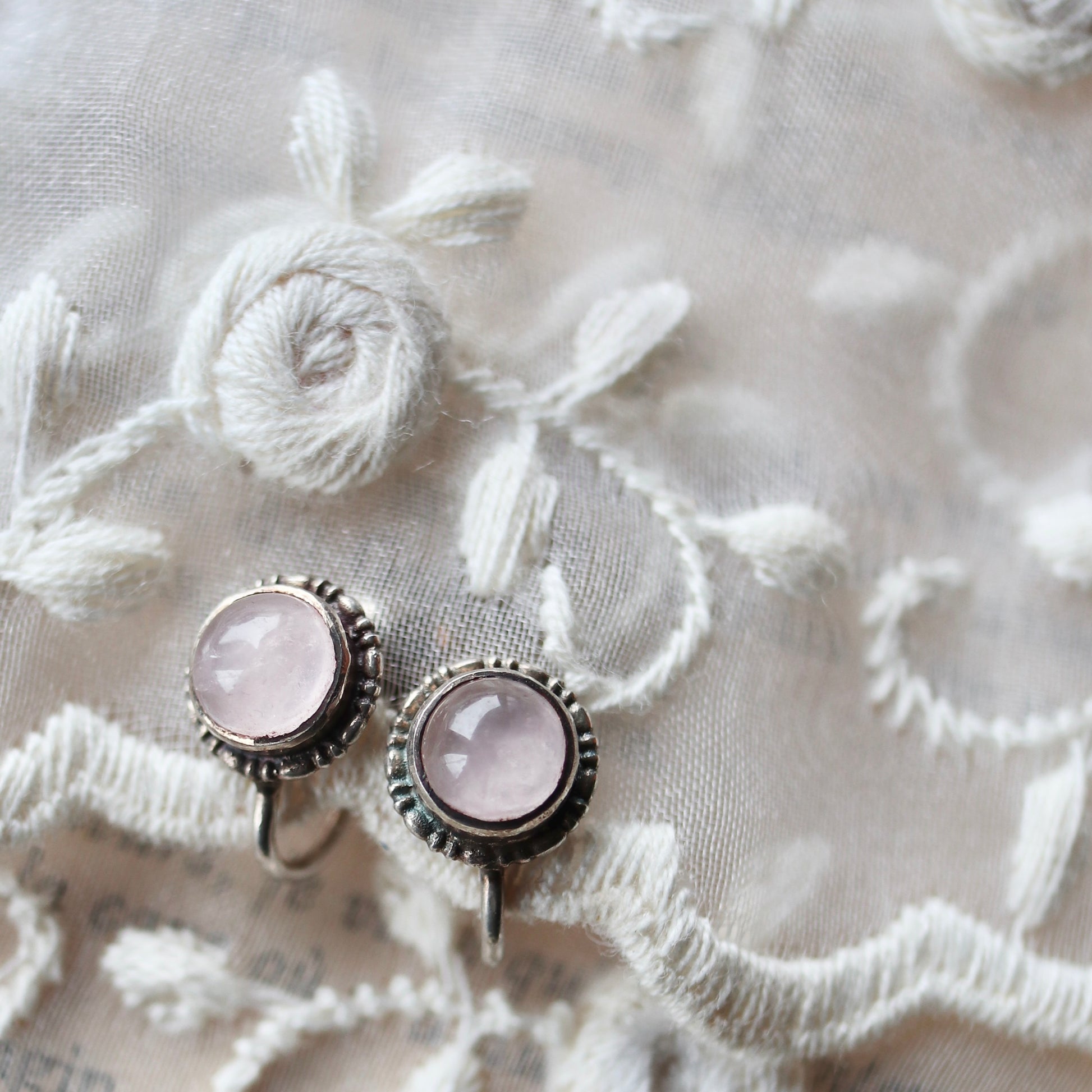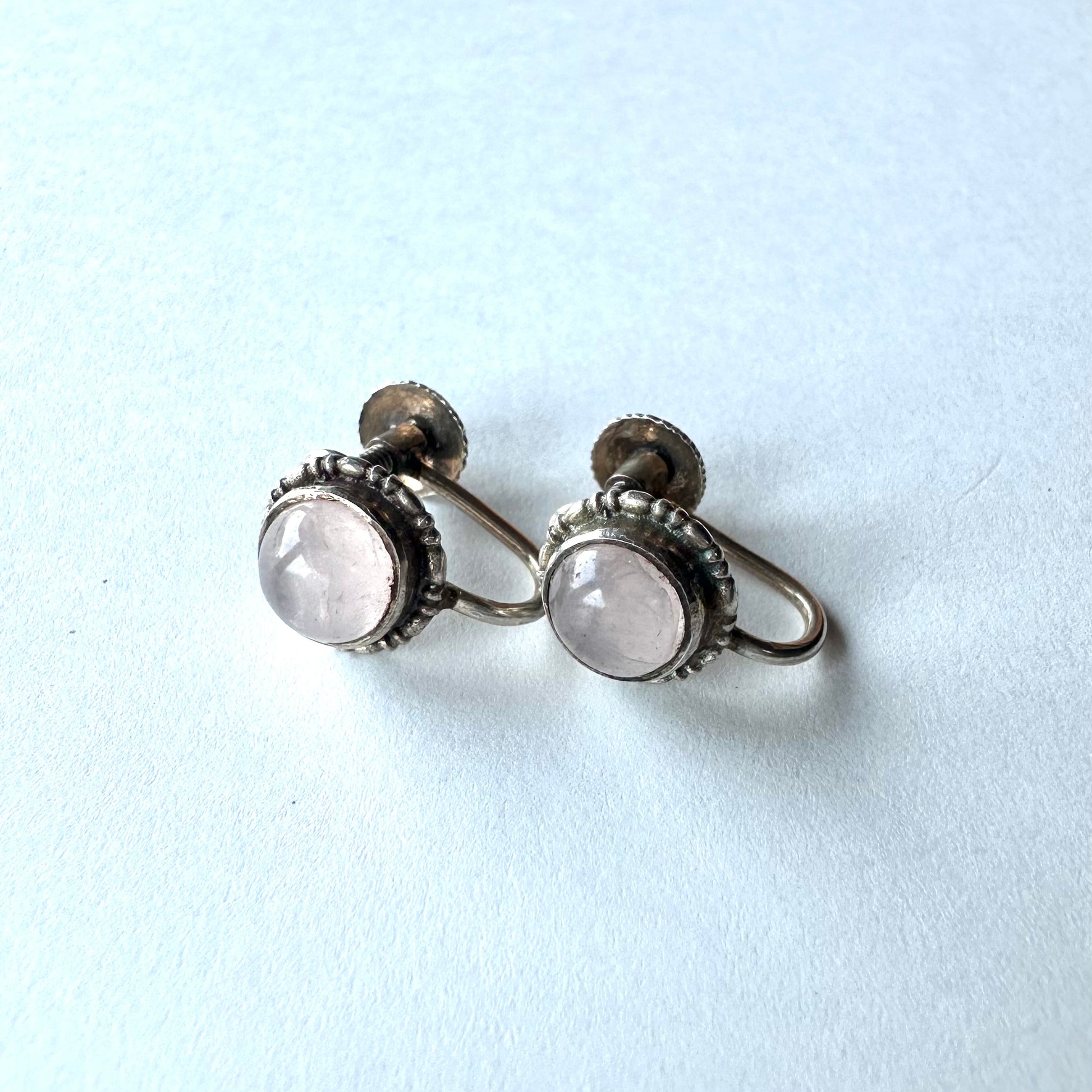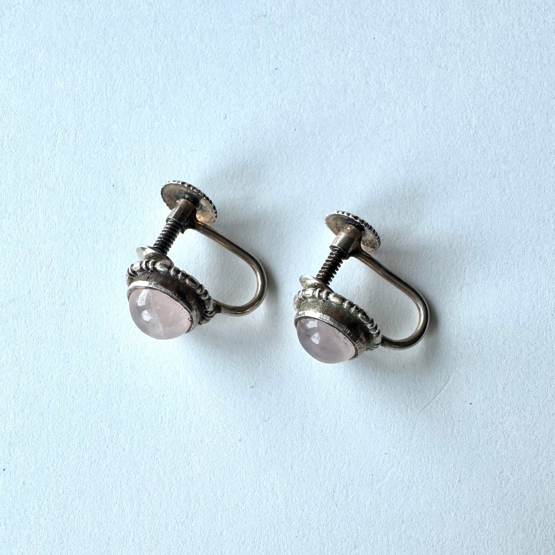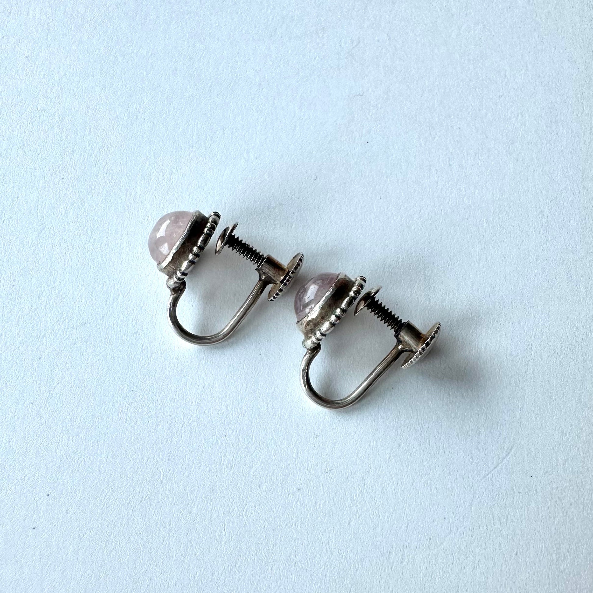 天然ローズクォーツ ヴィンテージイヤリング(鑑別書付)