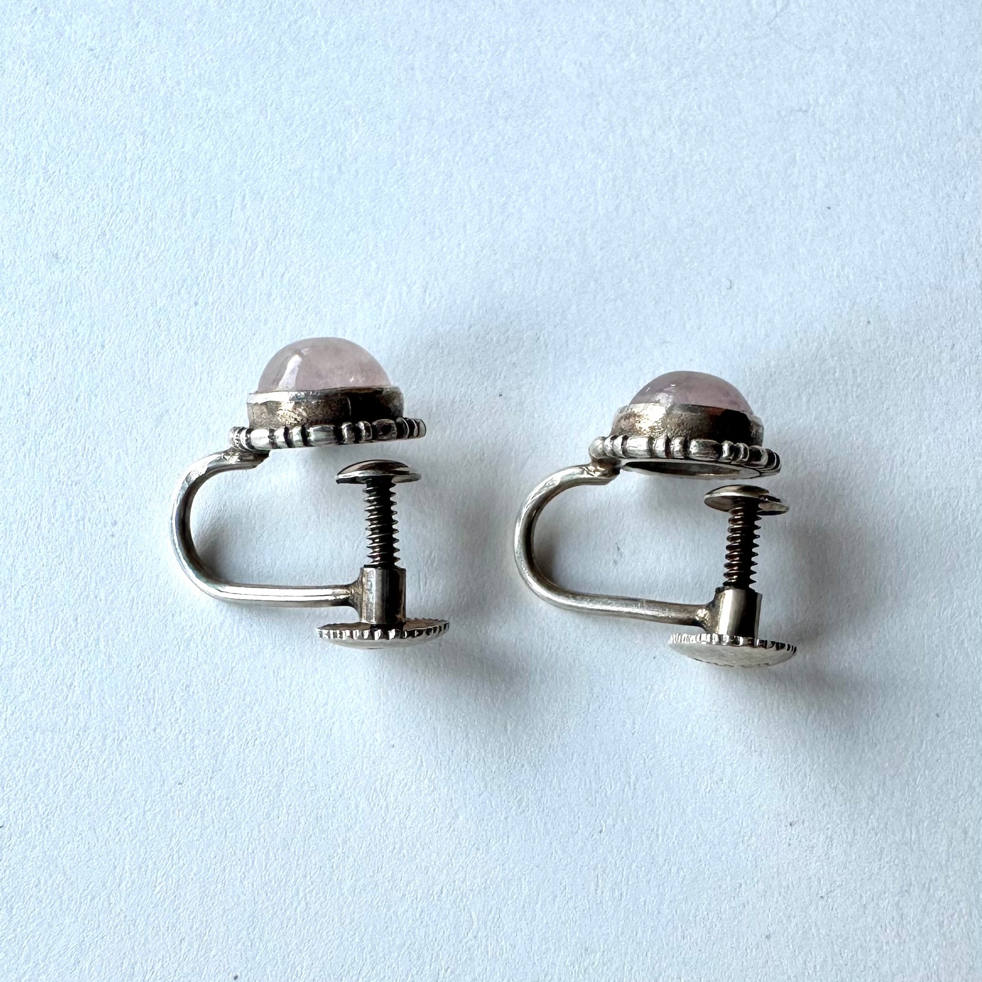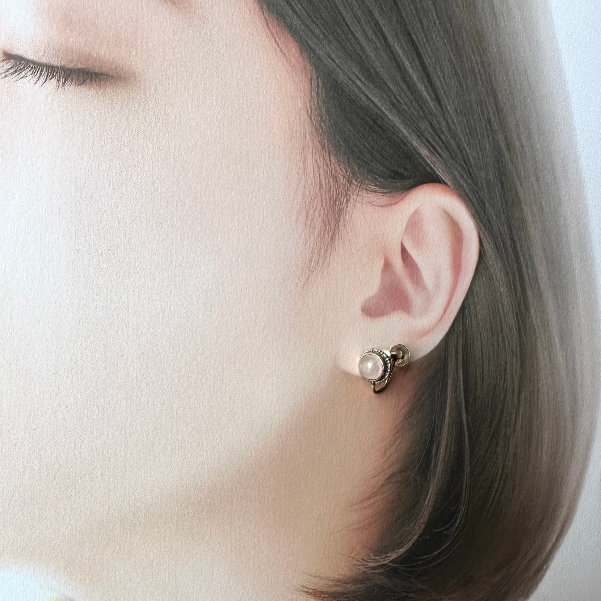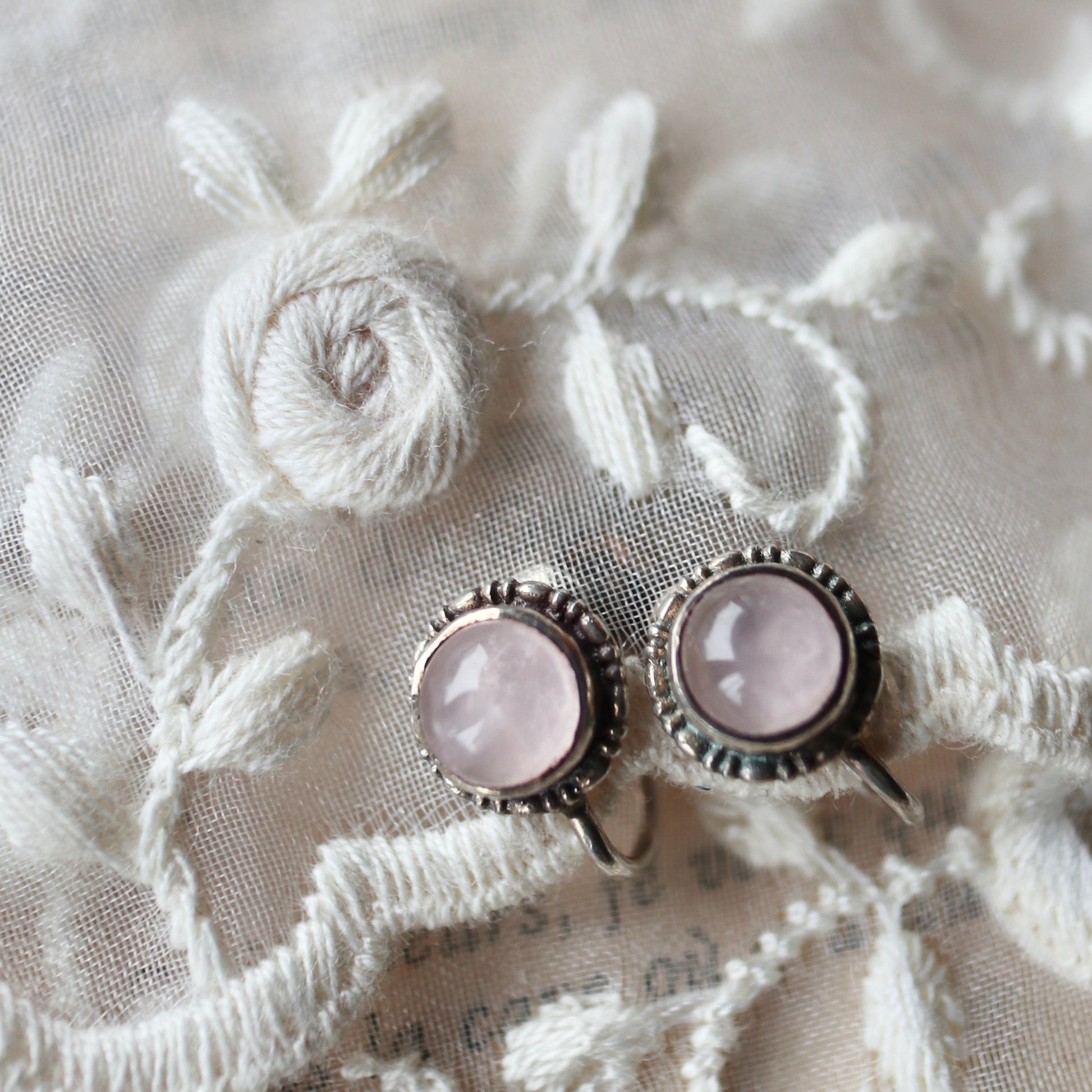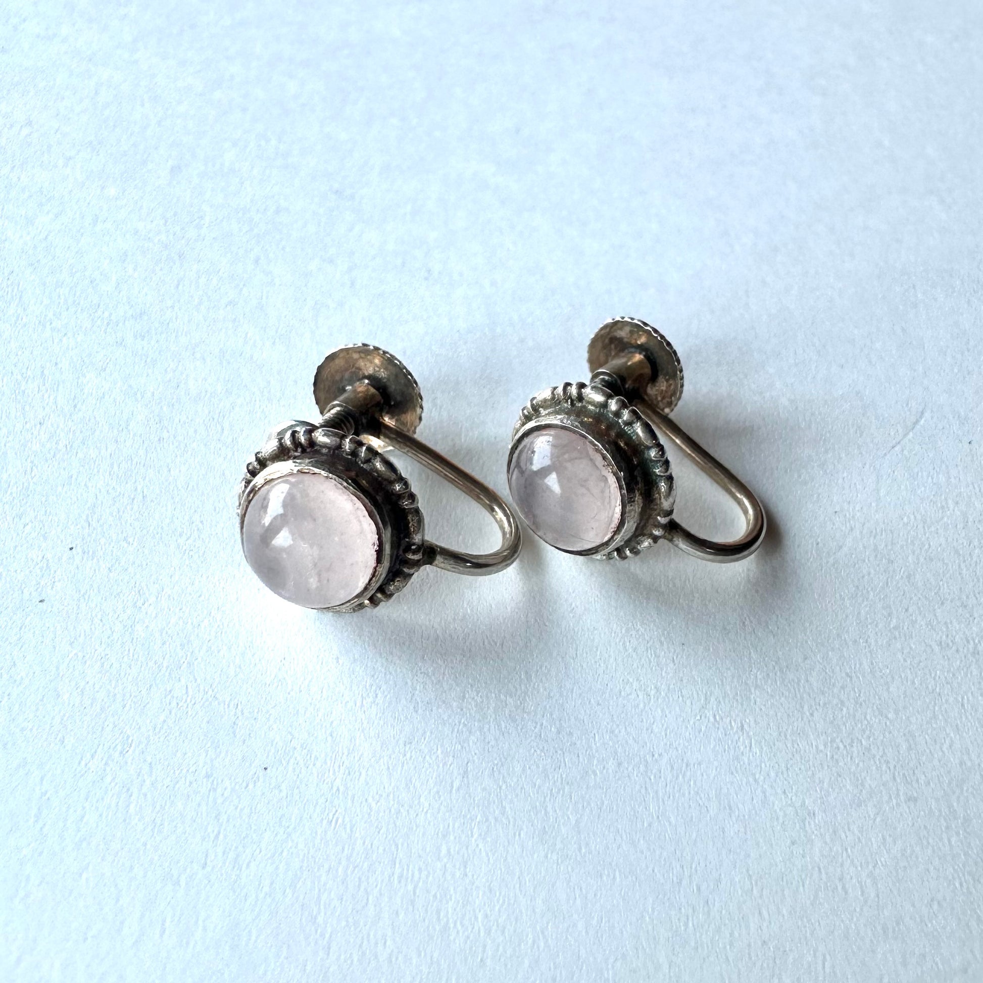 天然ローズクォーツ ヴィンテージイヤリング(鑑別書付)