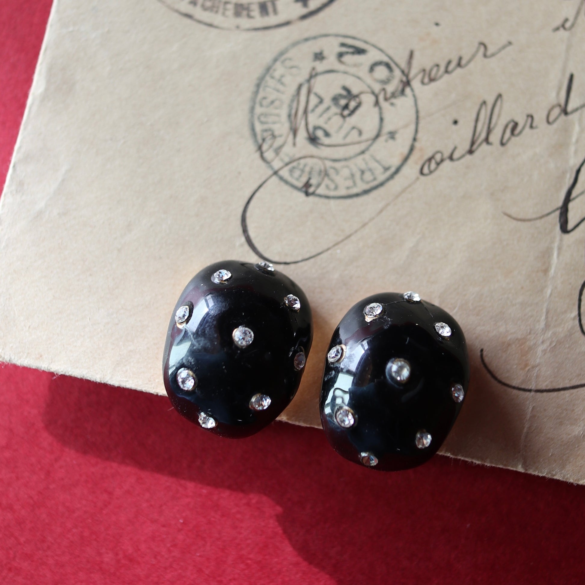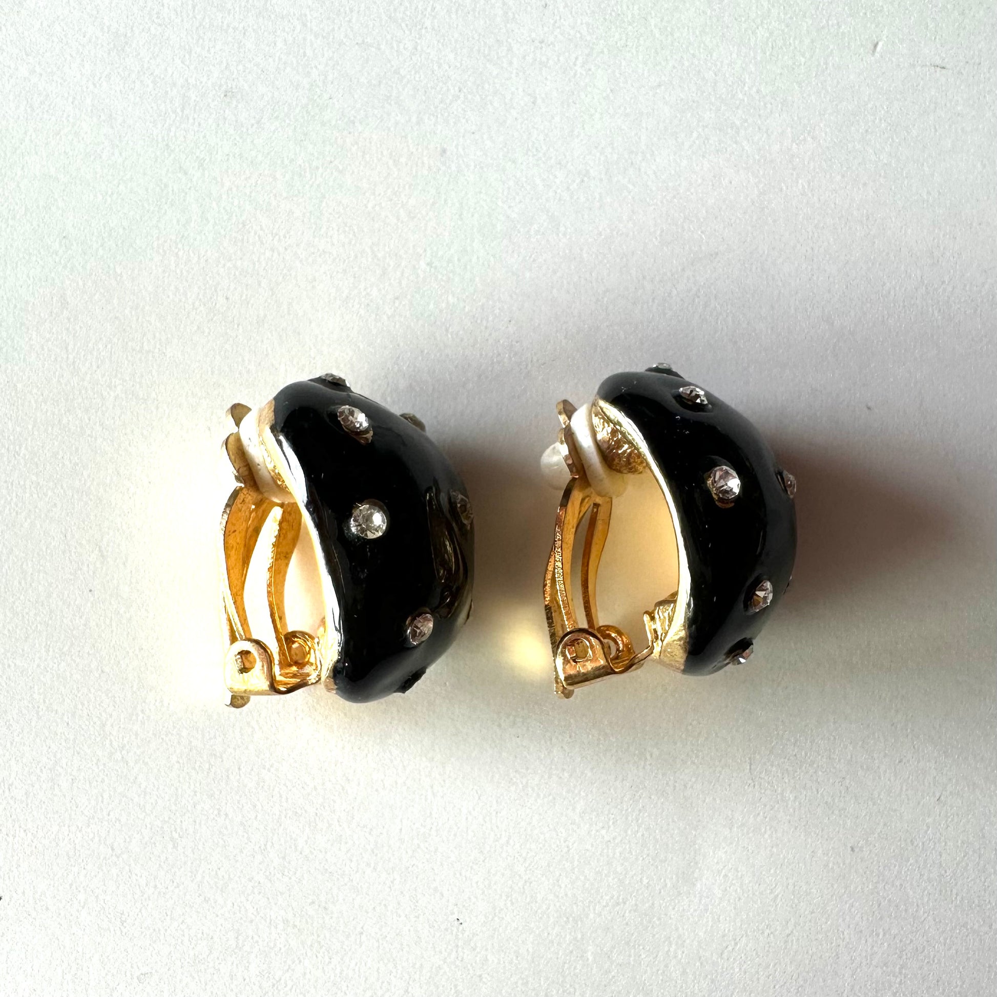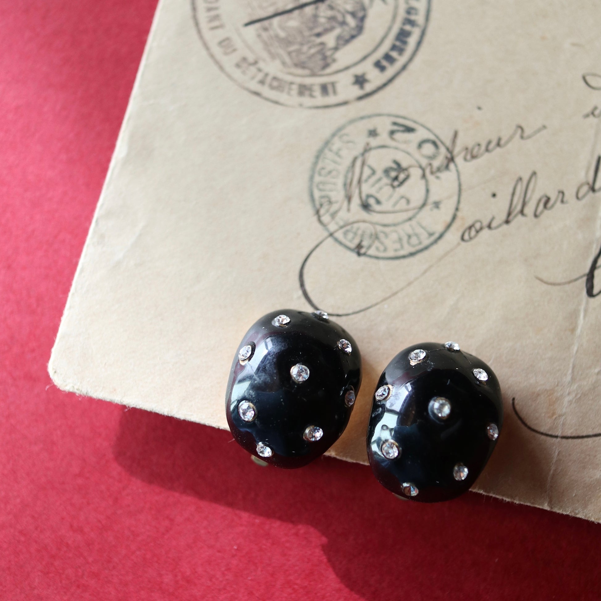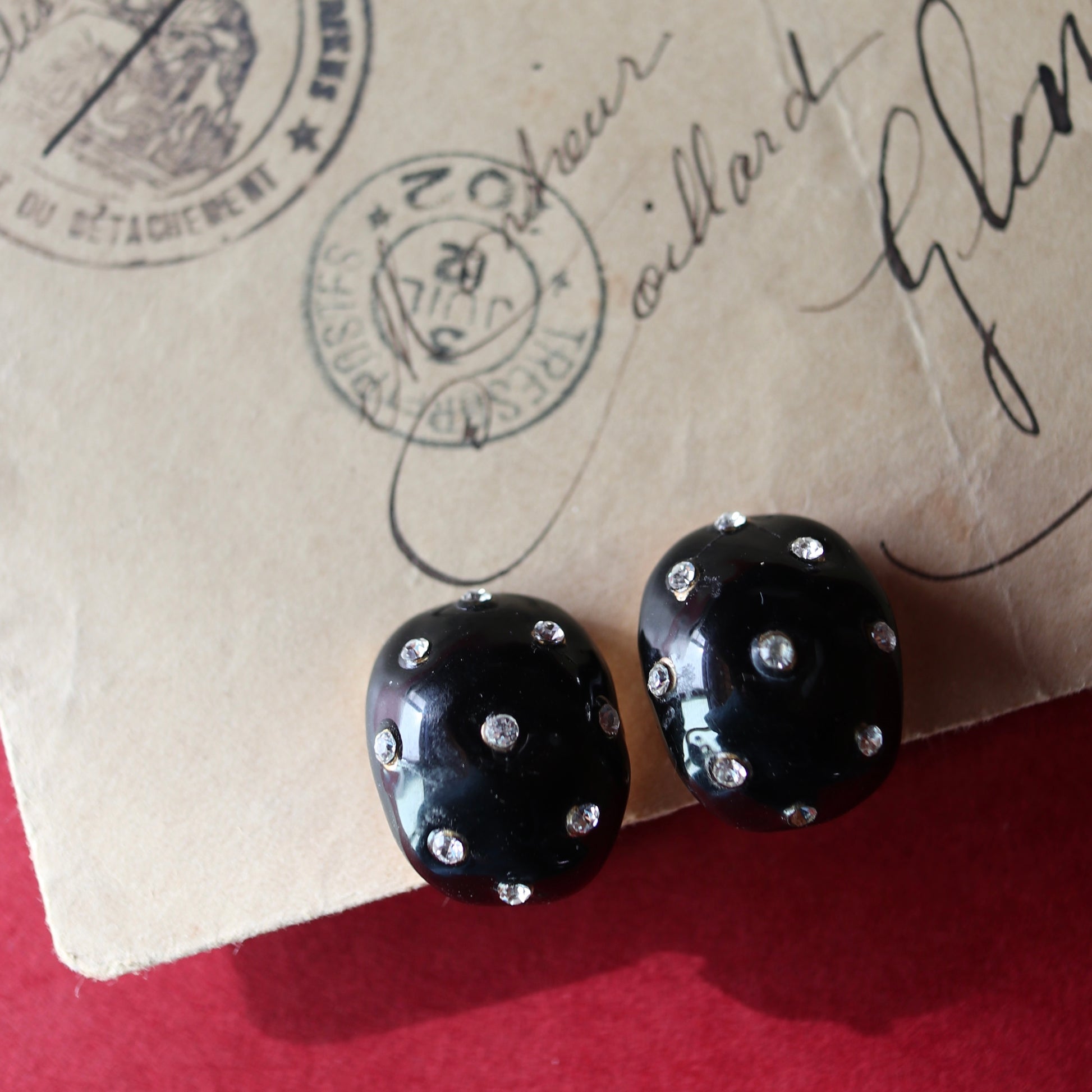 ブラックエナメル&クリアグラス クリップオンイヤリング