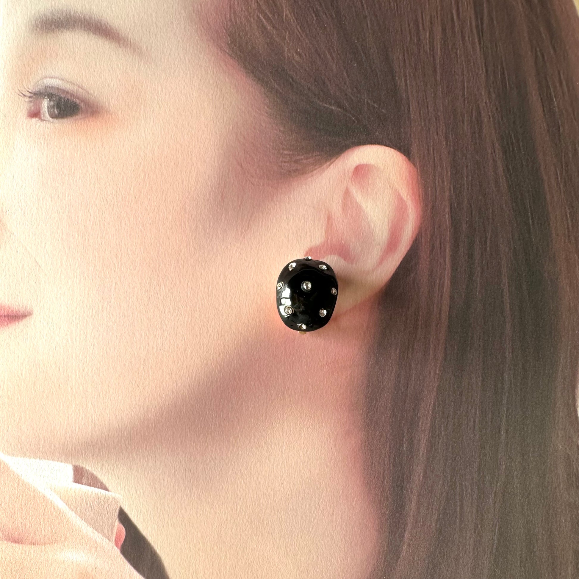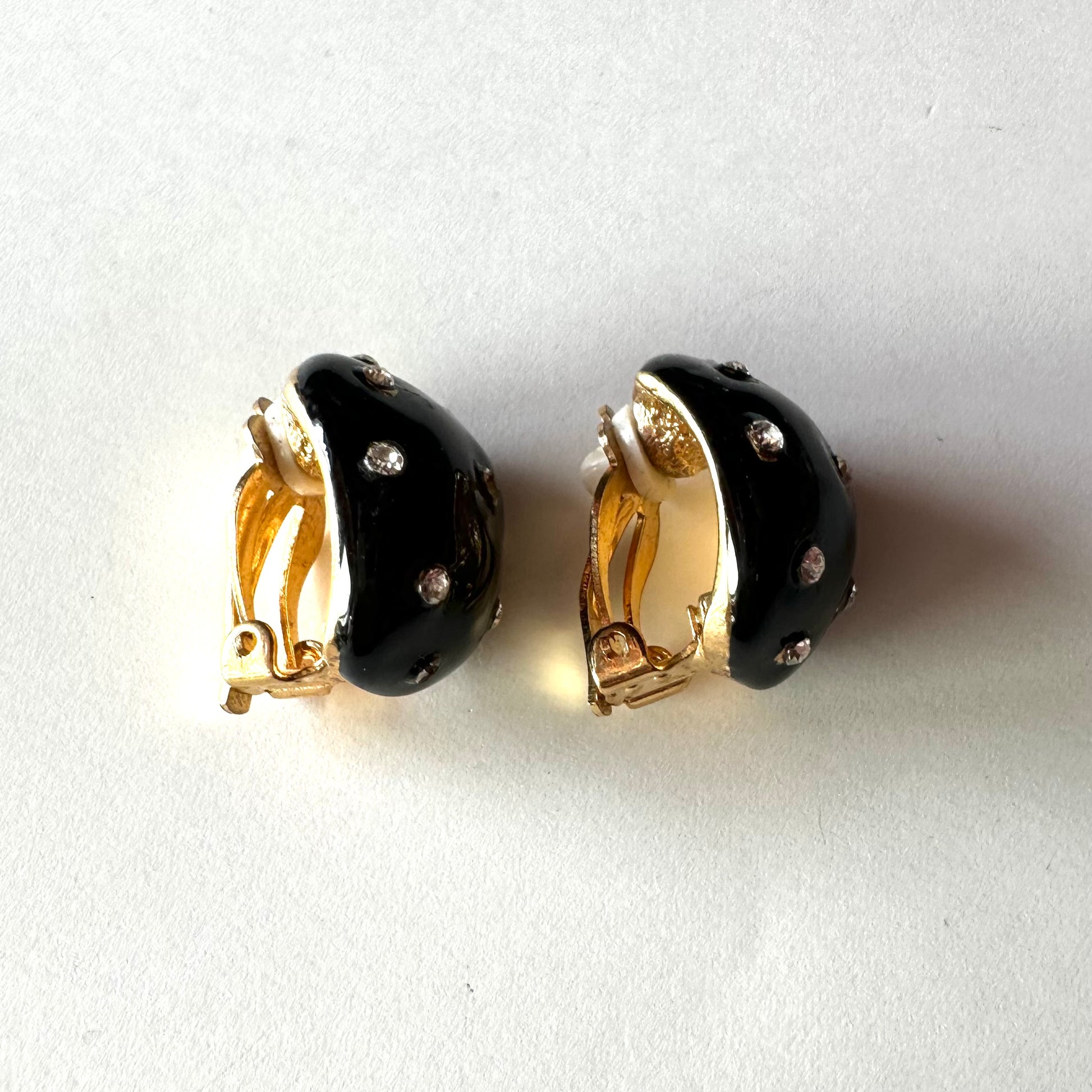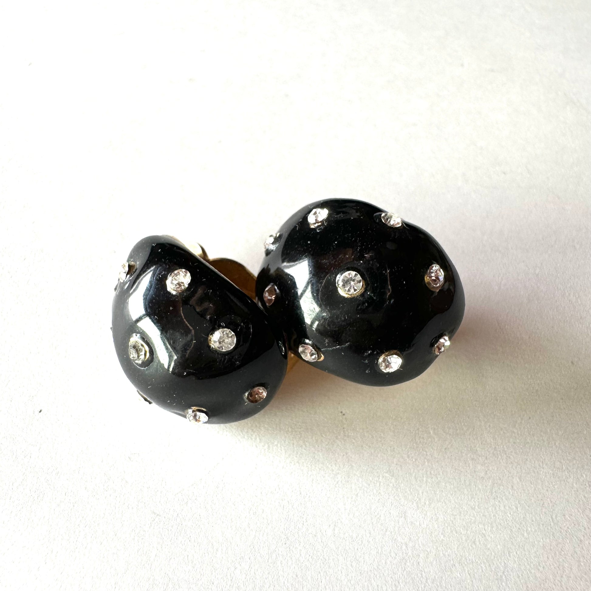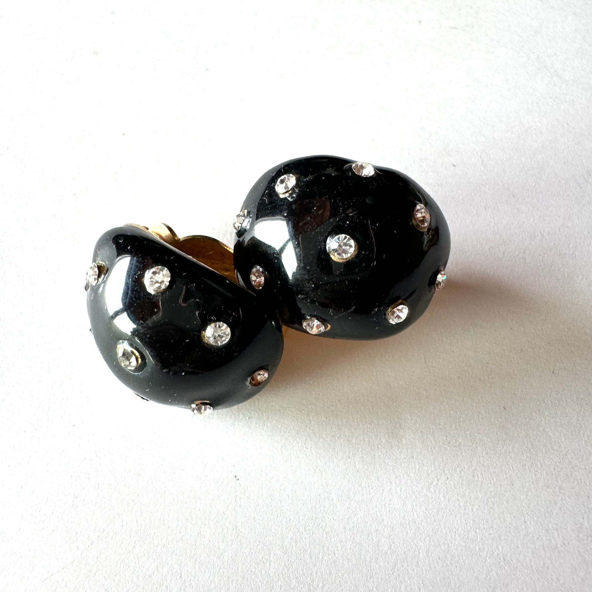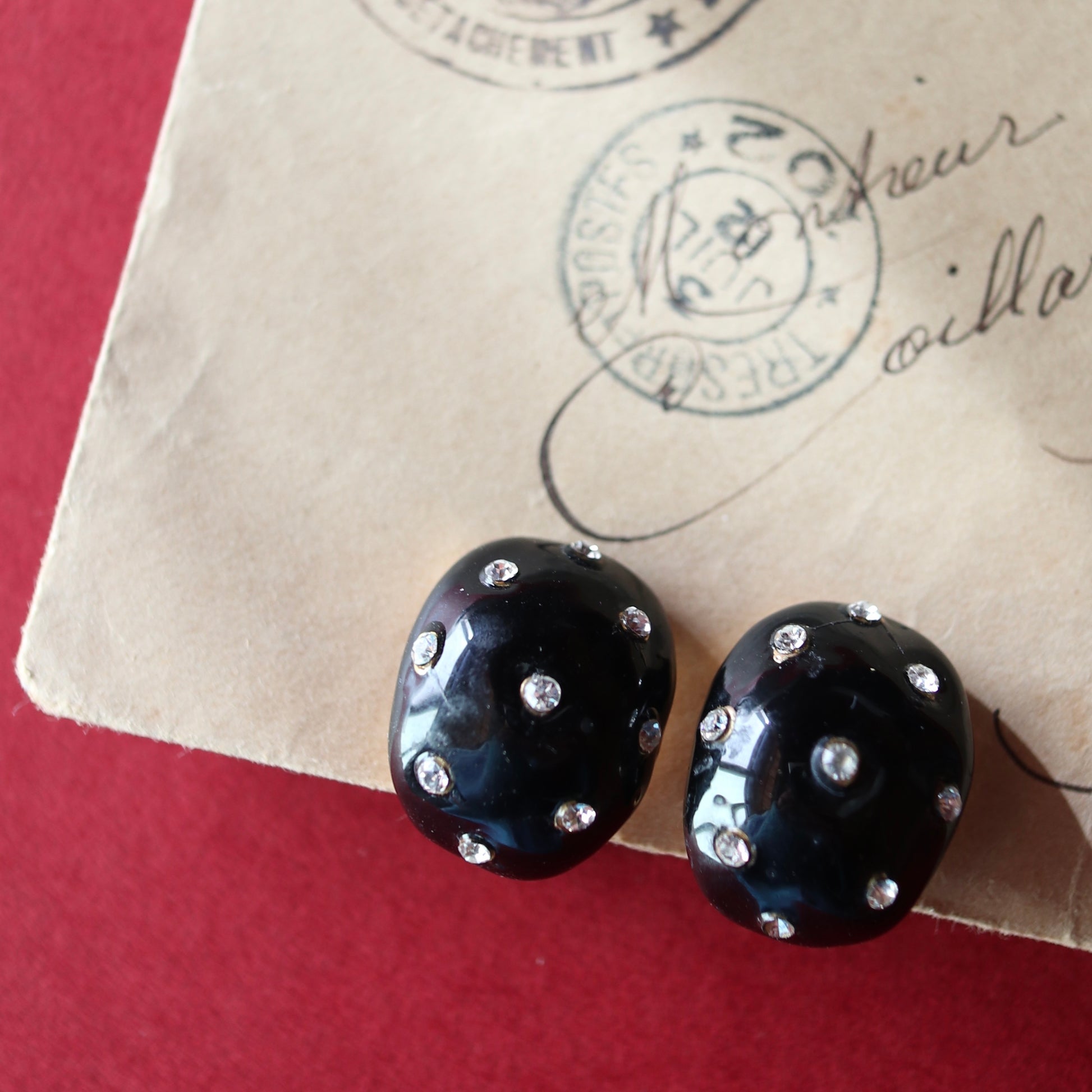 ブラックエナメル&クリアグラス クリップオンイヤリング