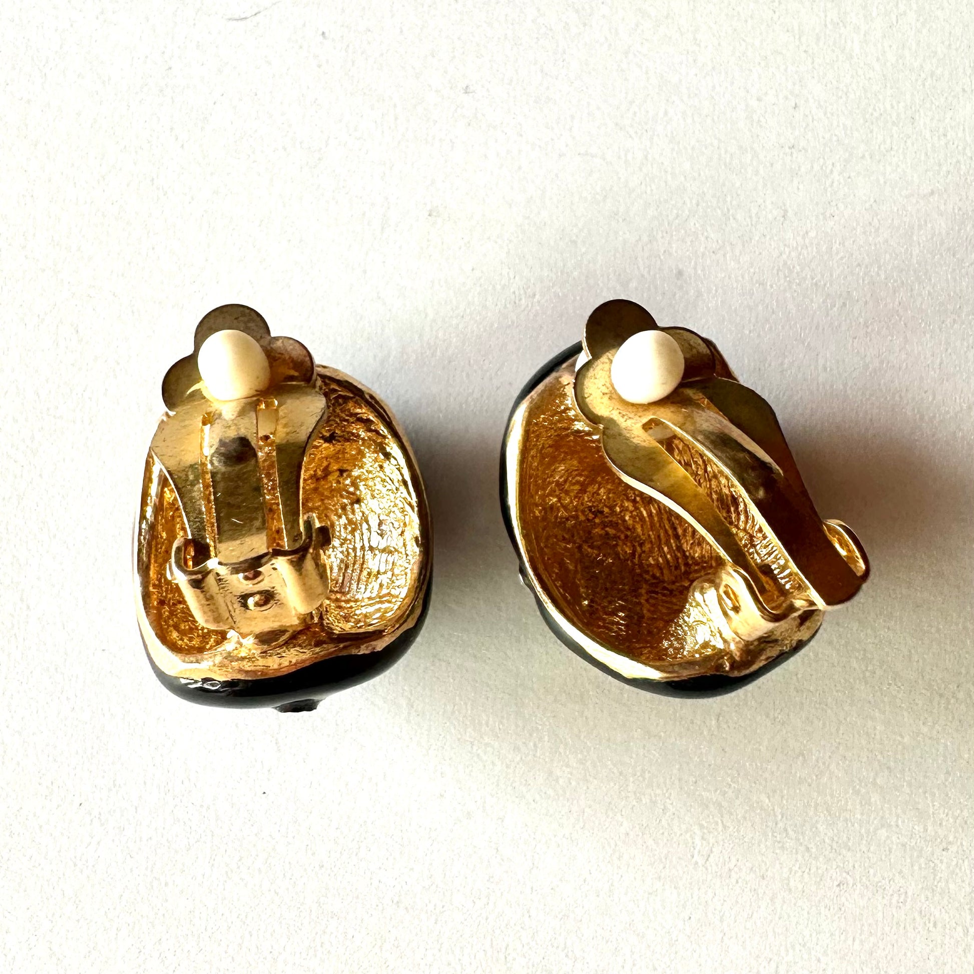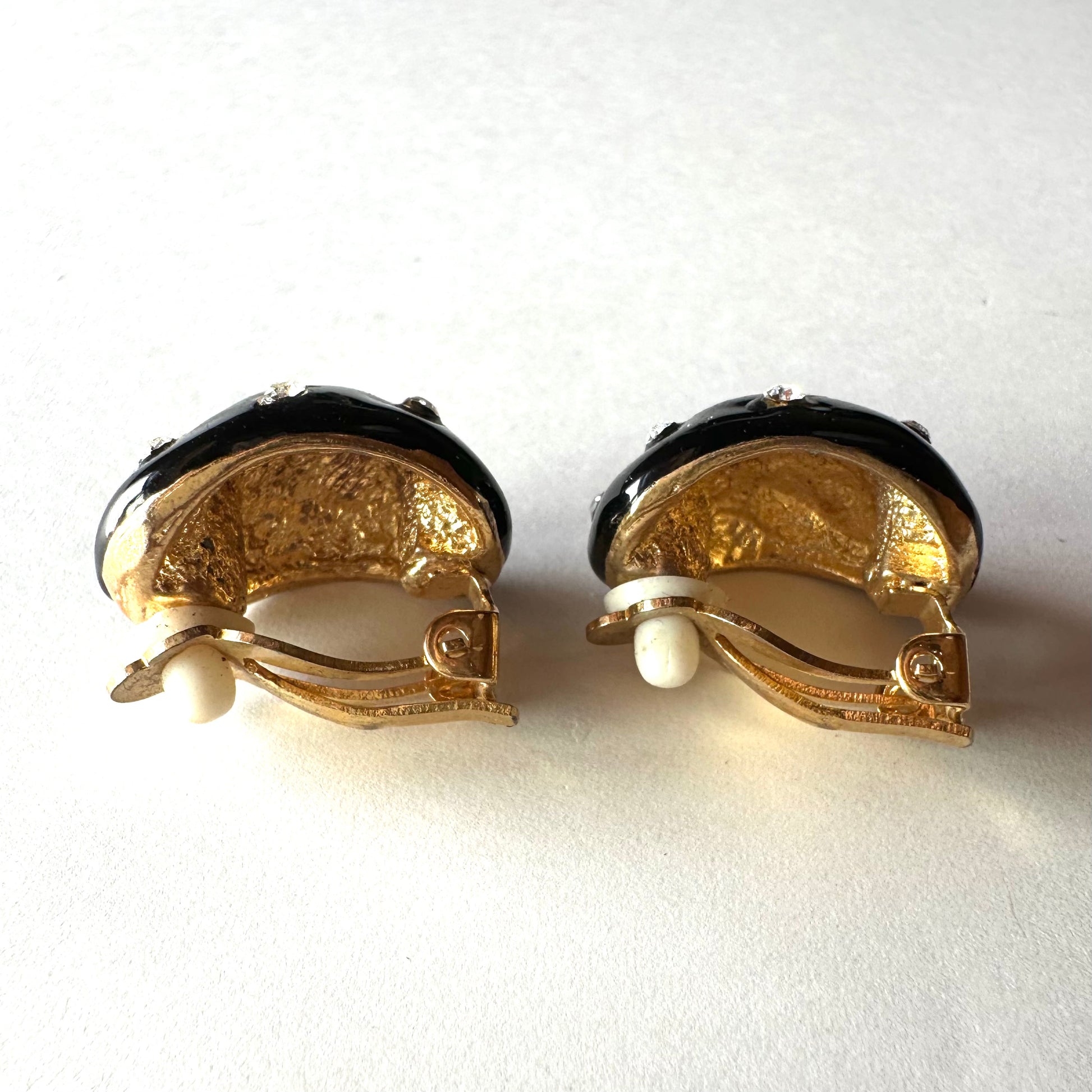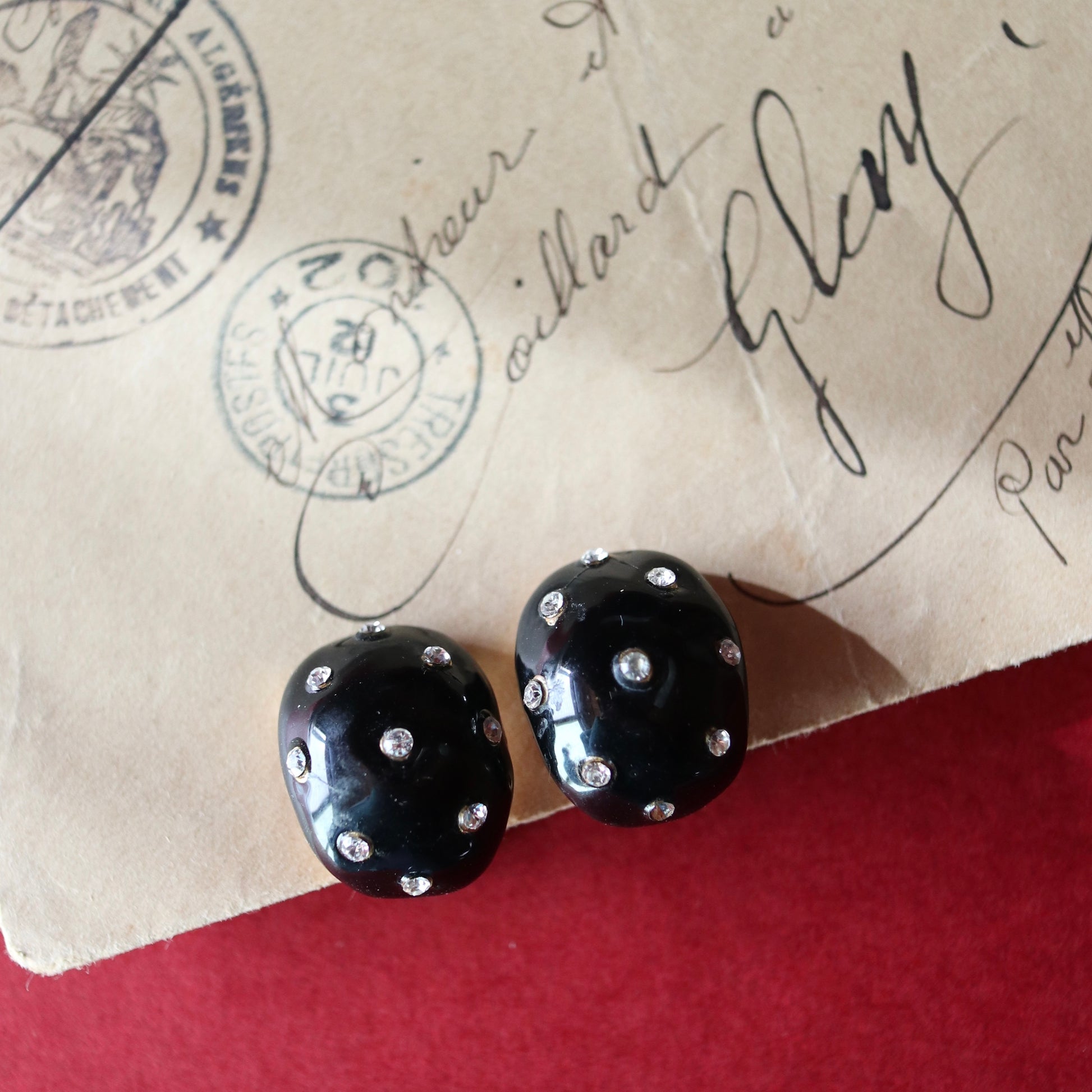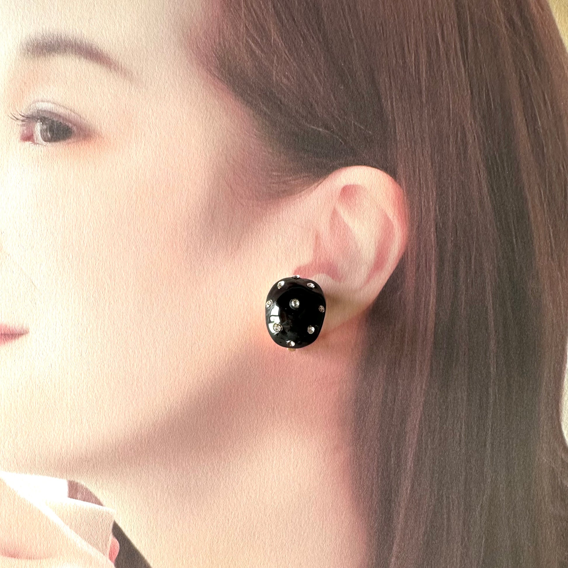 ブラックエナメル&クリアグラス クリップオンイヤリング