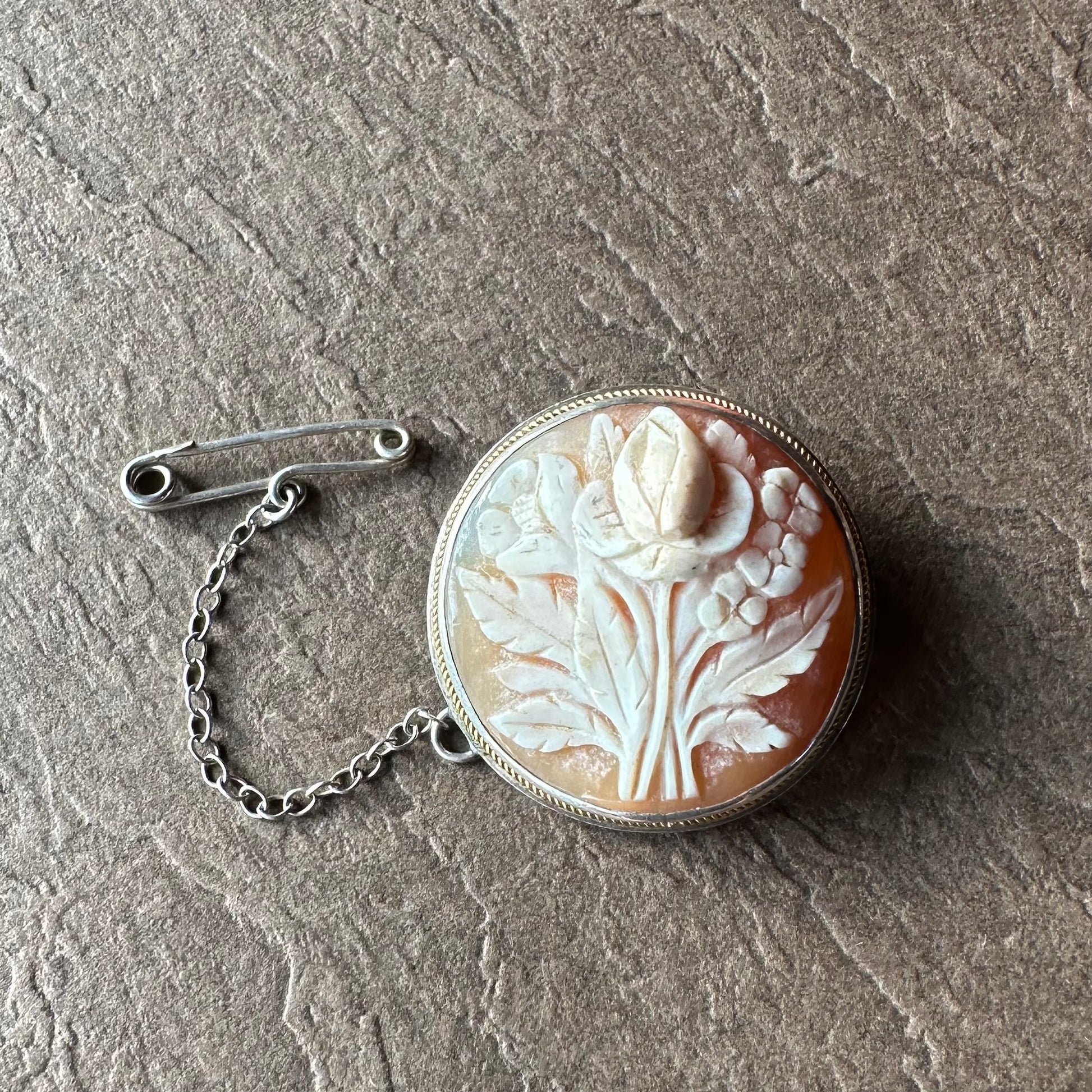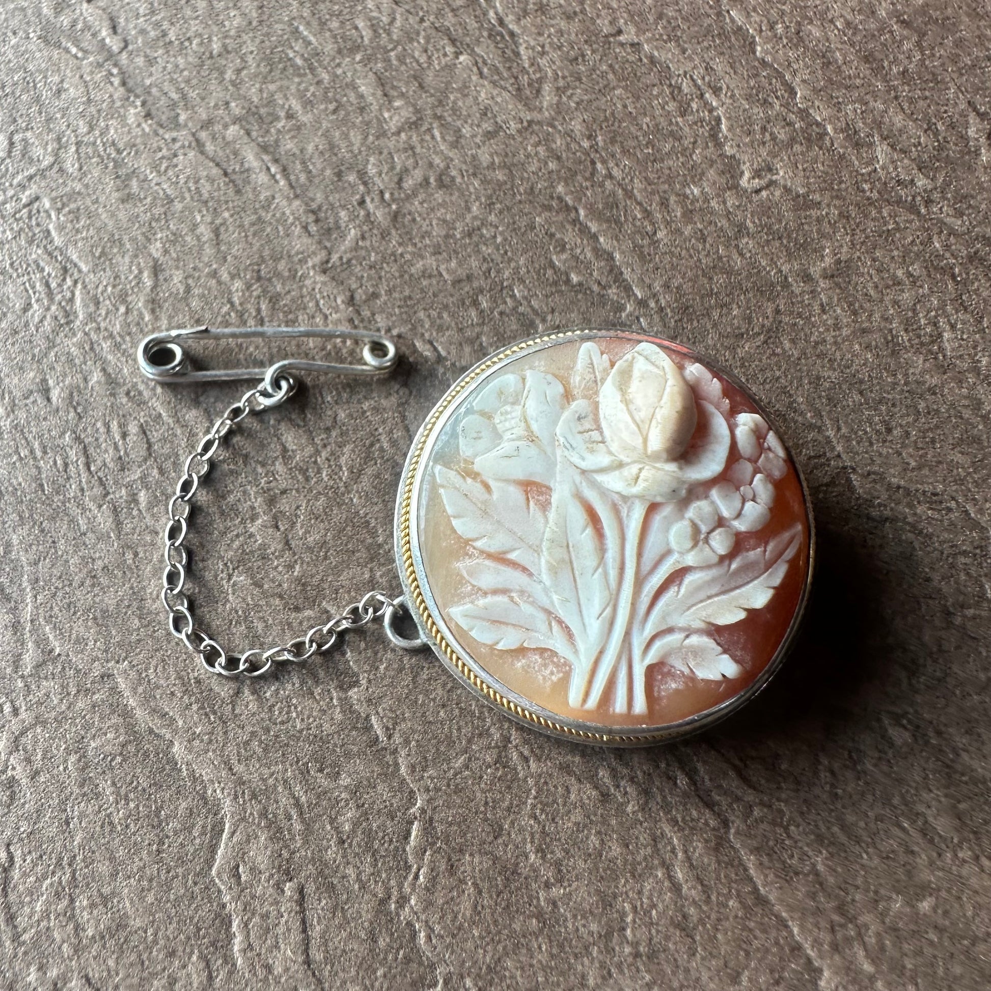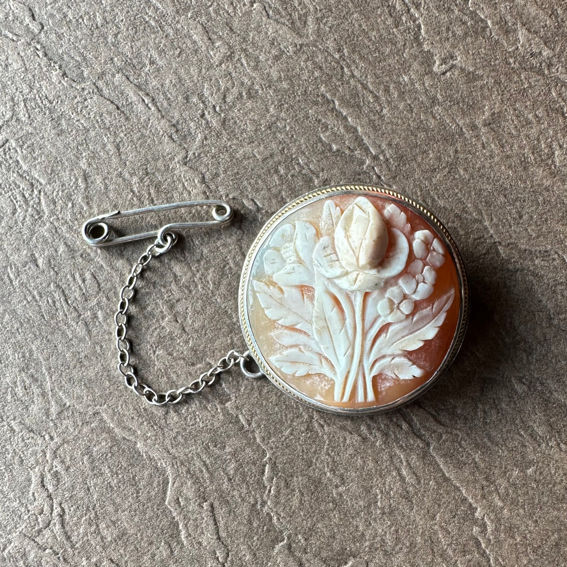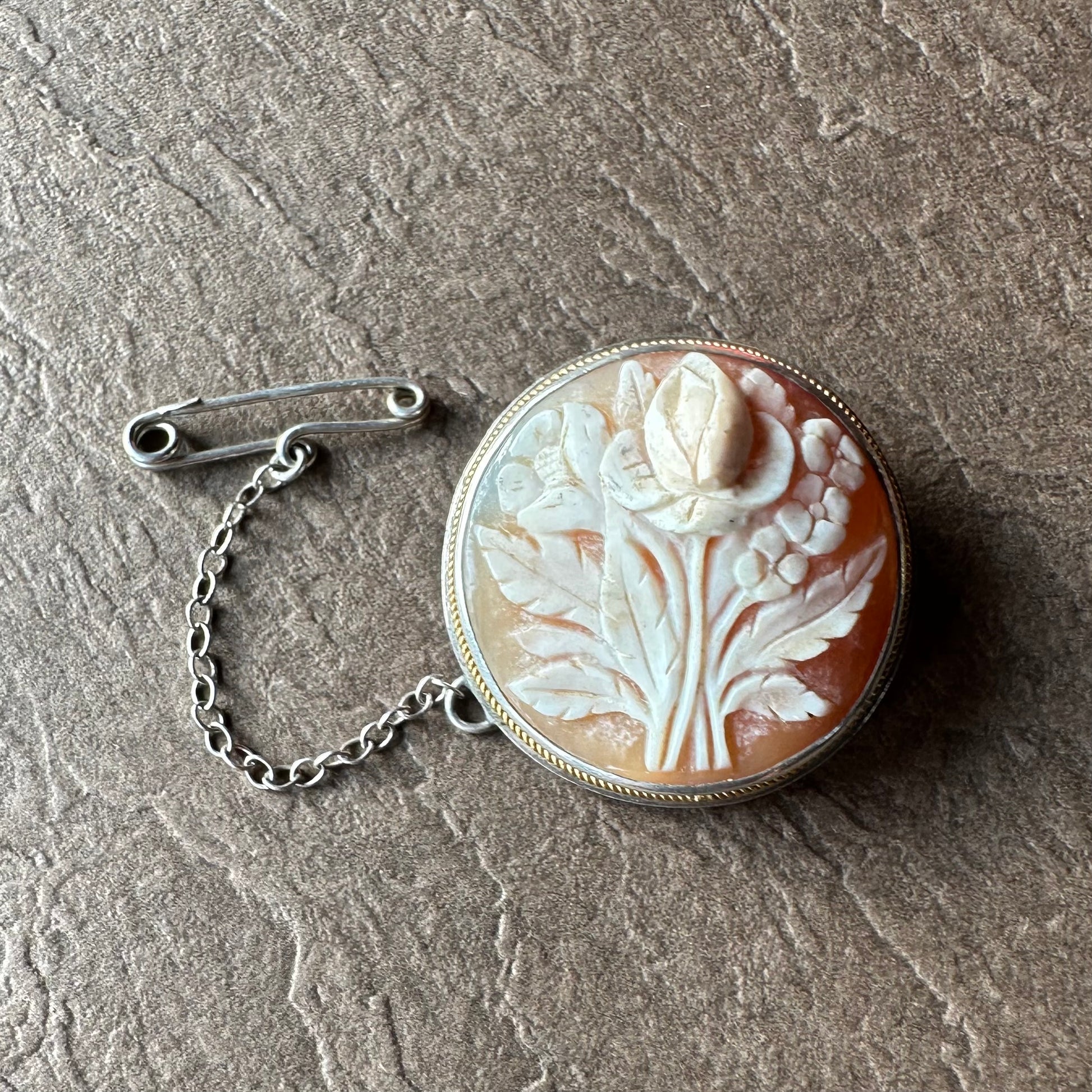 シェルカメオ ラウンド フラワーモチーフブローチ&ペンダントトップ