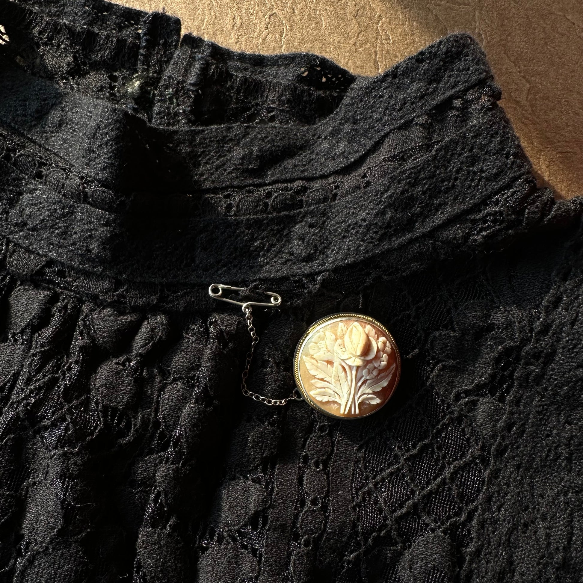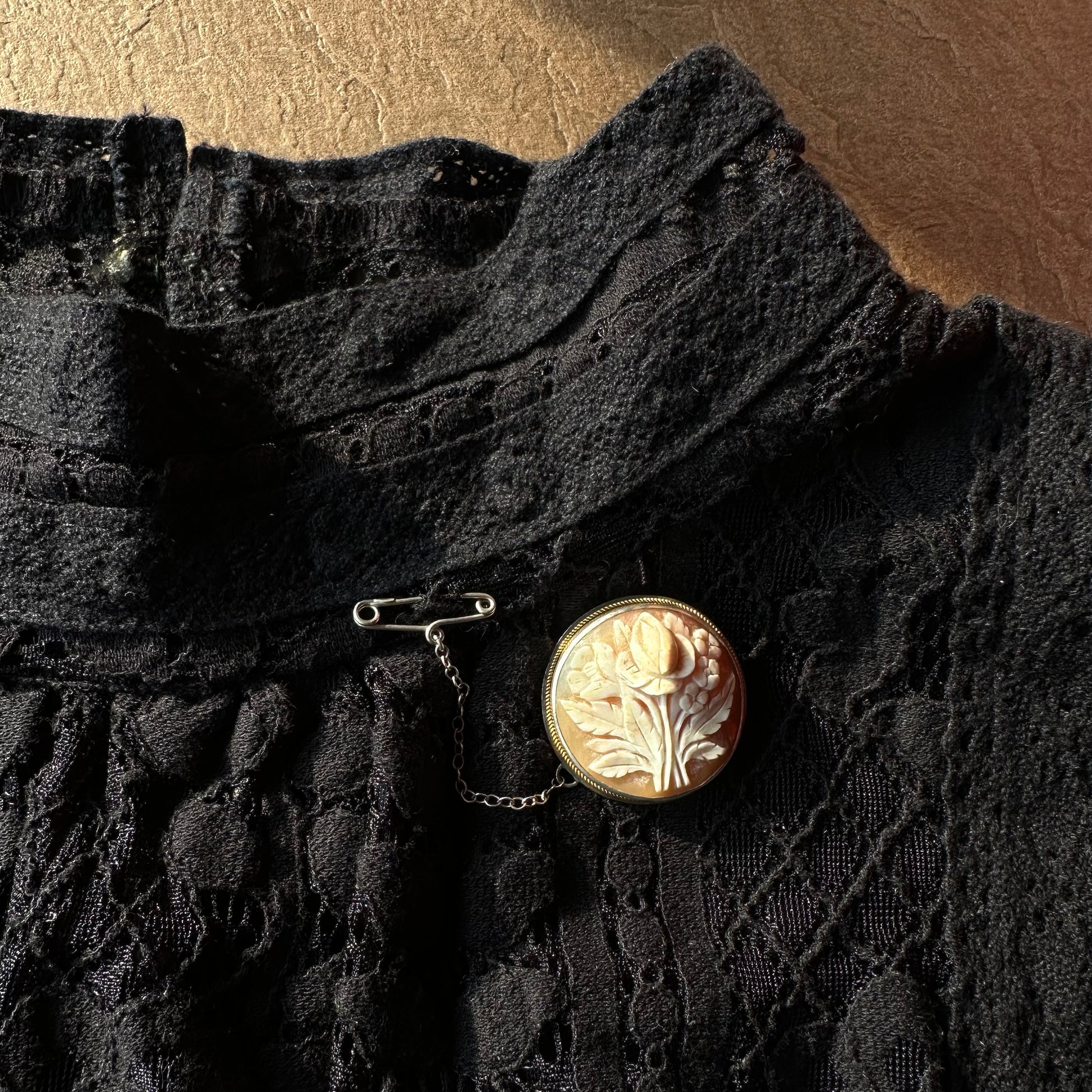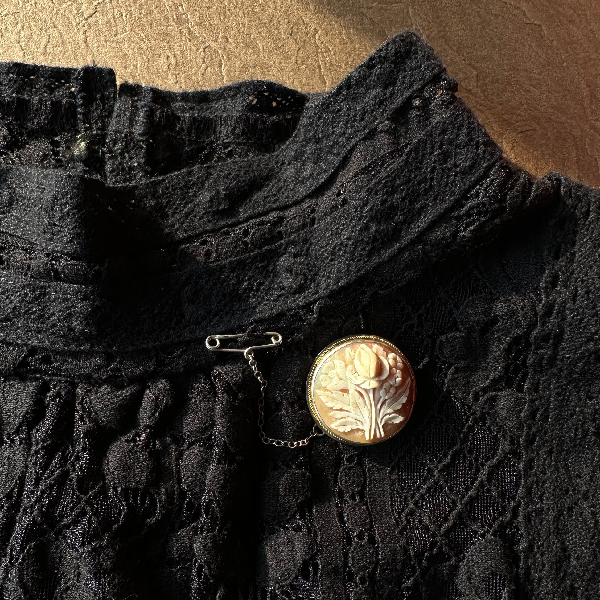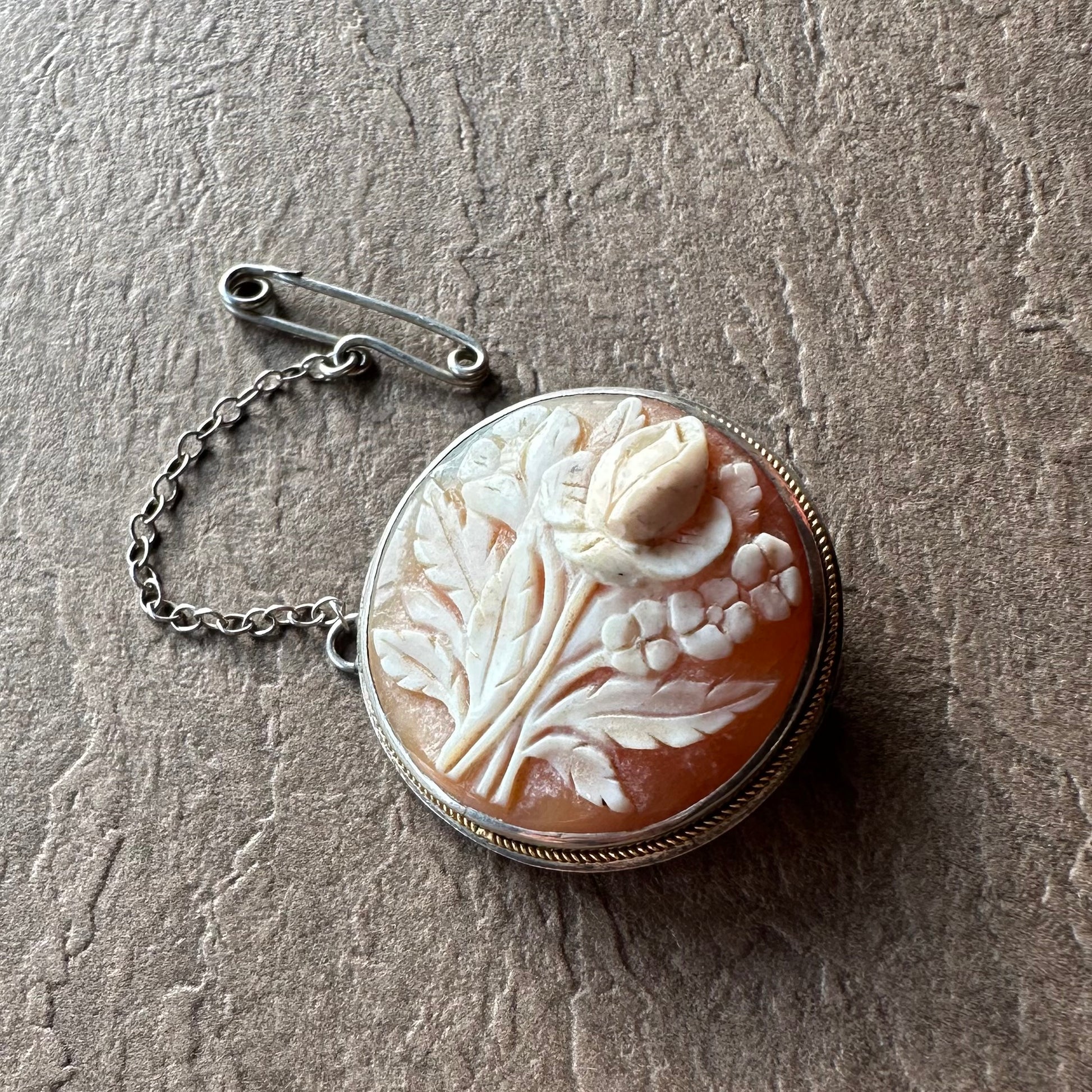 シェルカメオ ラウンド フラワーモチーフブローチ&ペンダントトップ