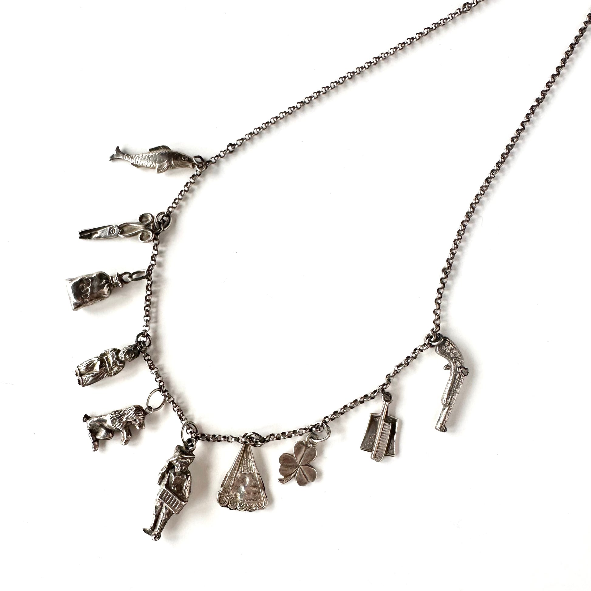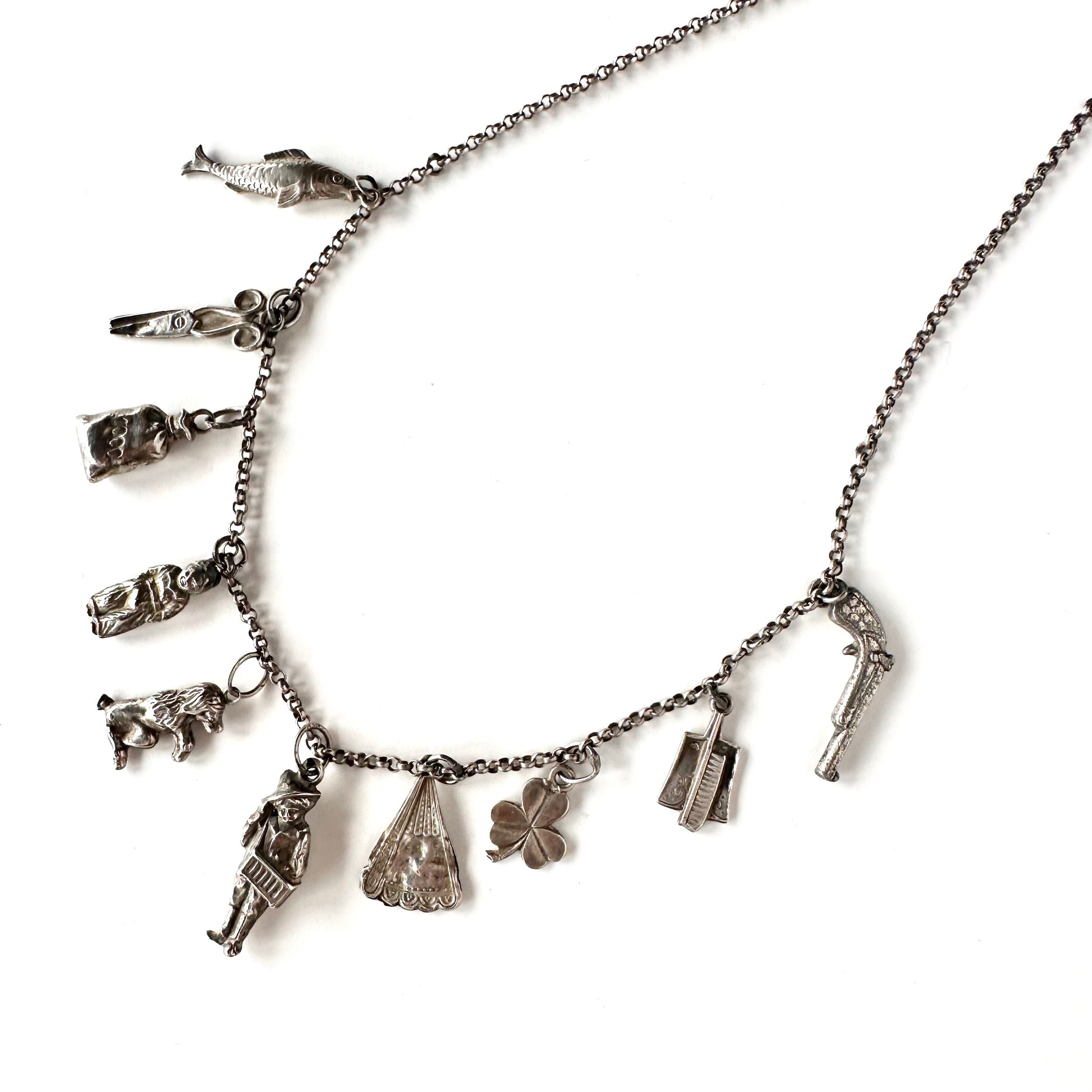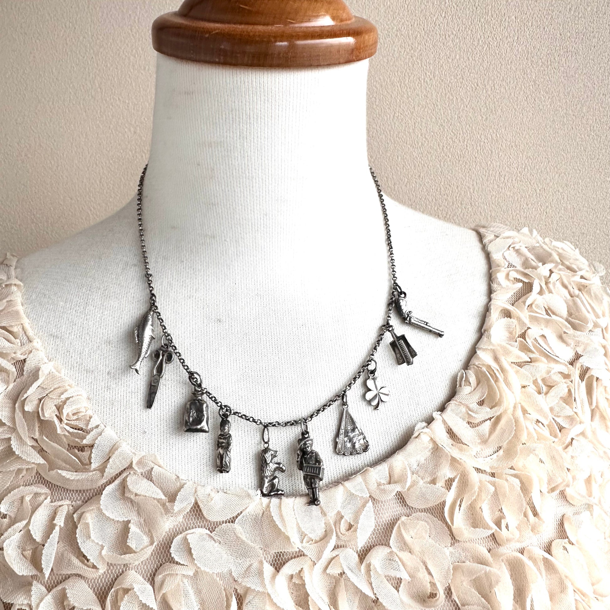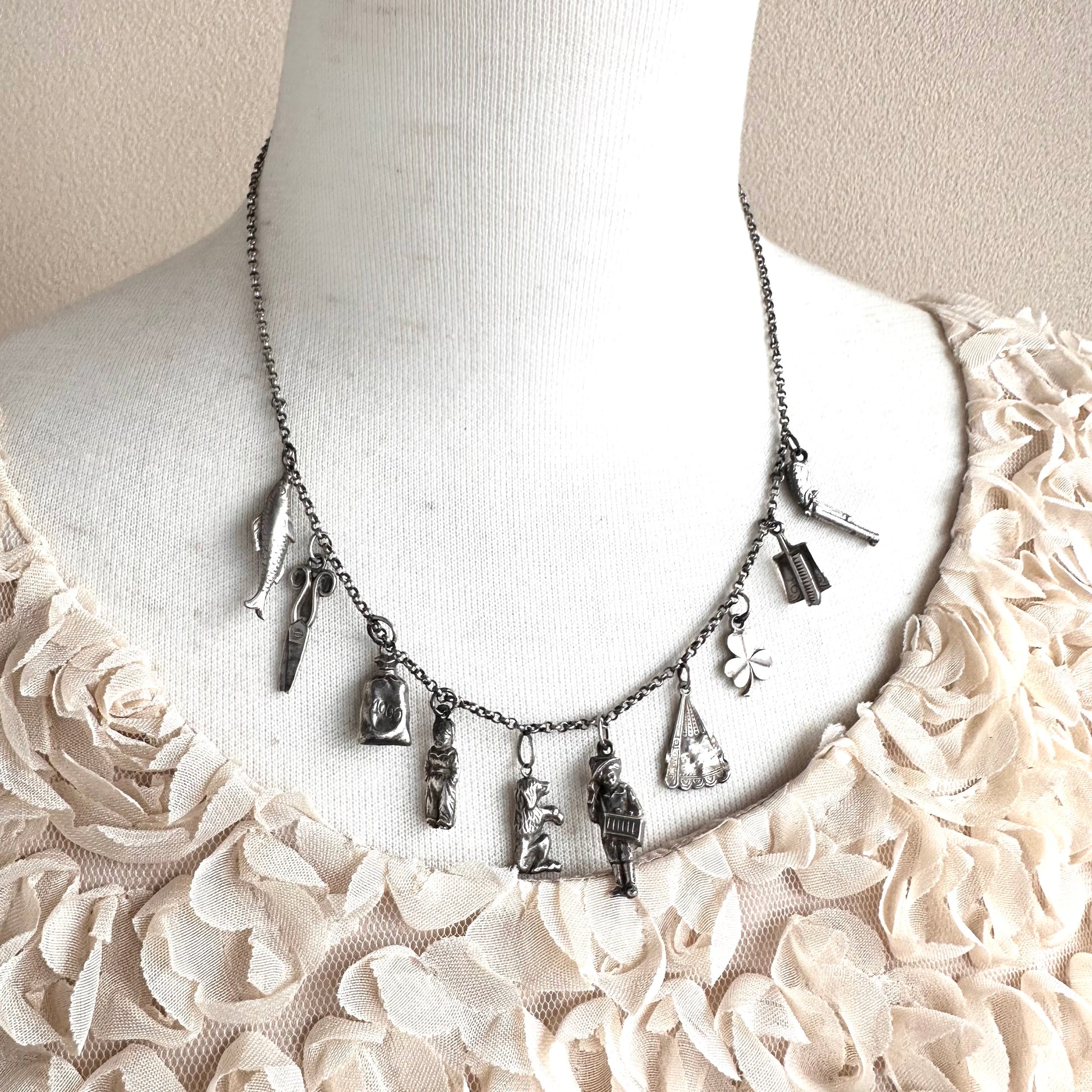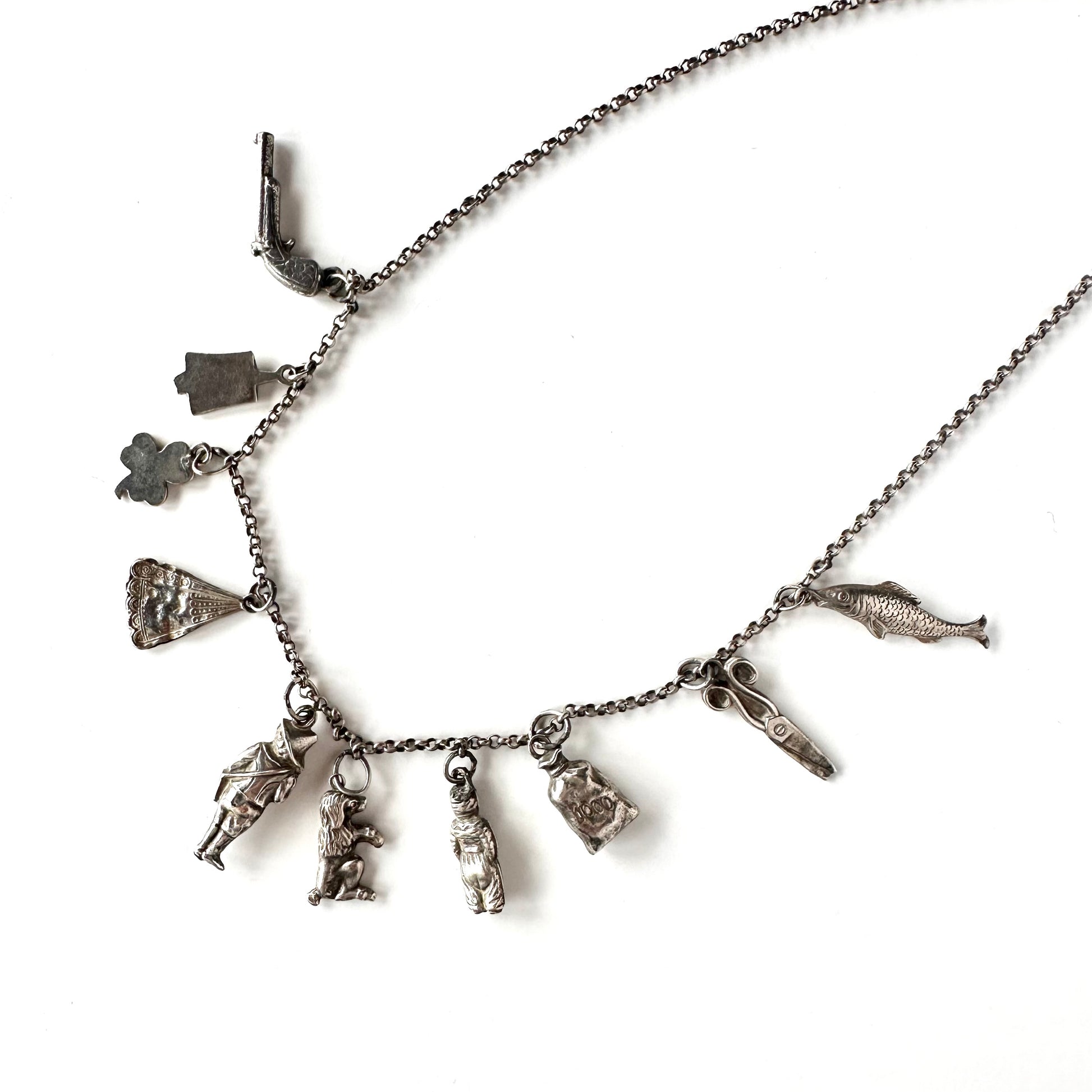 10点のチャームをコレクションした、ロロリンクチェーンのシルバーネックレス。