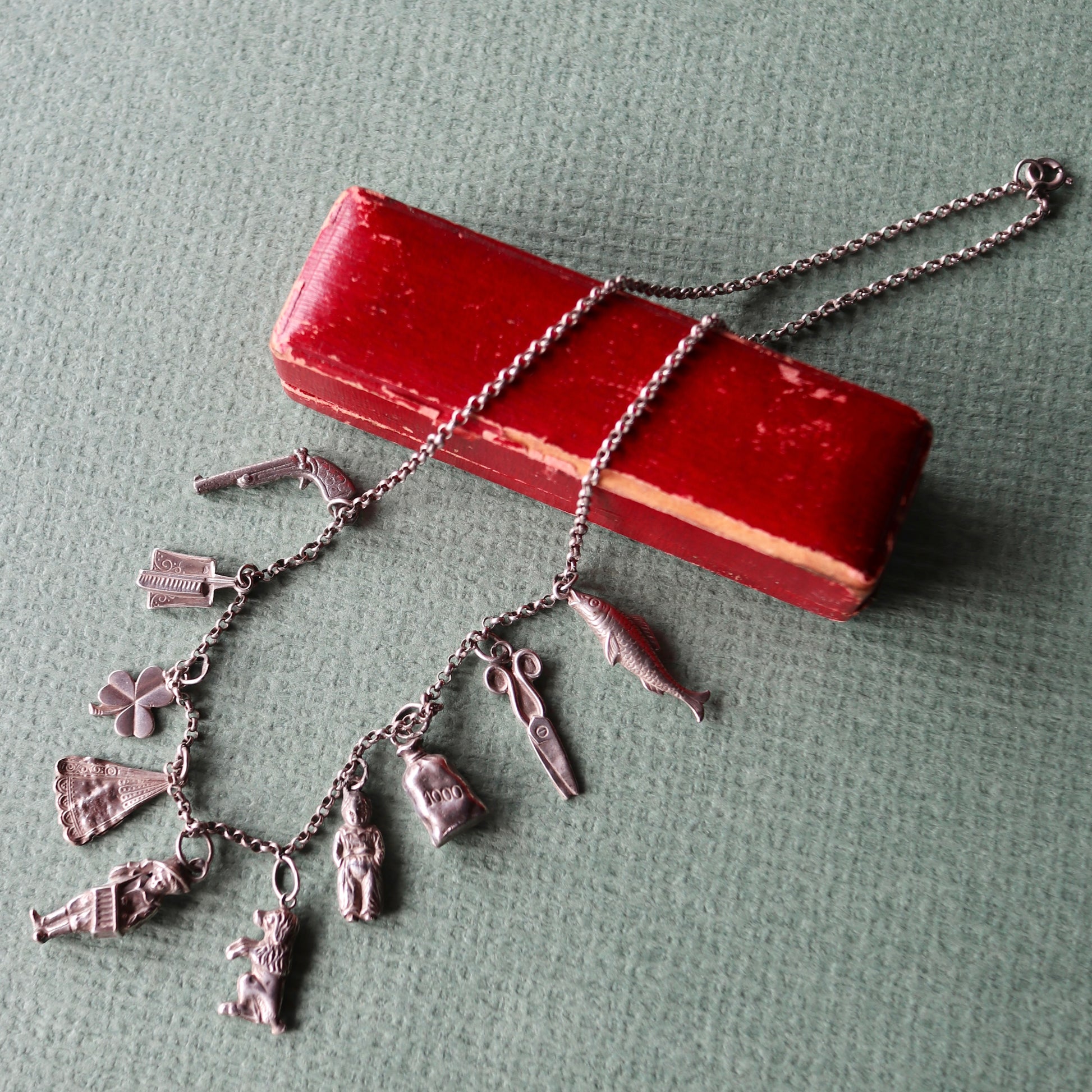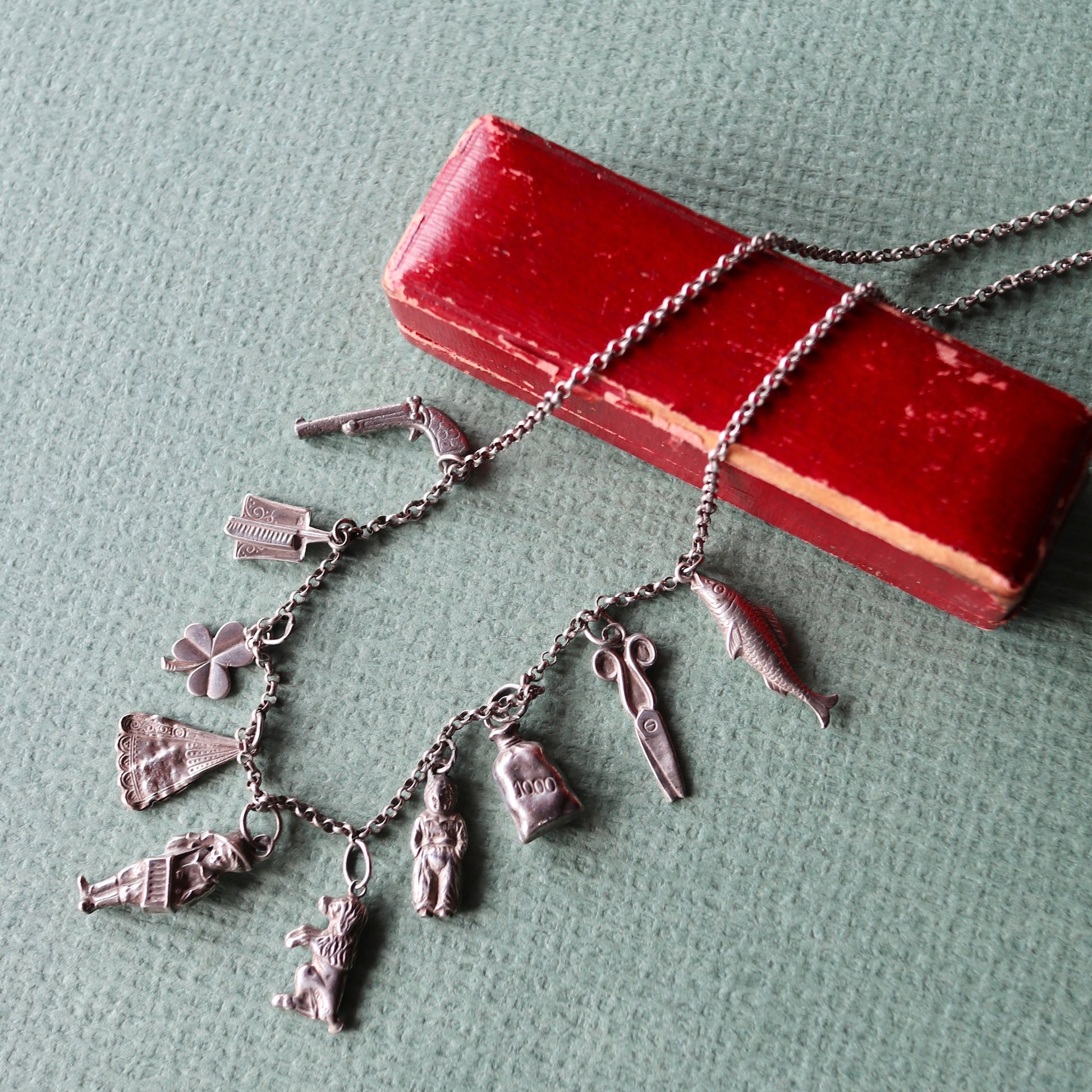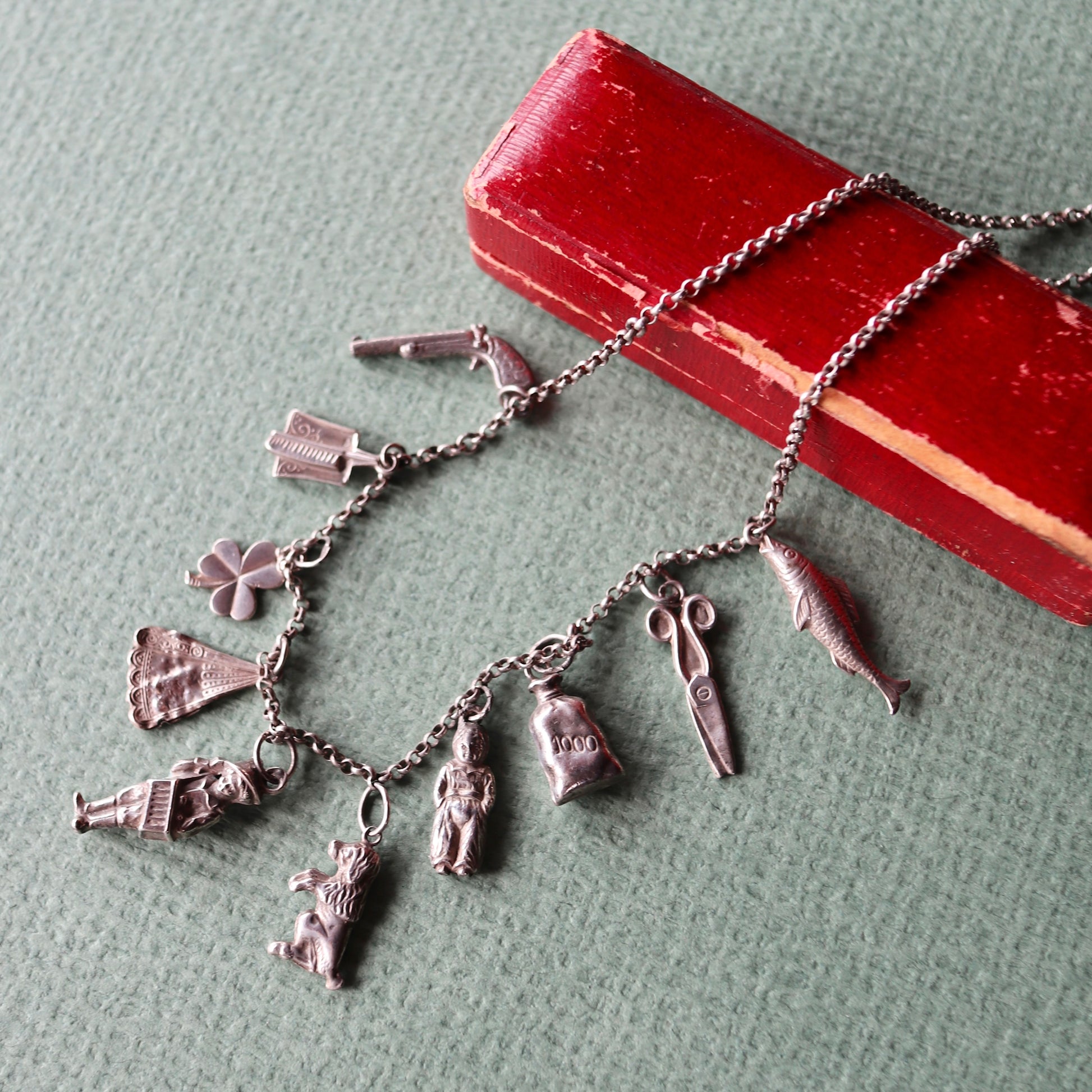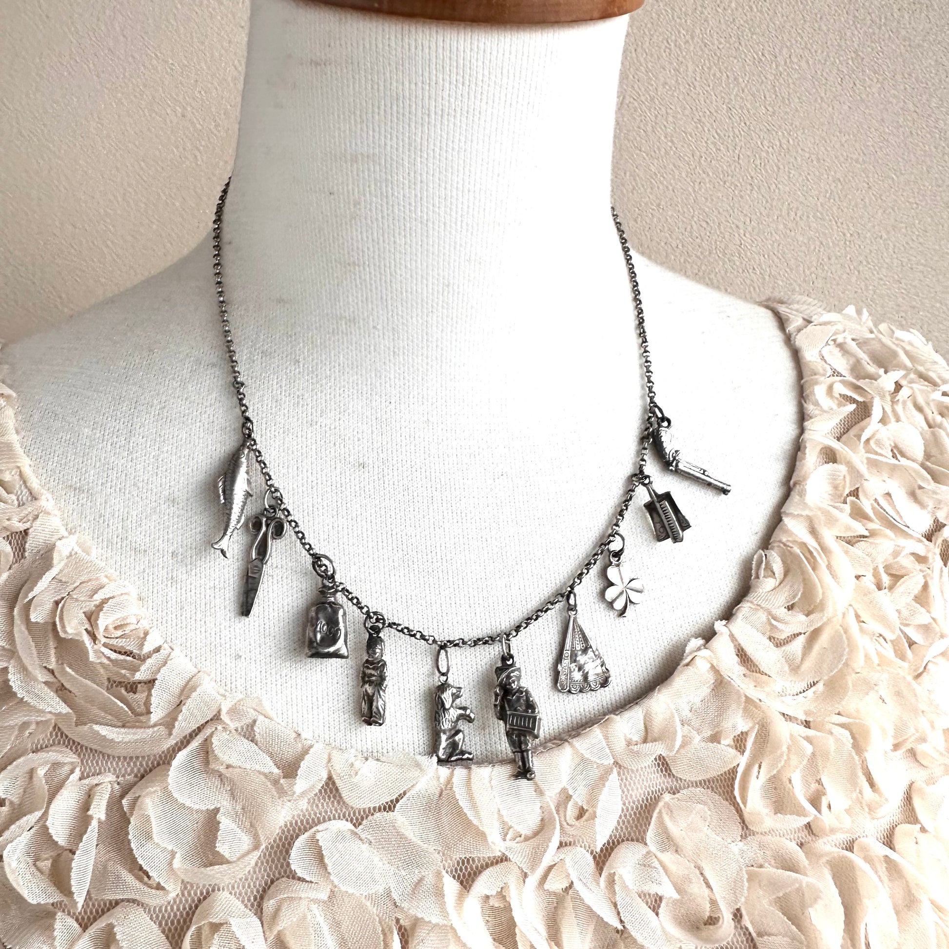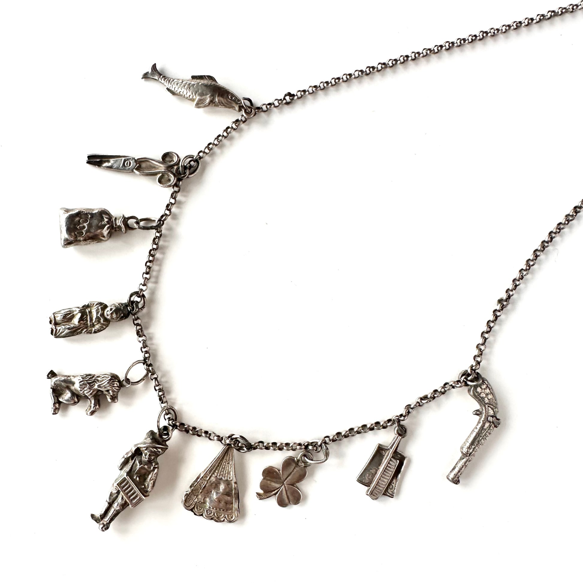 10点のチャームをコレクションした、ロロリンクチェーンのシルバーネックレス。
