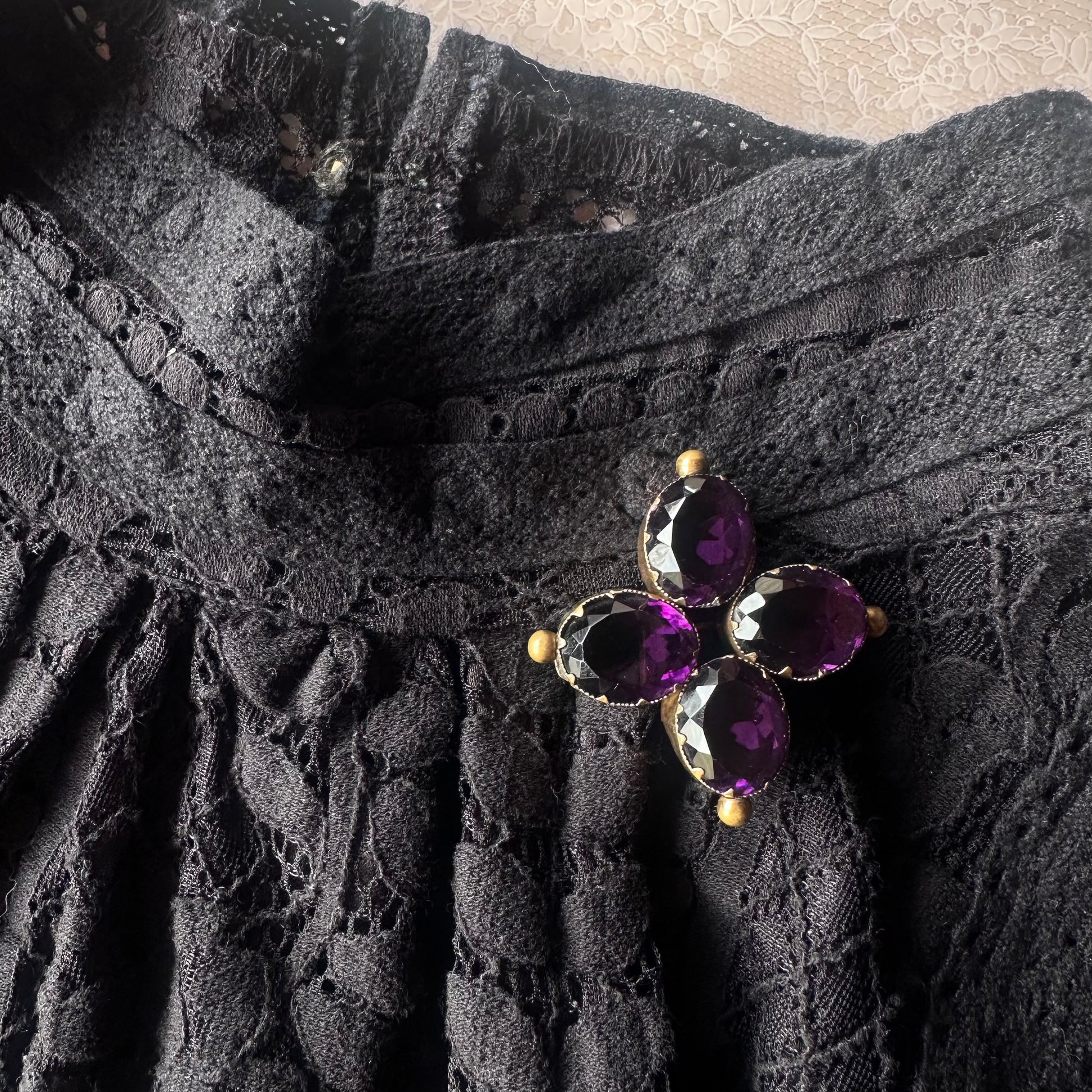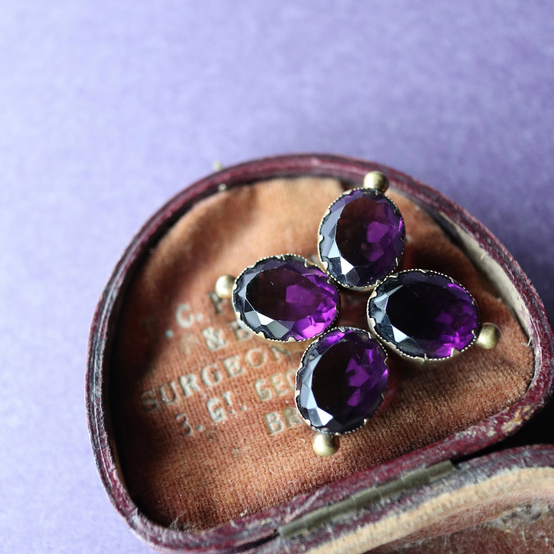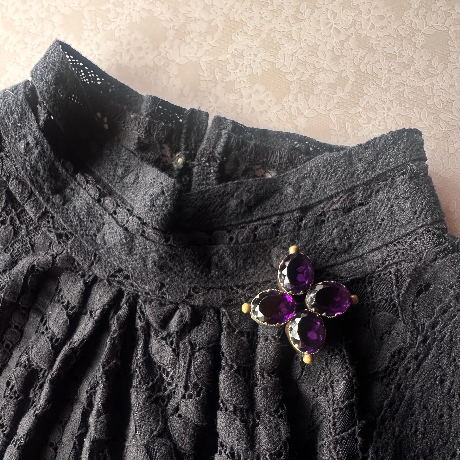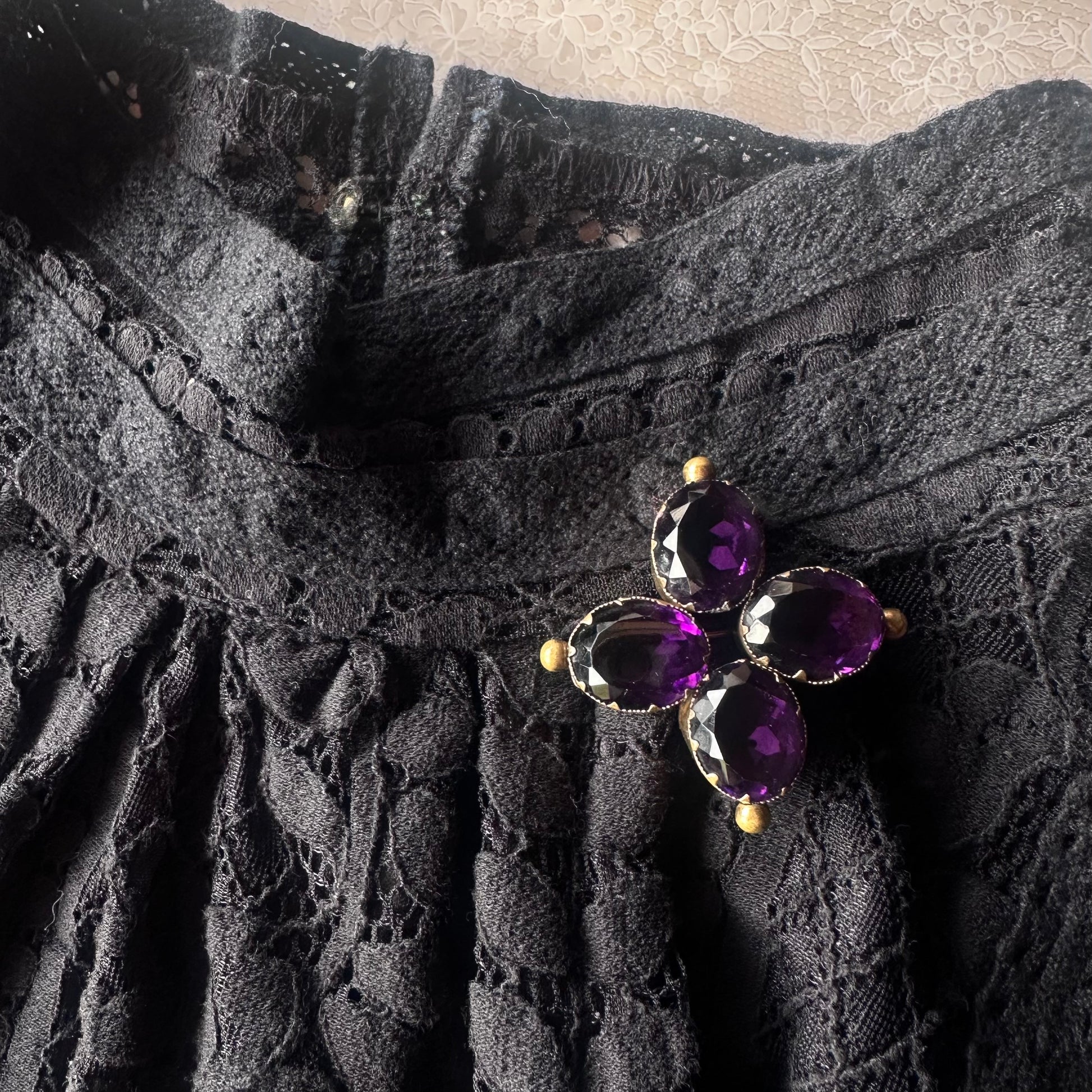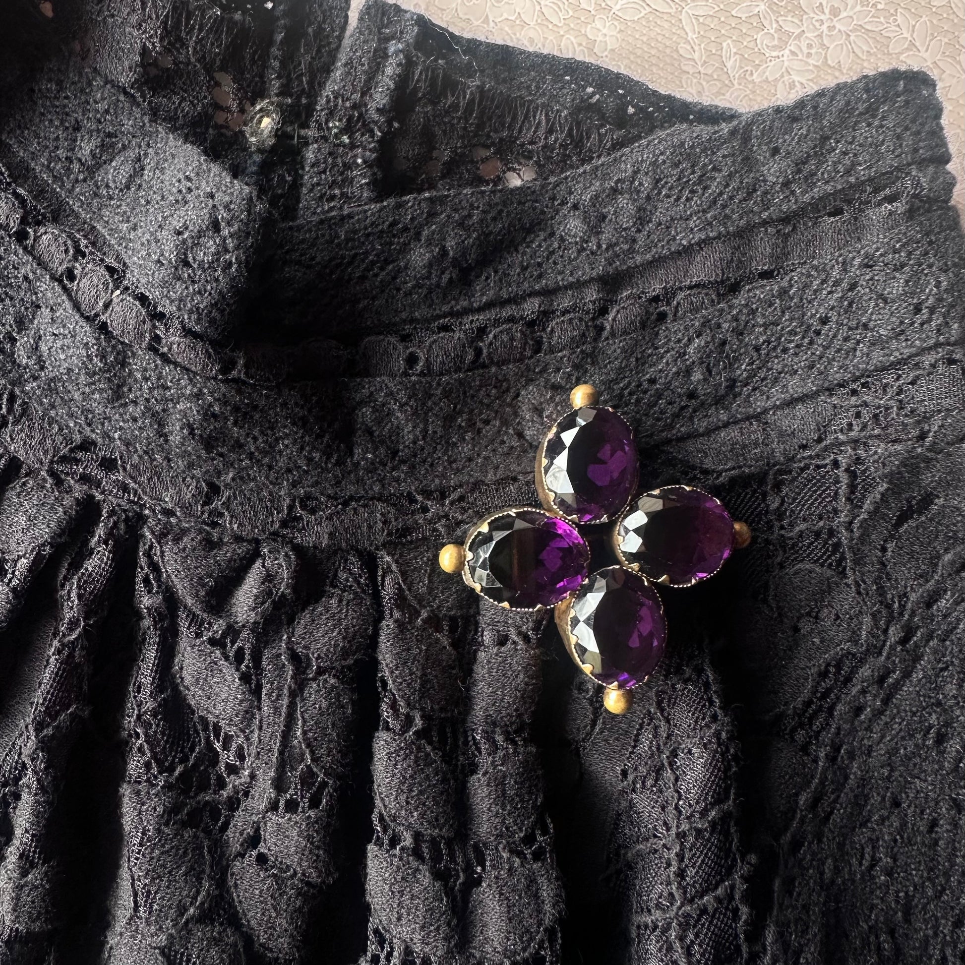 ヴィクトリアン アメジストカラーグラス ブローチ