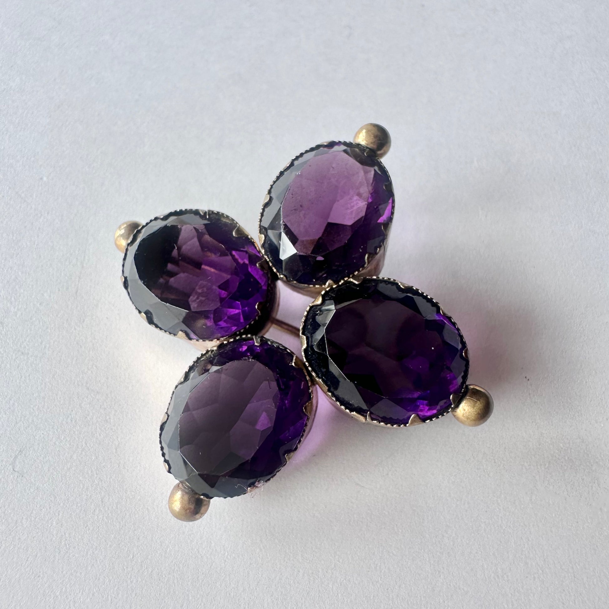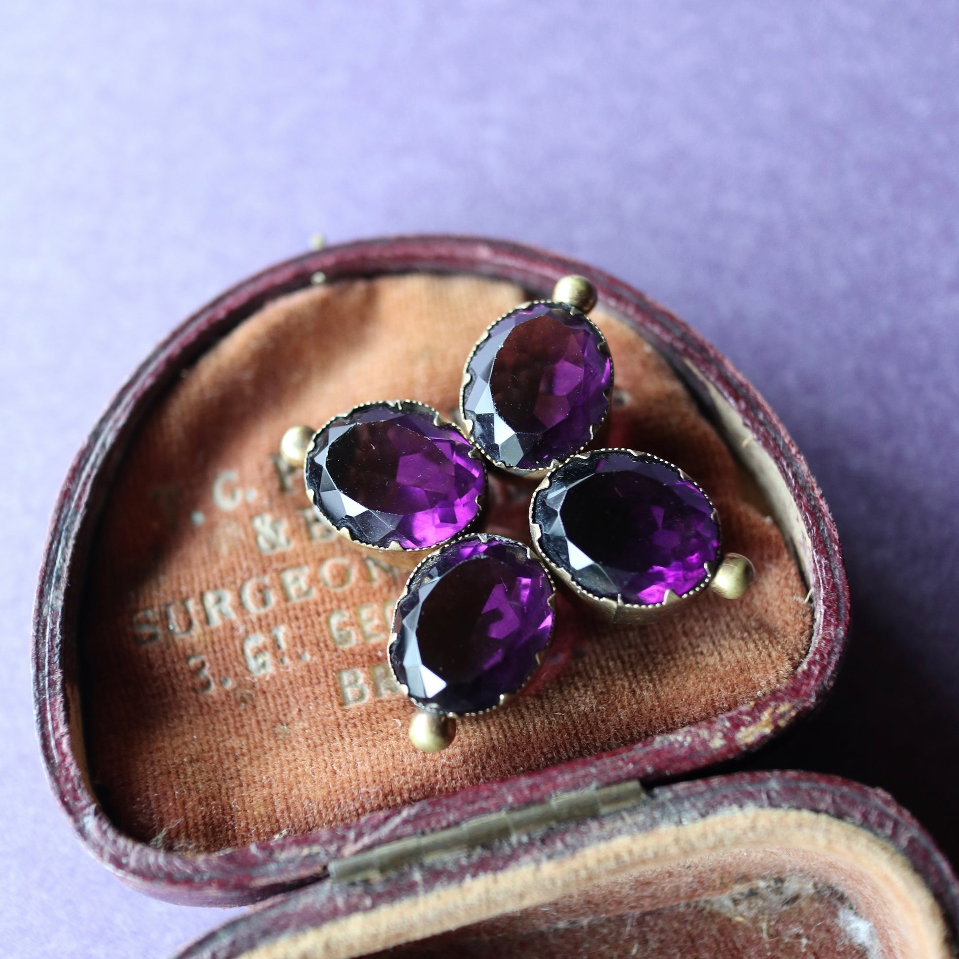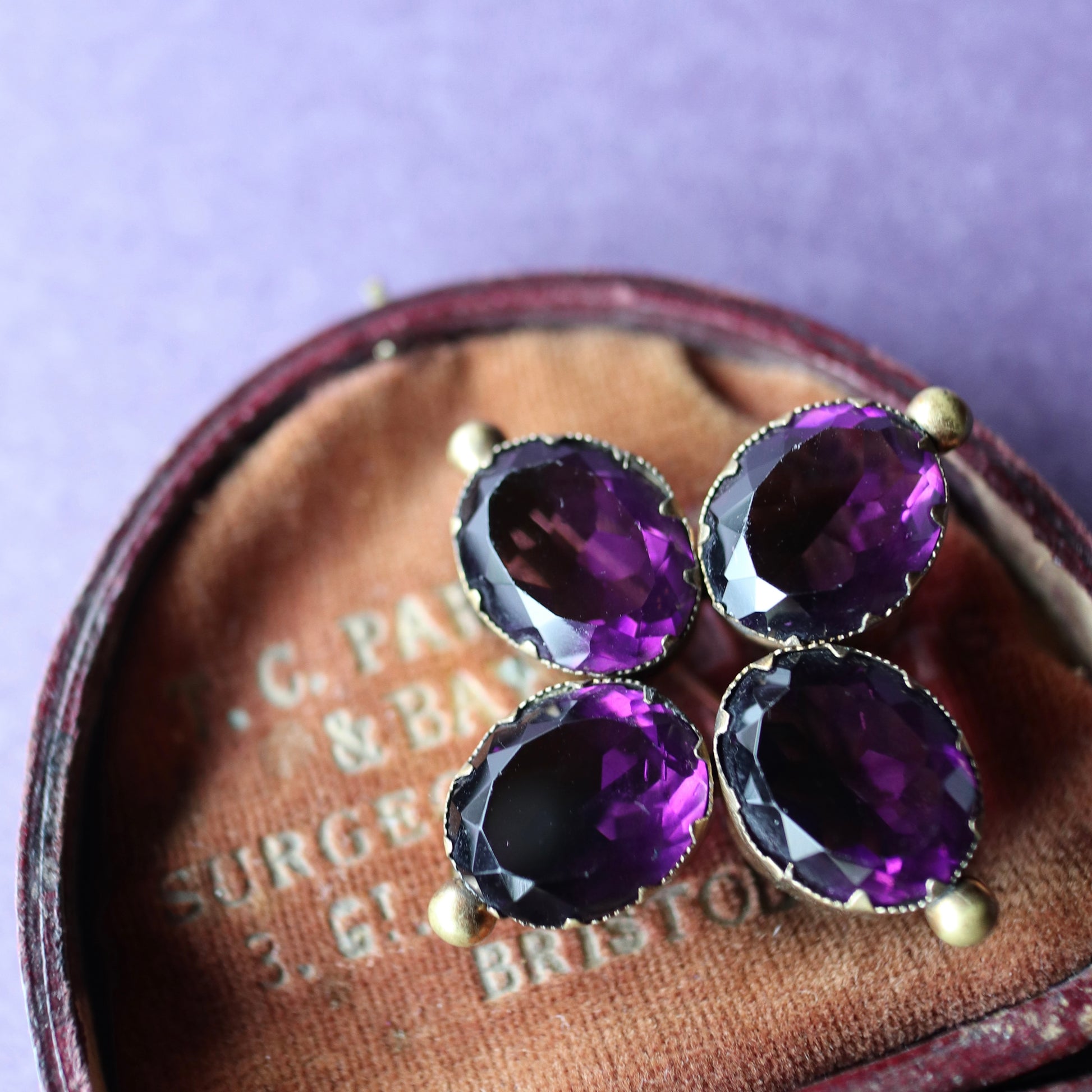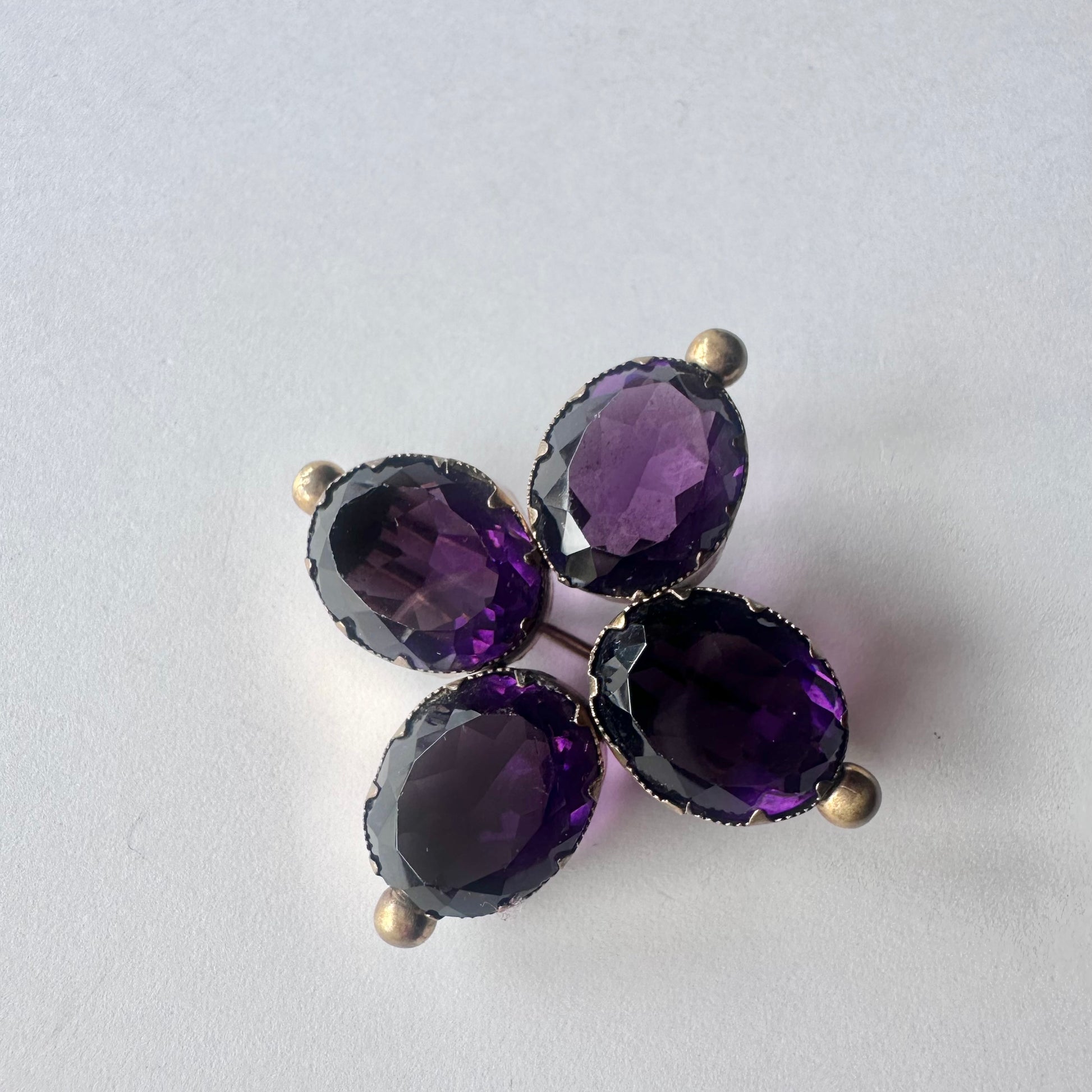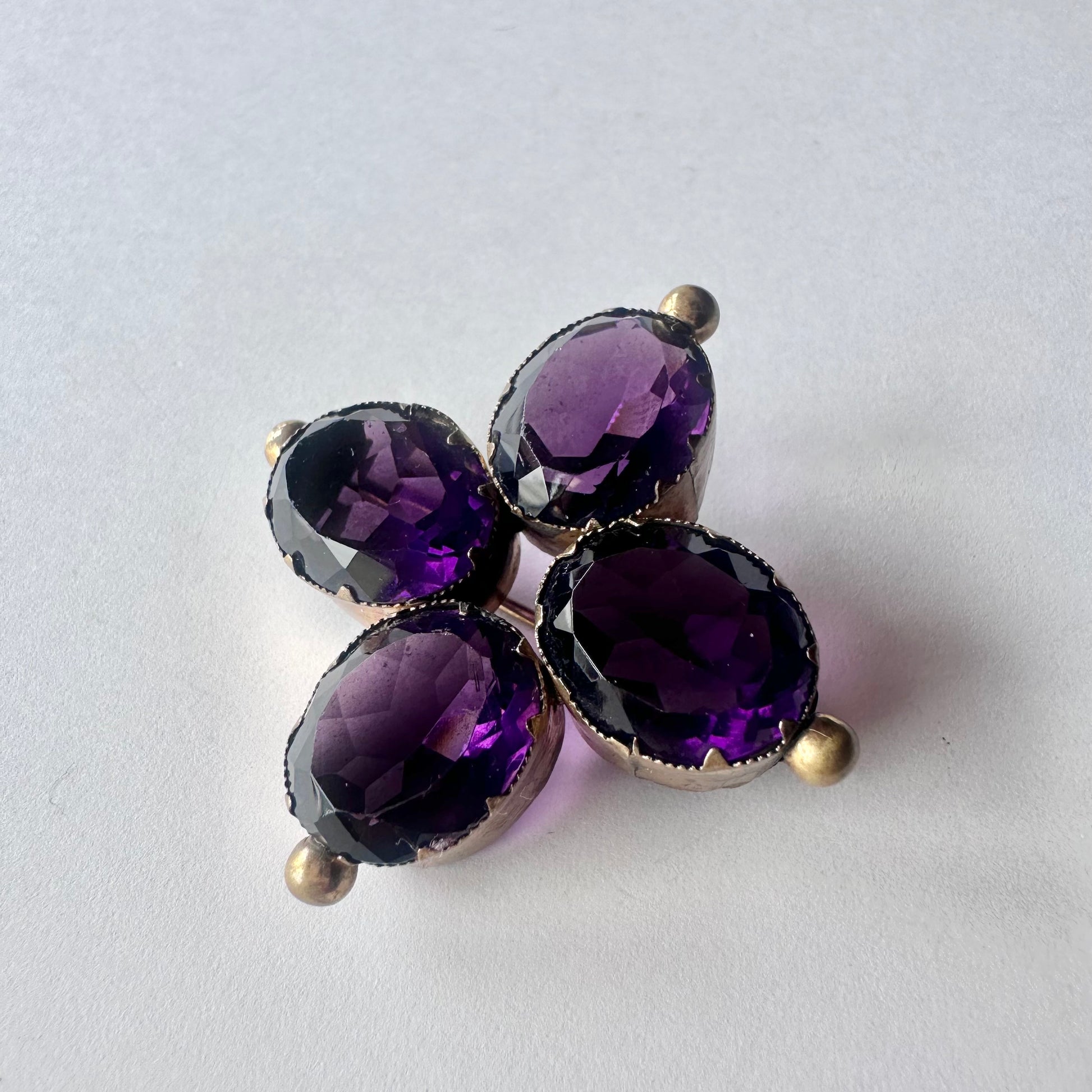 ヴィクトリアン アメジストカラーグラス ブローチ