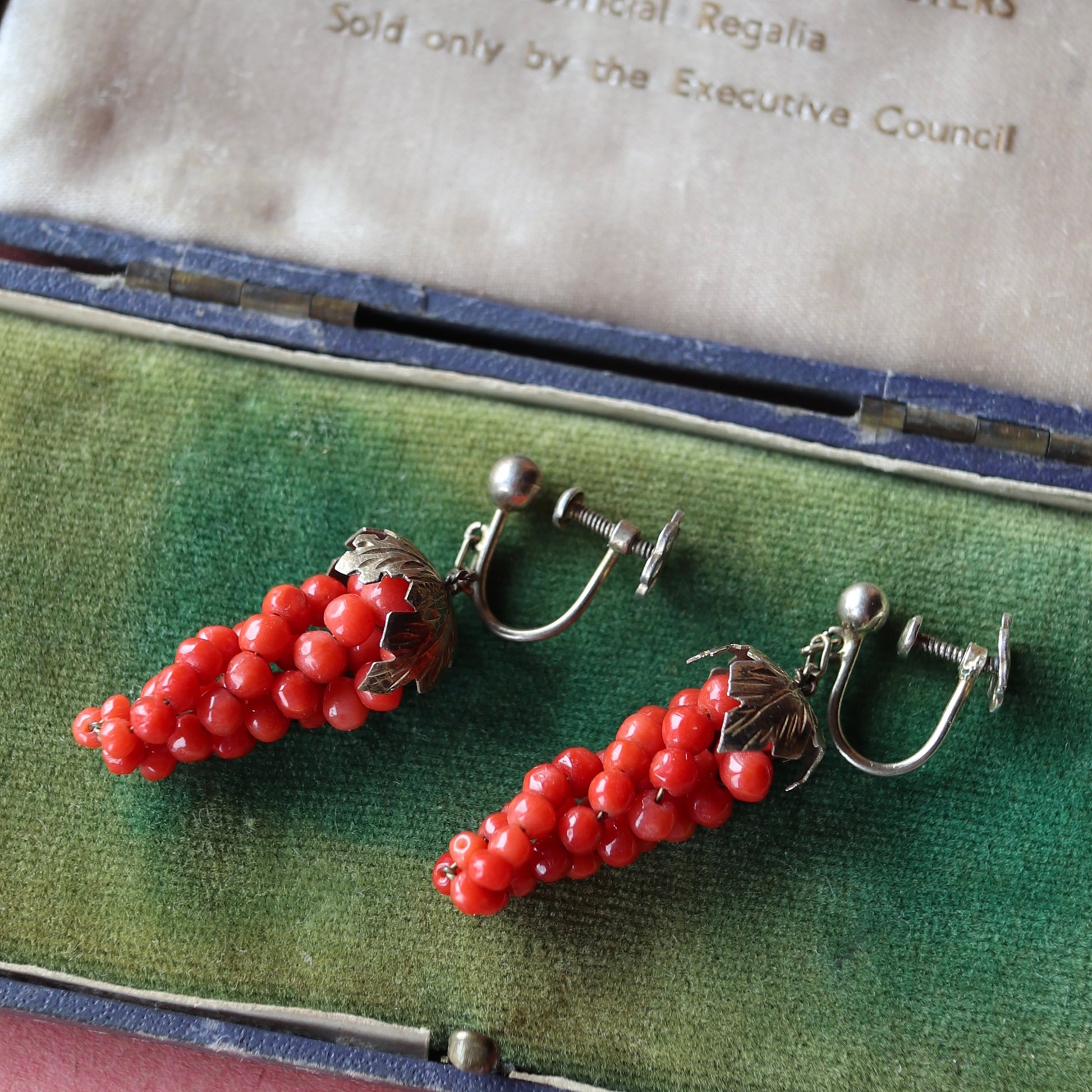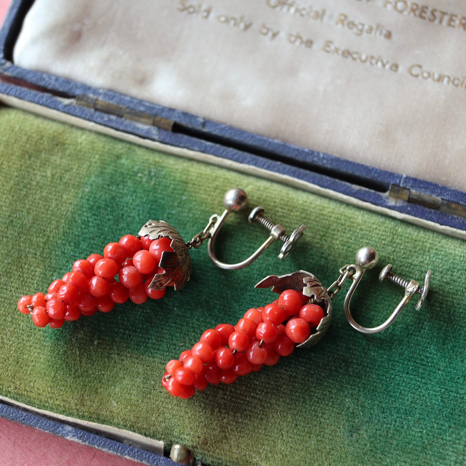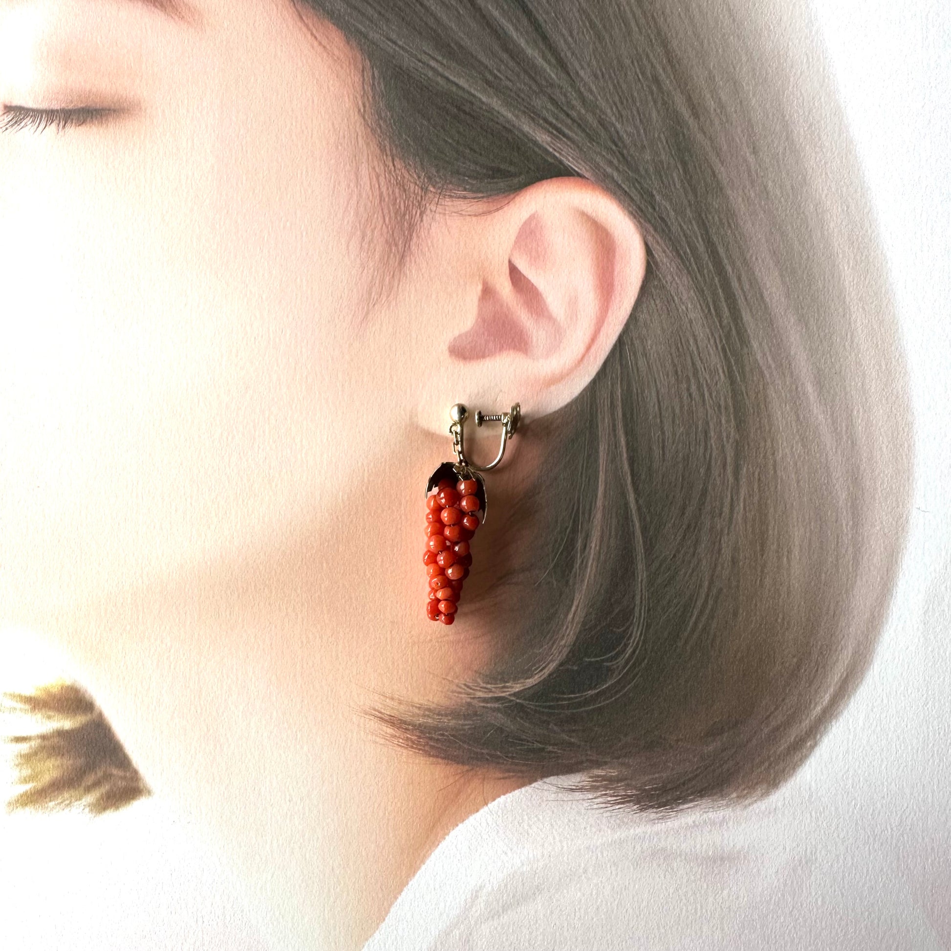 アンティークコーラル ぶどう イヤリング(鑑別書付)