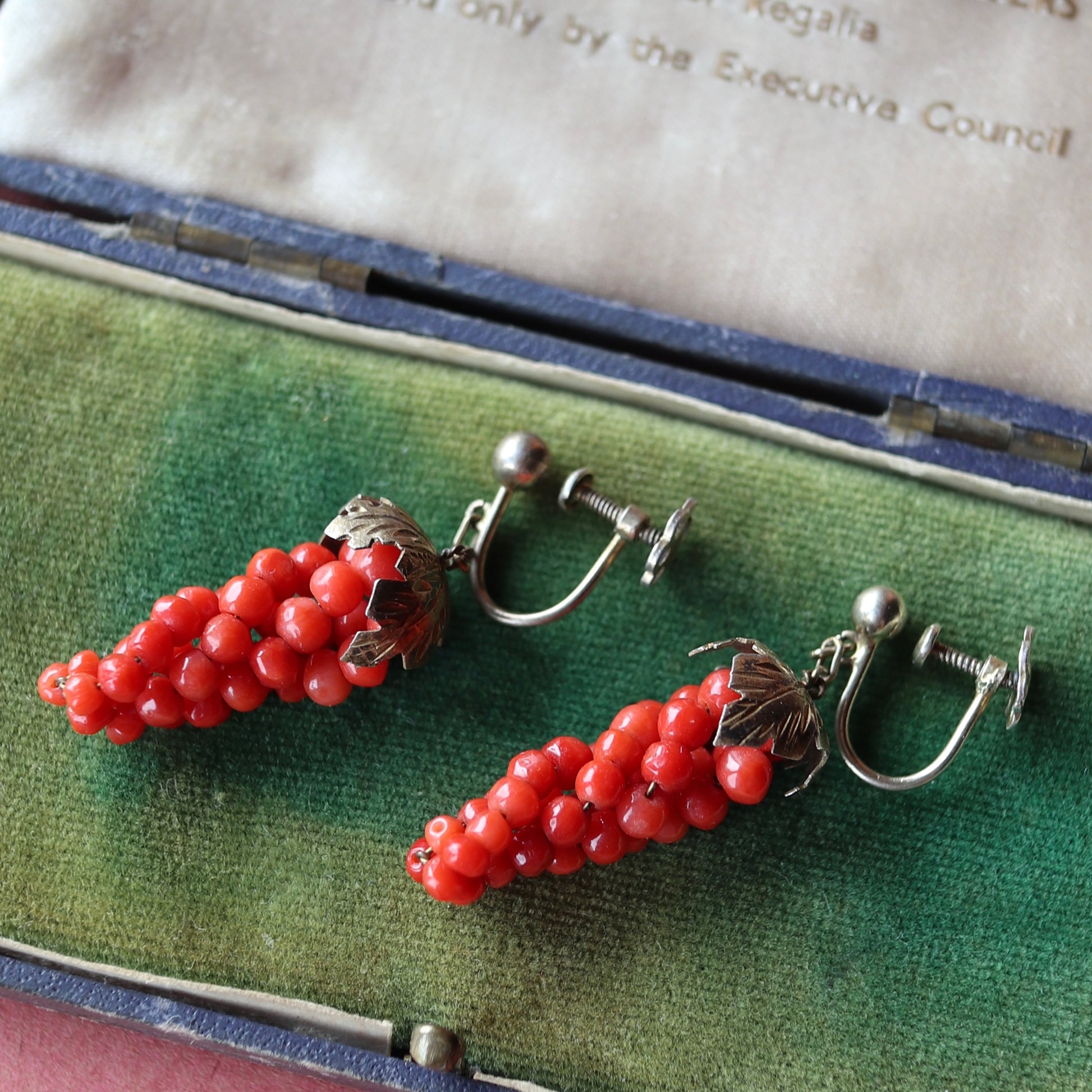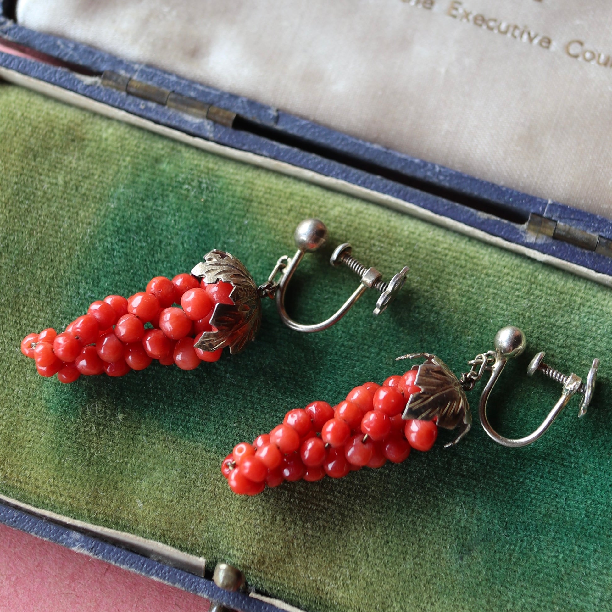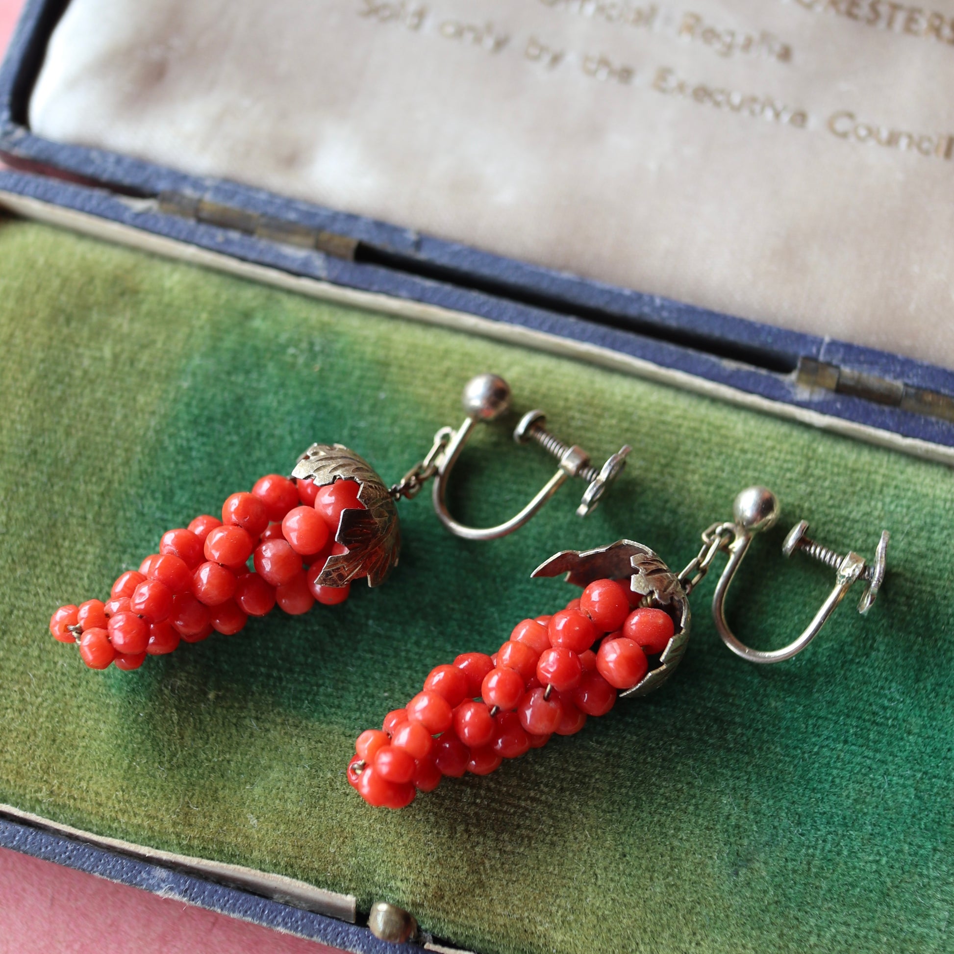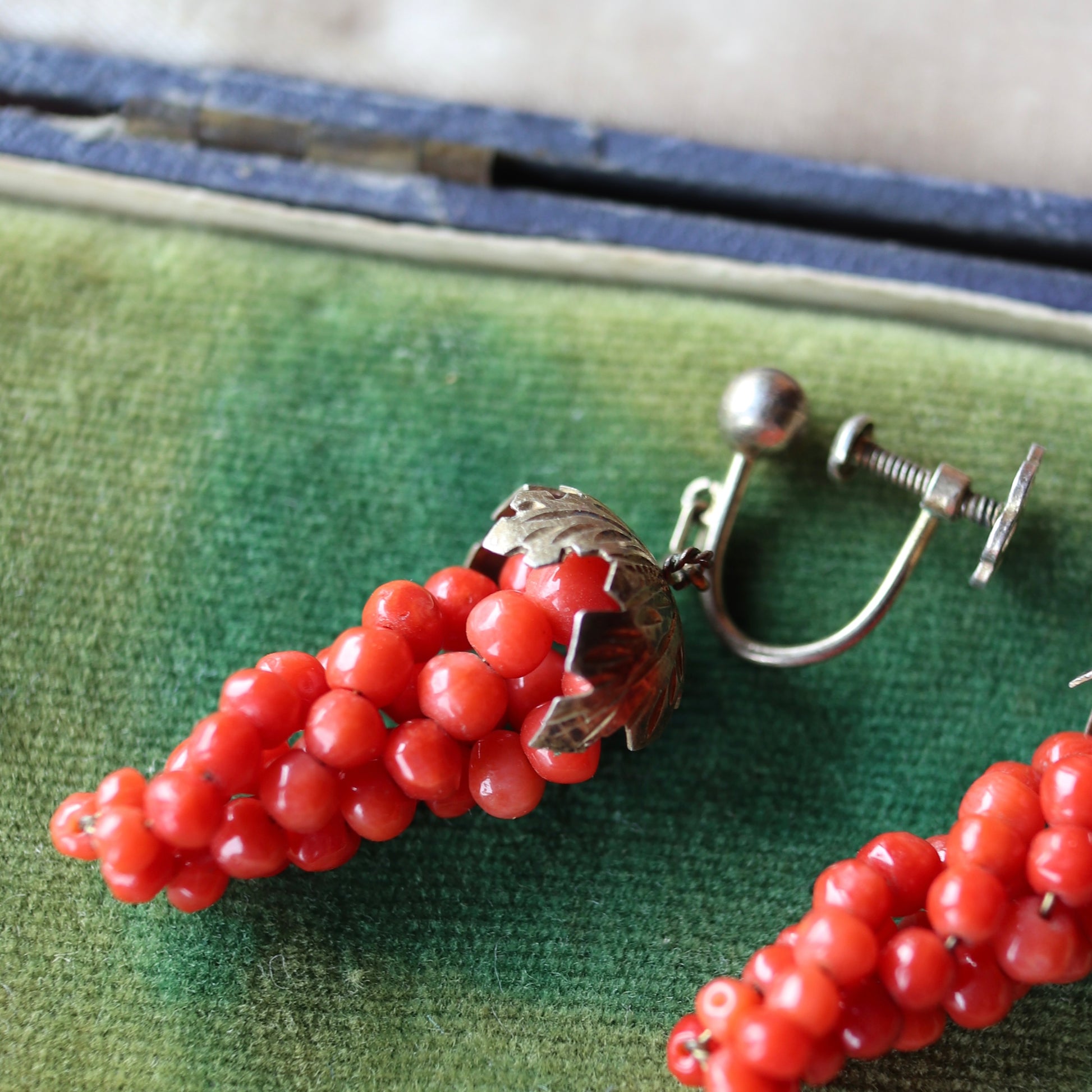アンティークコーラル ぶどう イヤリング(鑑別書付)