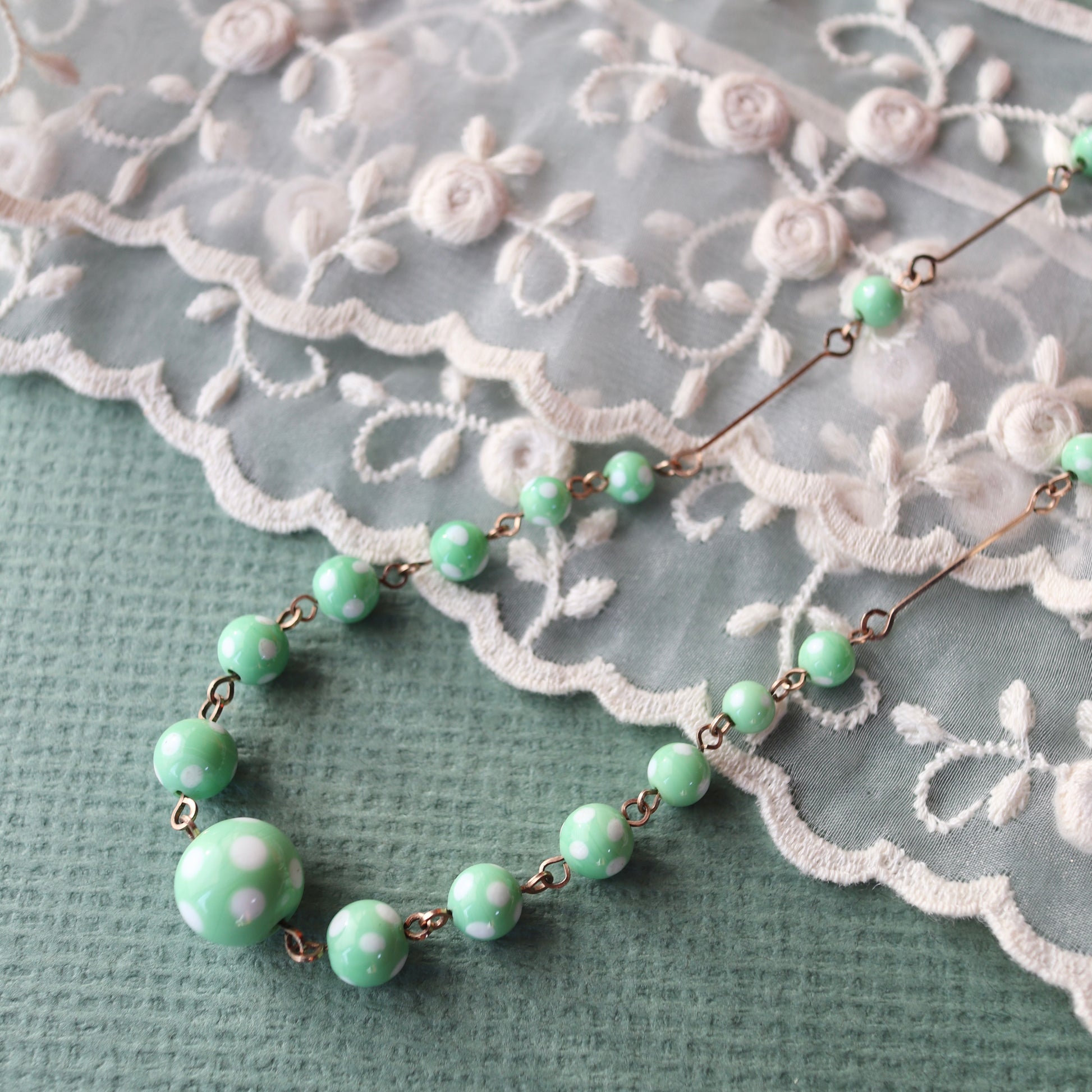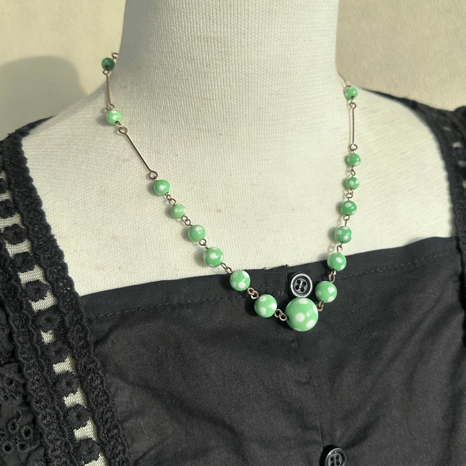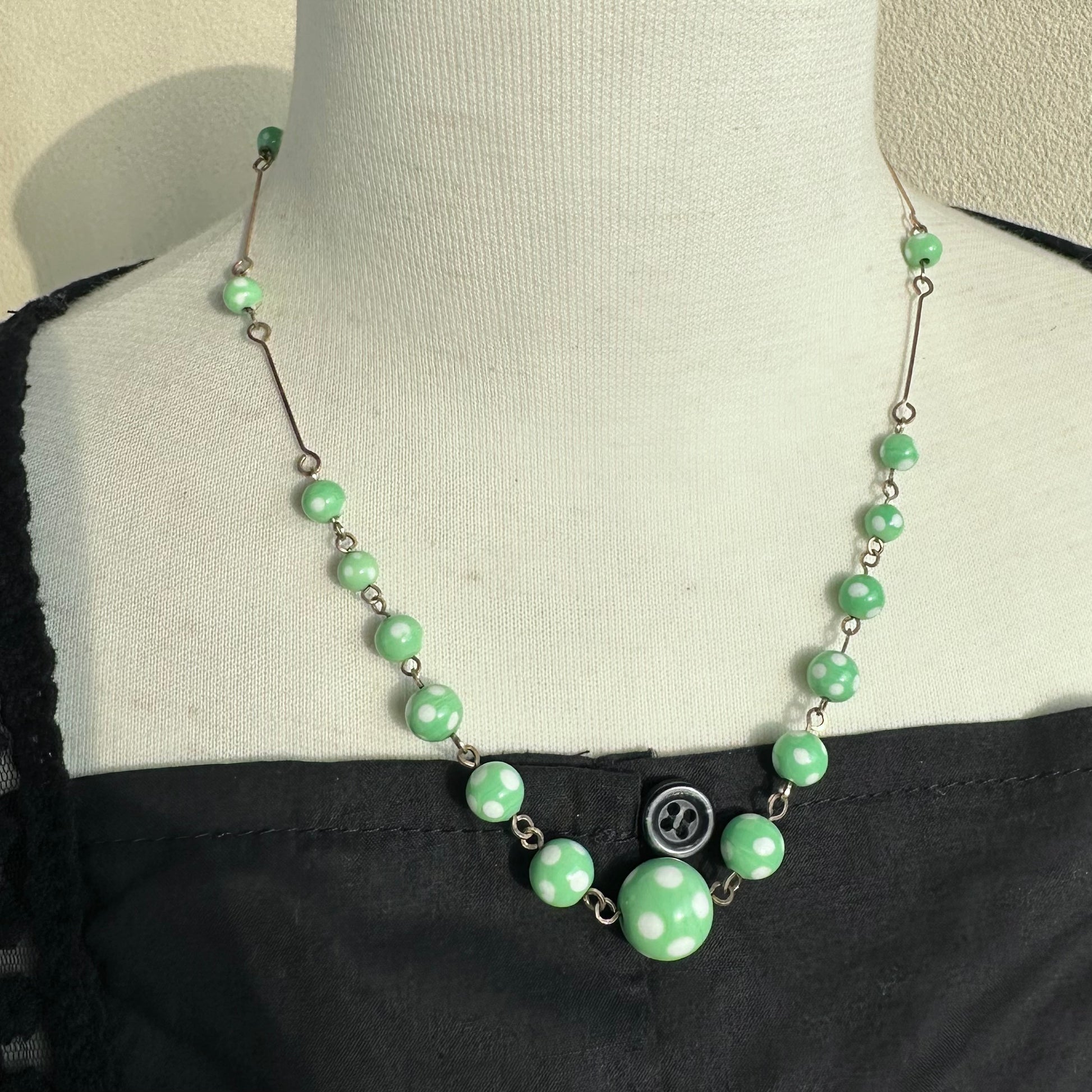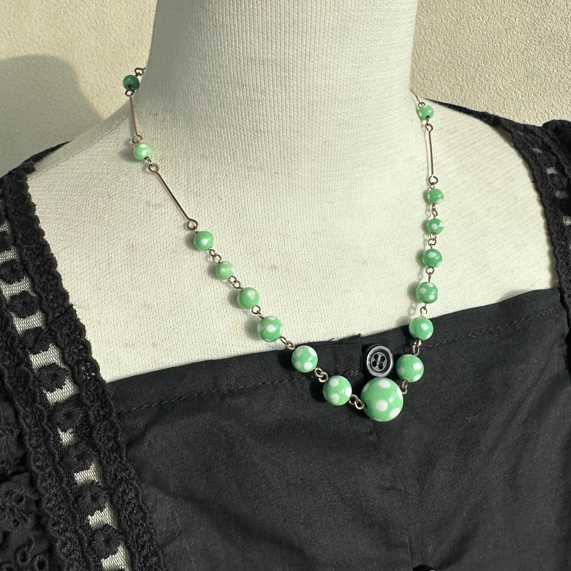 グリーン ポルカドットグラス ヴィンテージネックレス