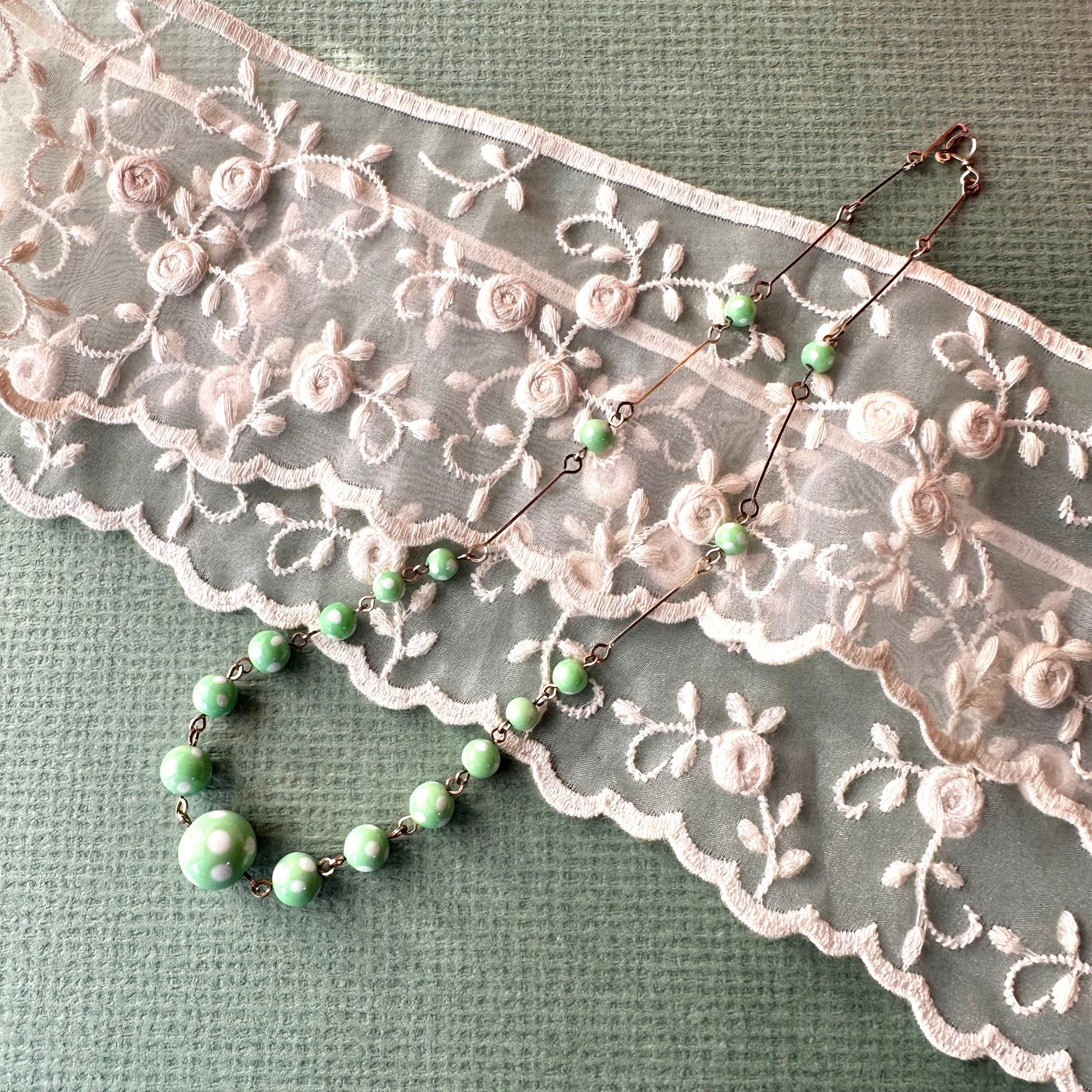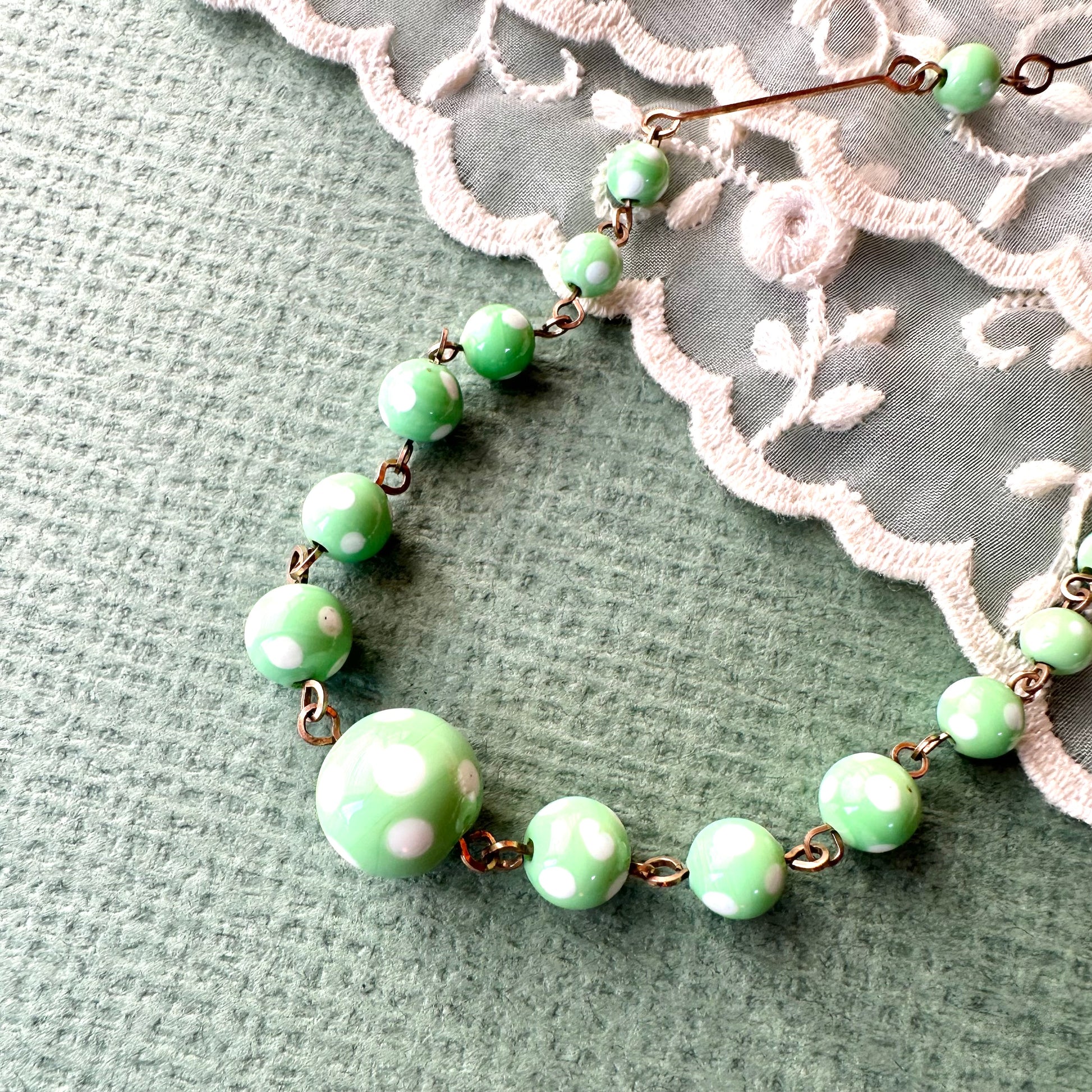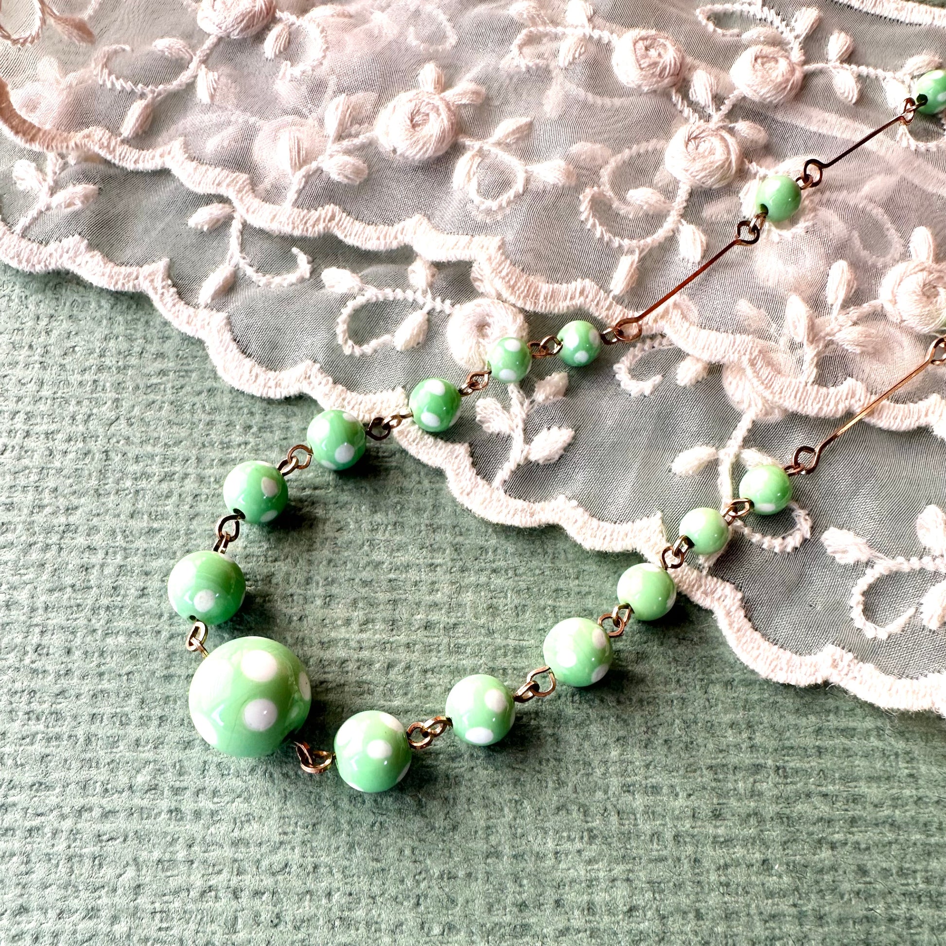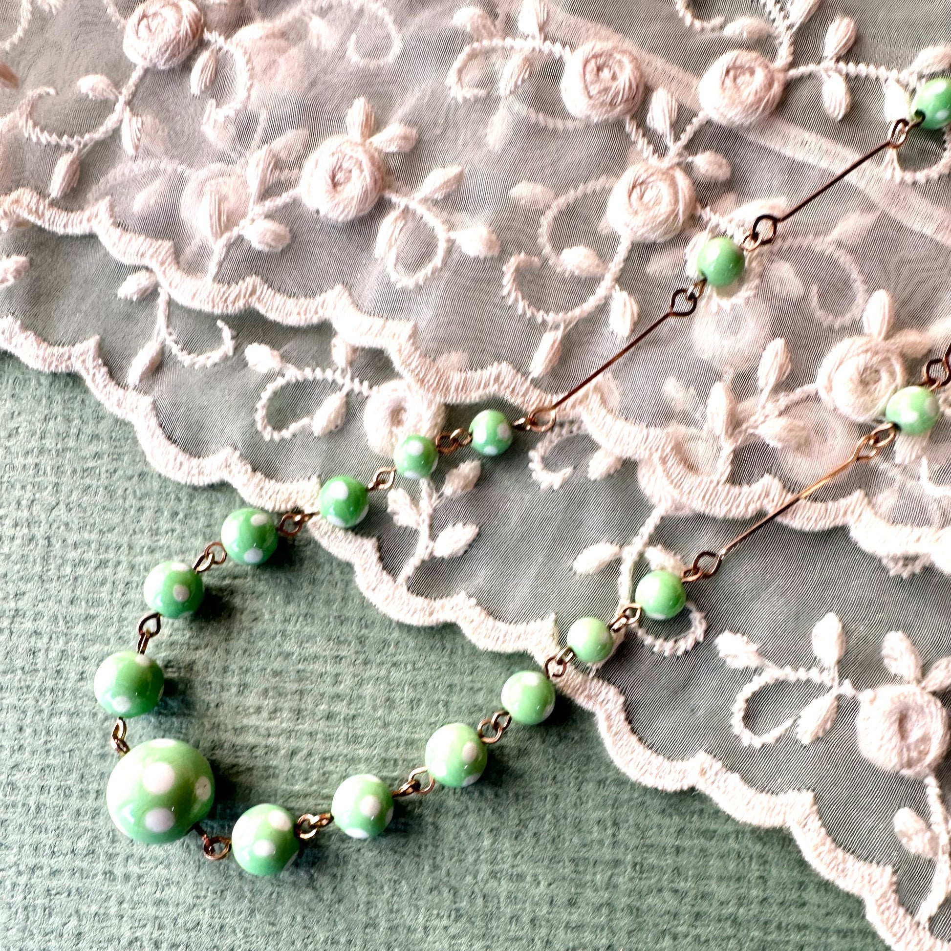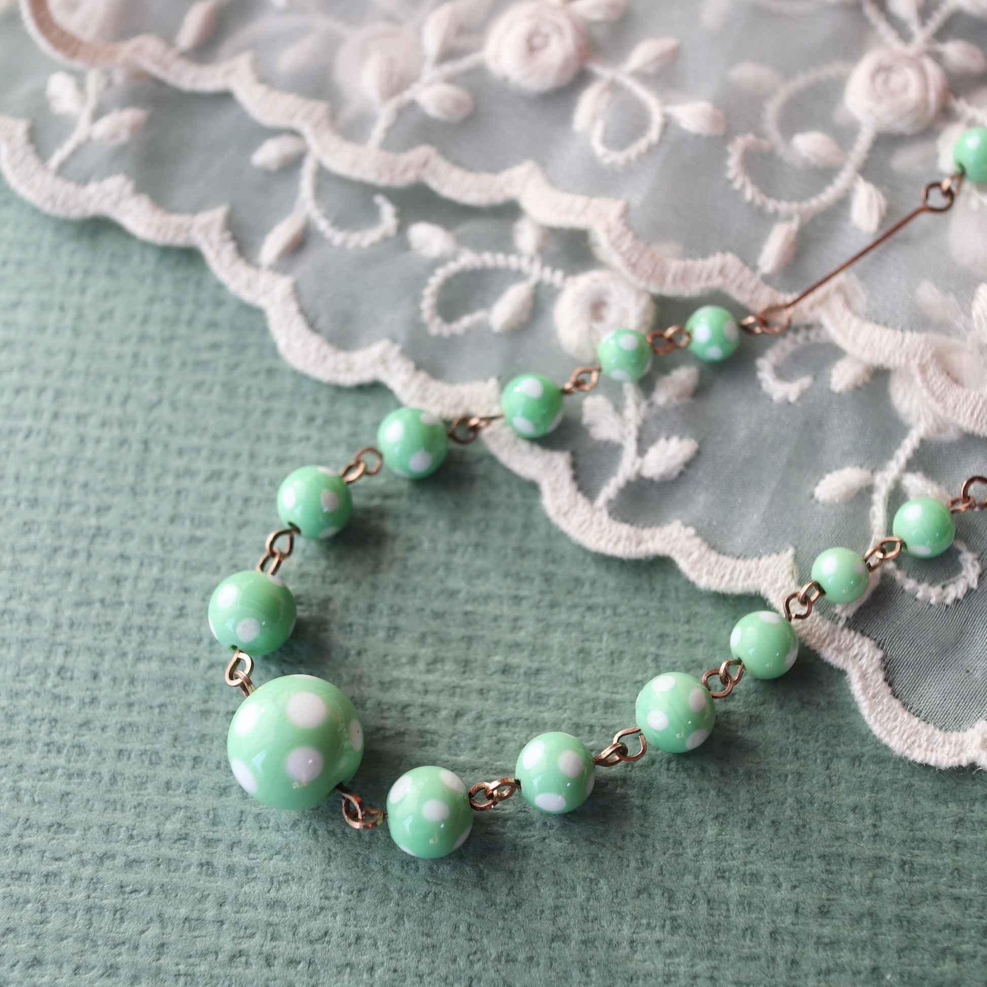 グリーン ポルカドットグラス ヴィンテージネックレス