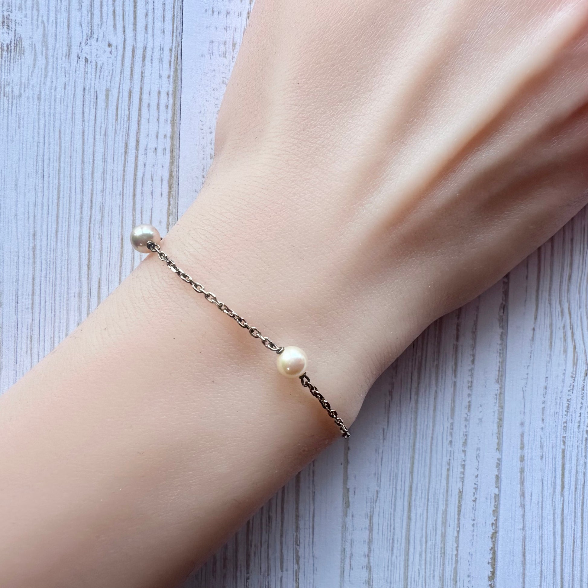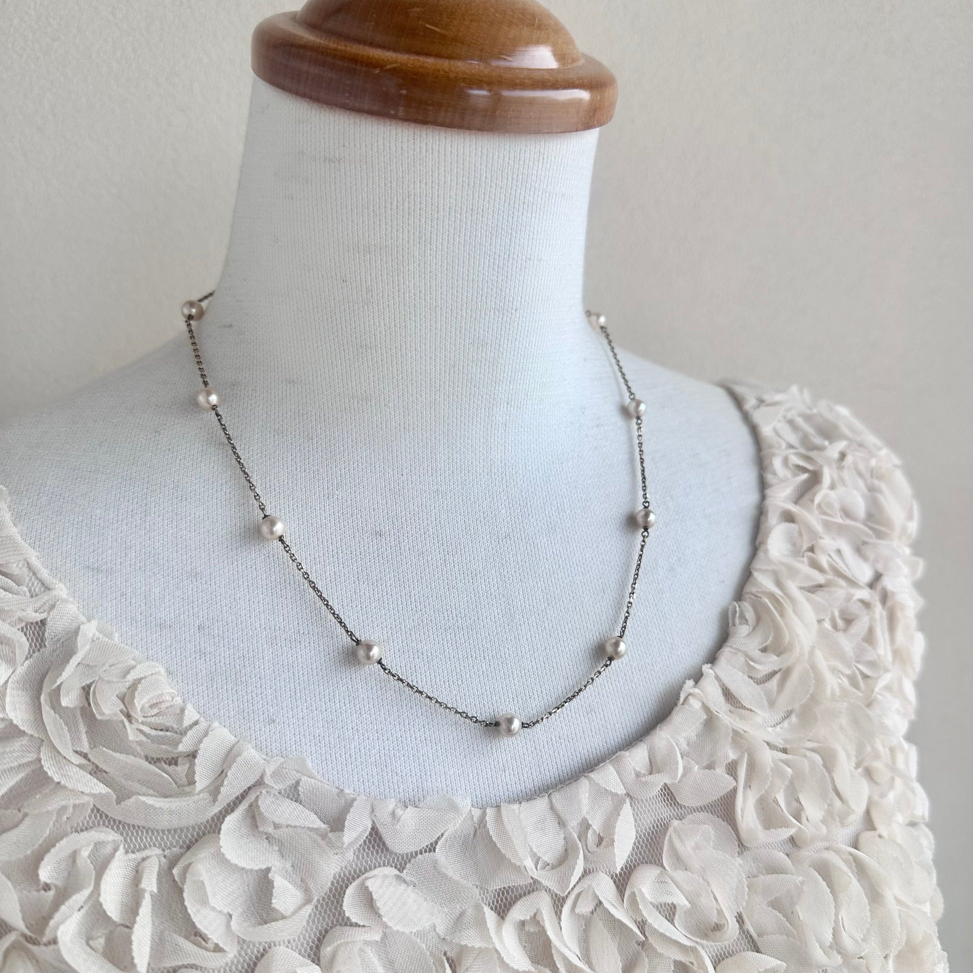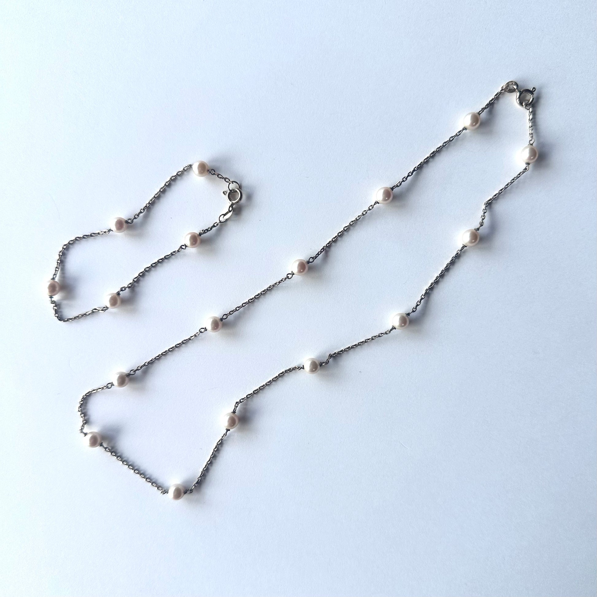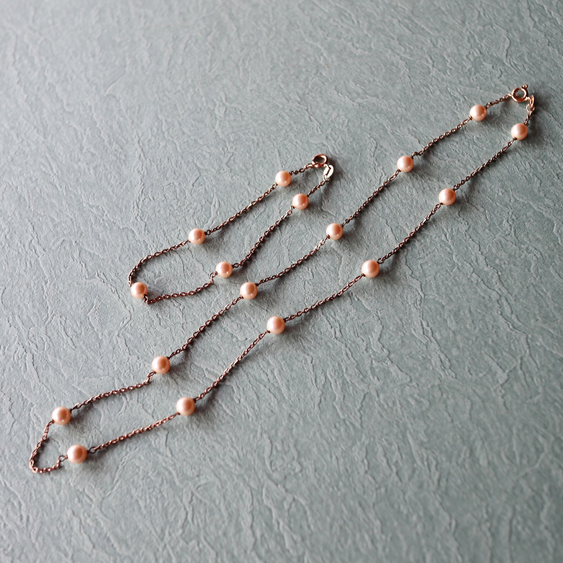 ゴールドオンシルバー グラスパール ネックレス&ブレスレット