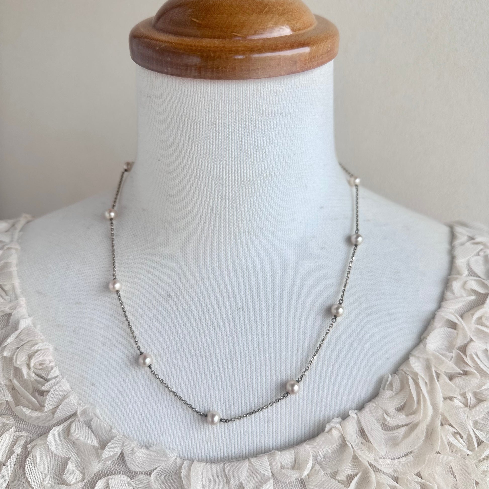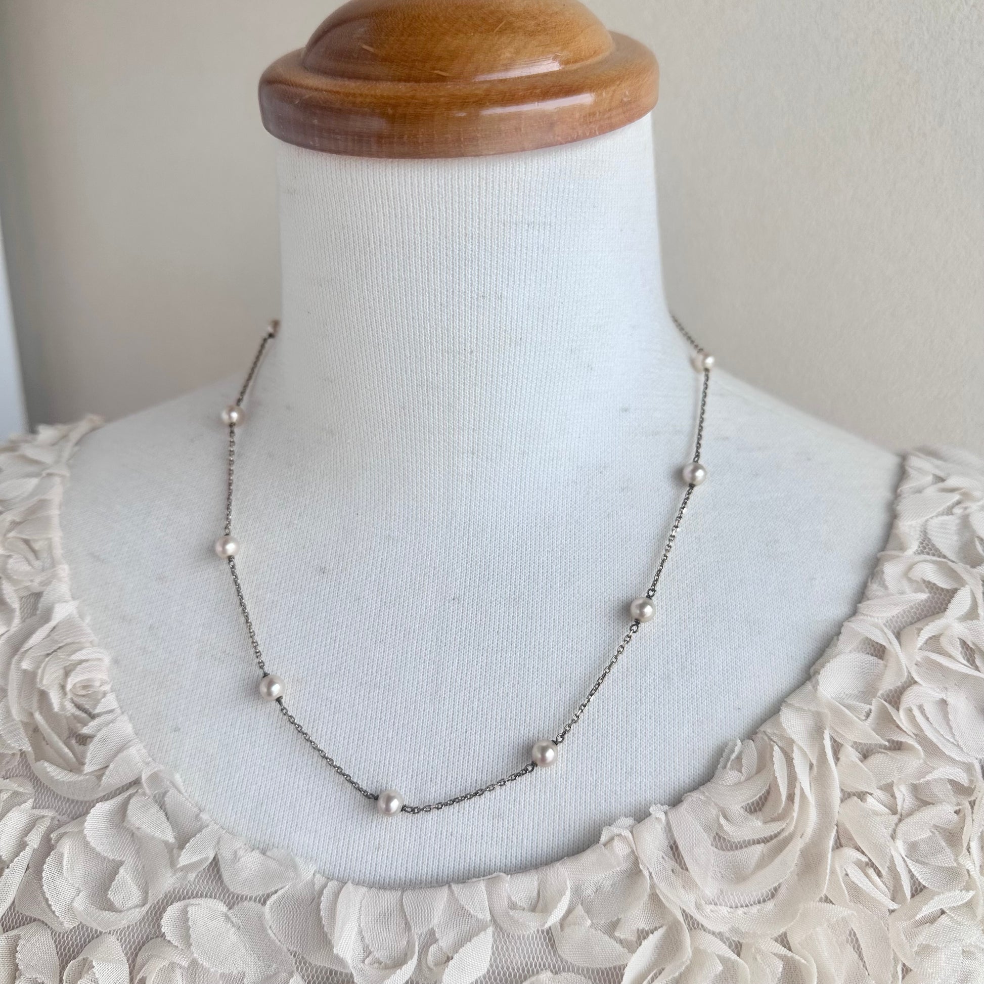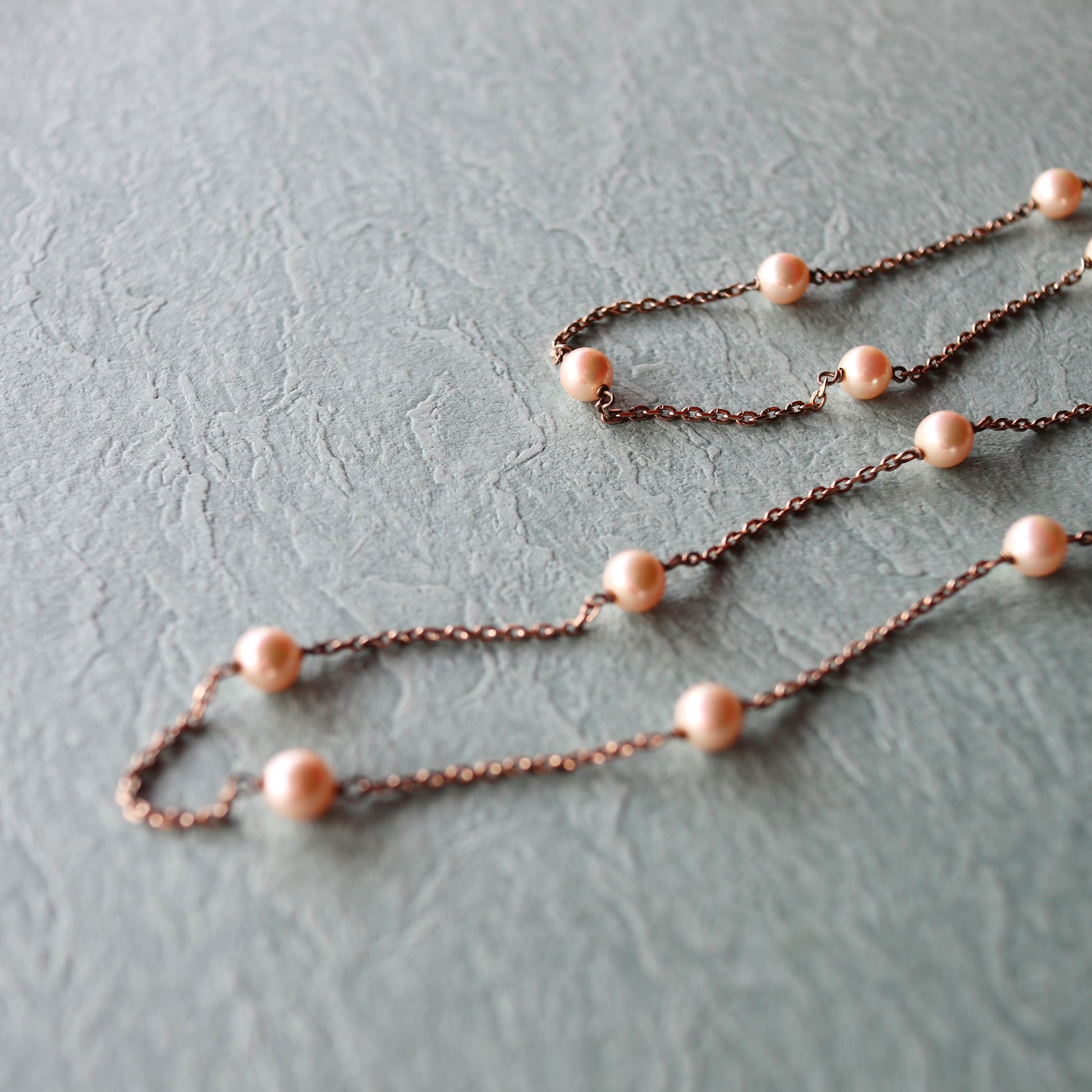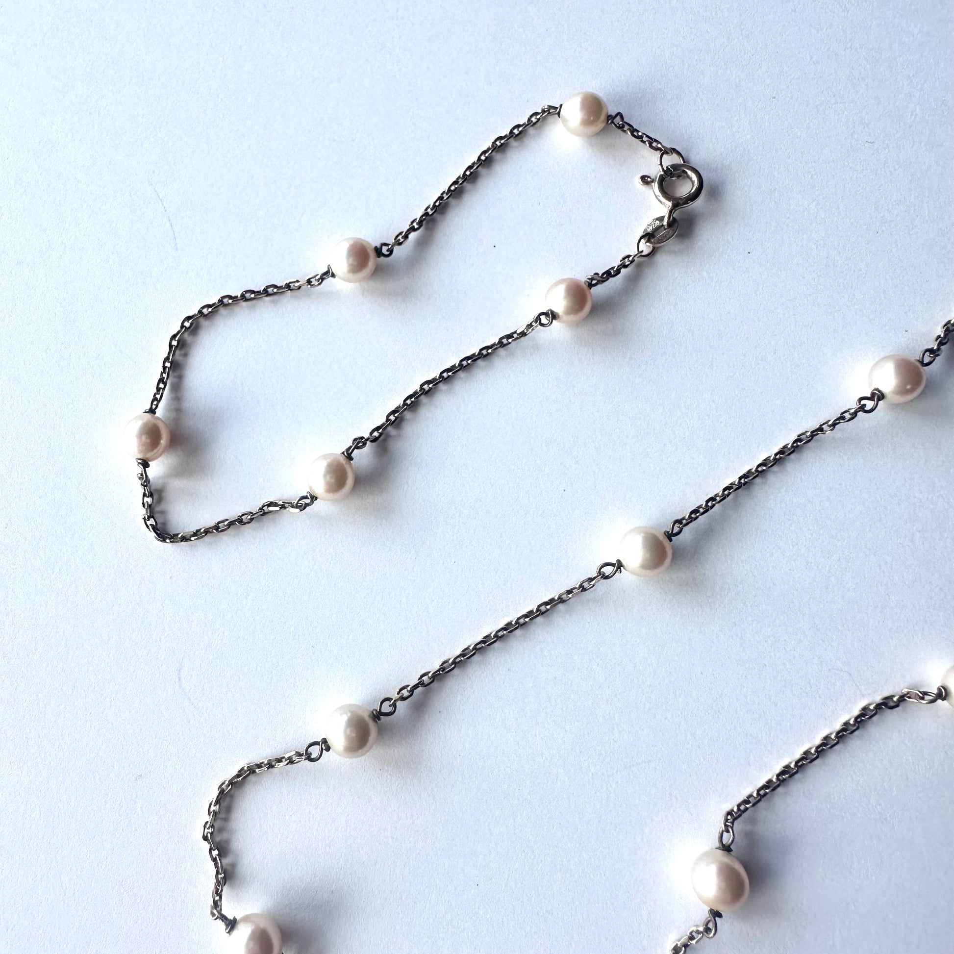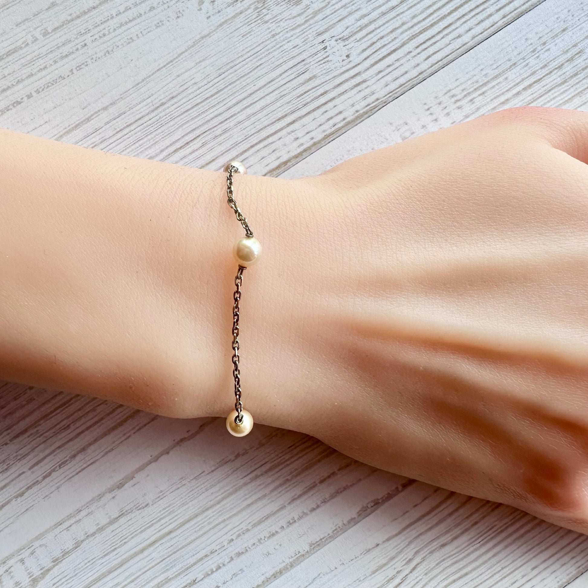 ゴールドオンシルバー グラスパール ネックレス&ブレスレット