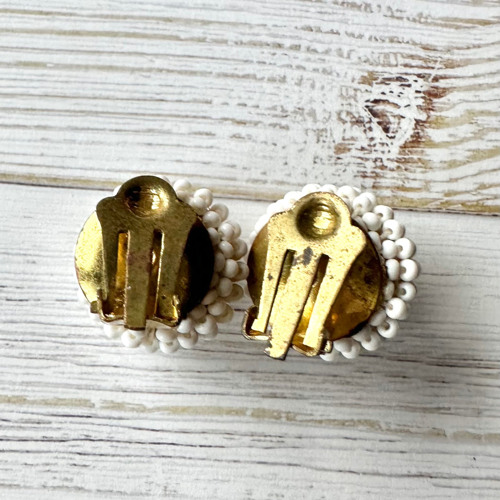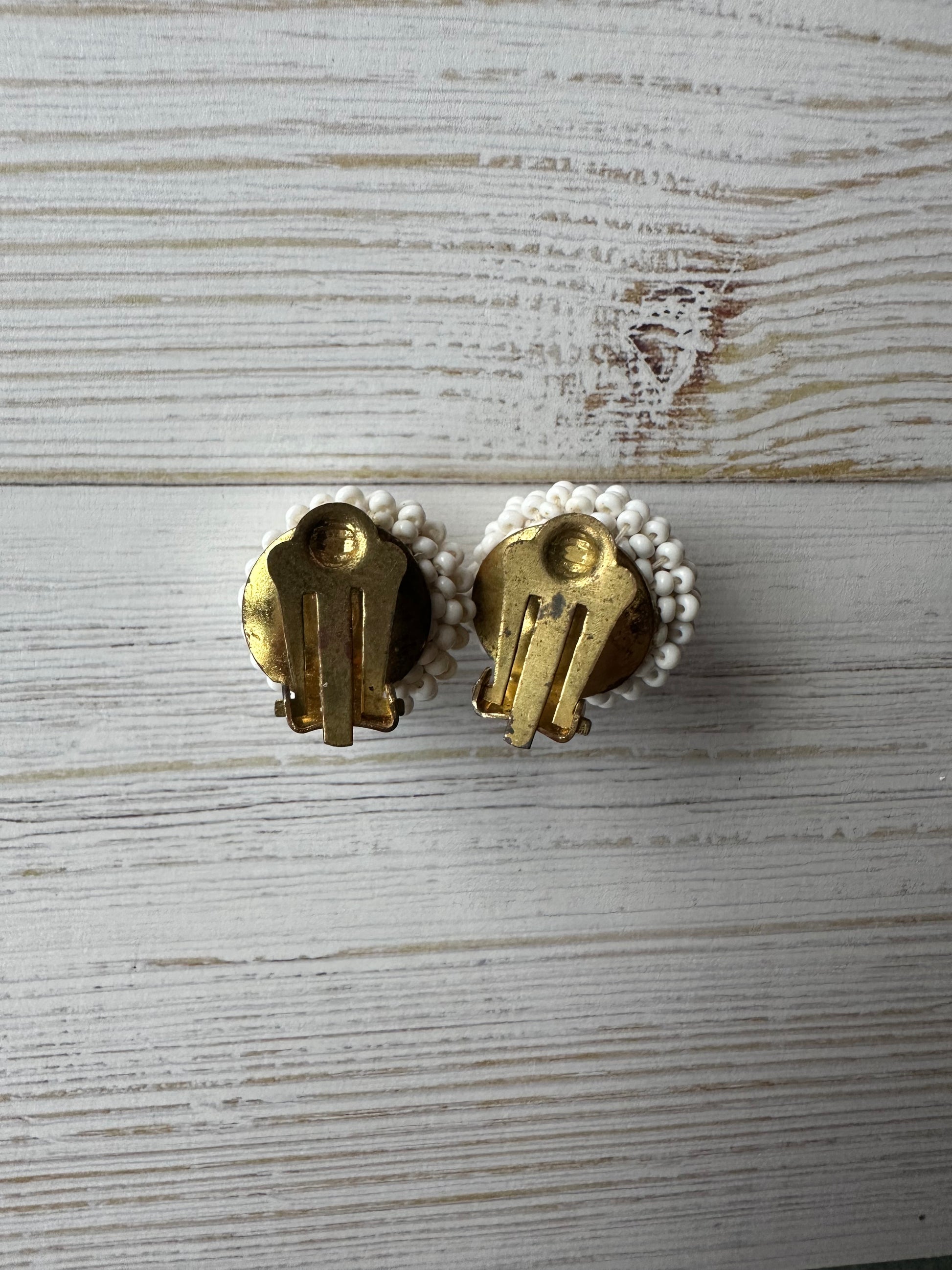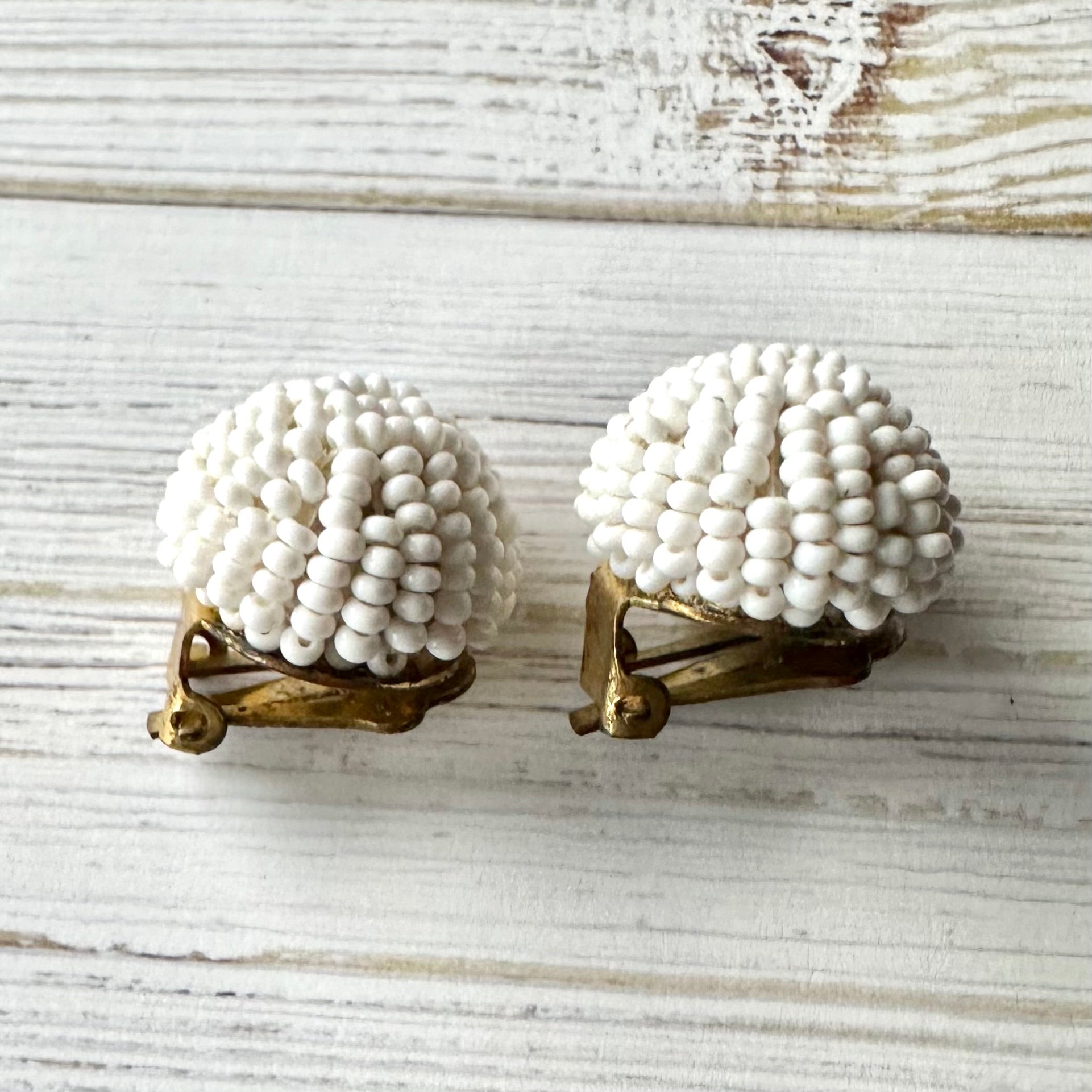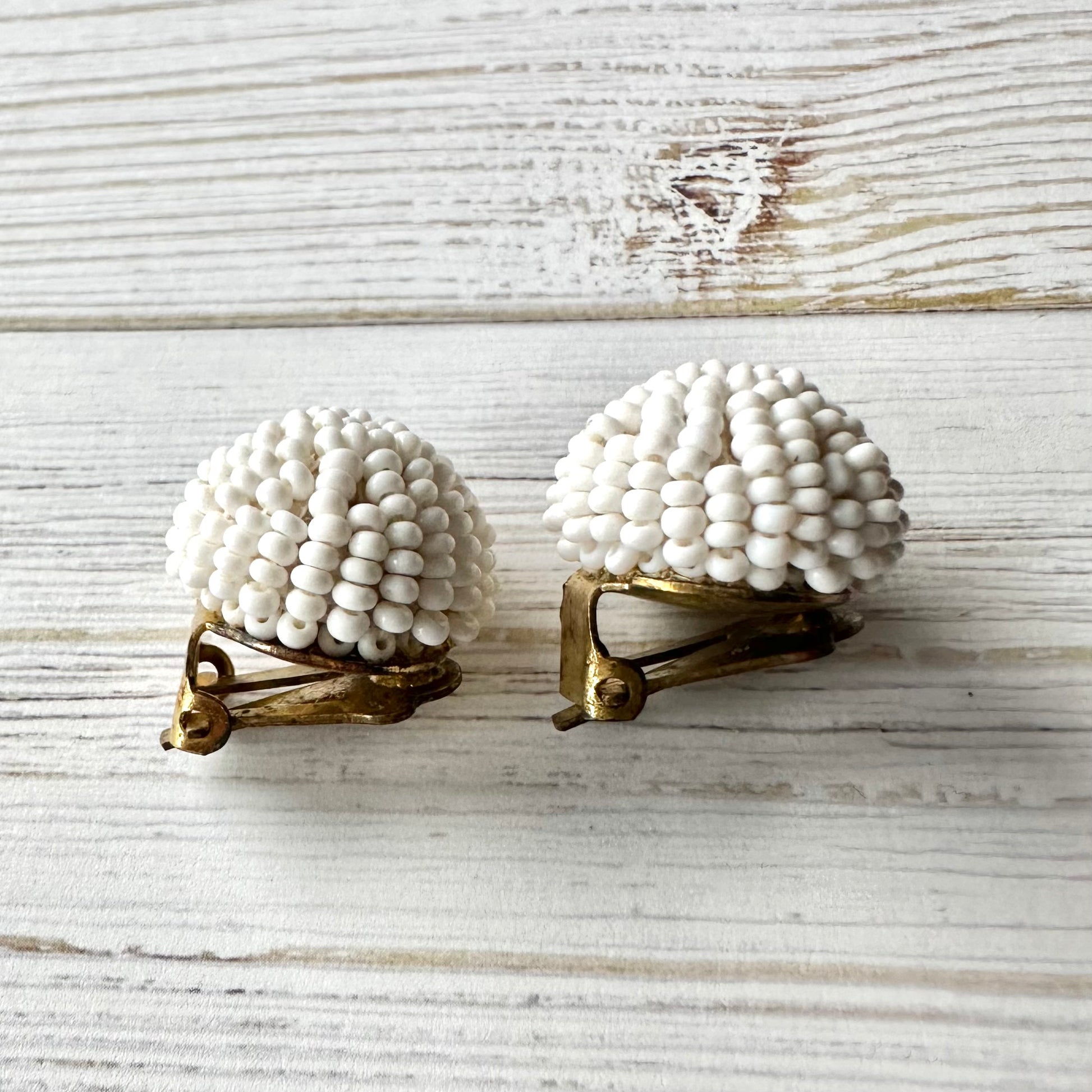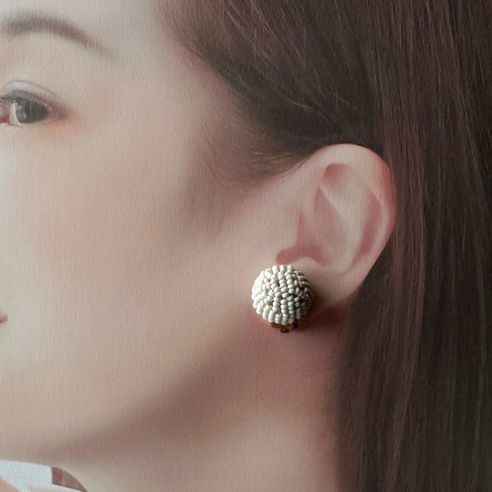 ヴィンテージビーズ ドーム ホワイトイヤリング