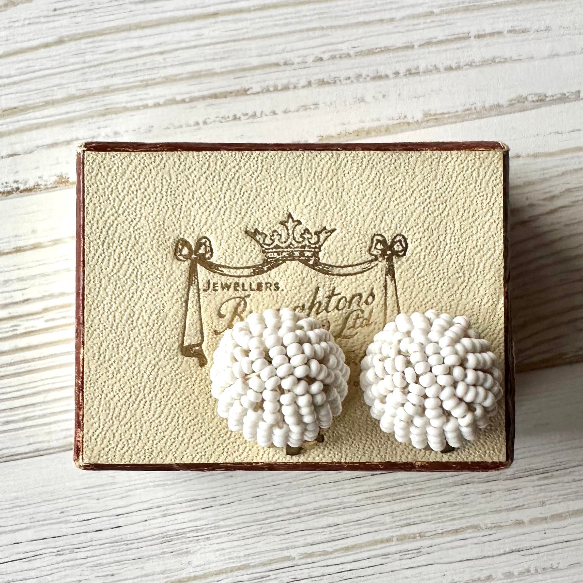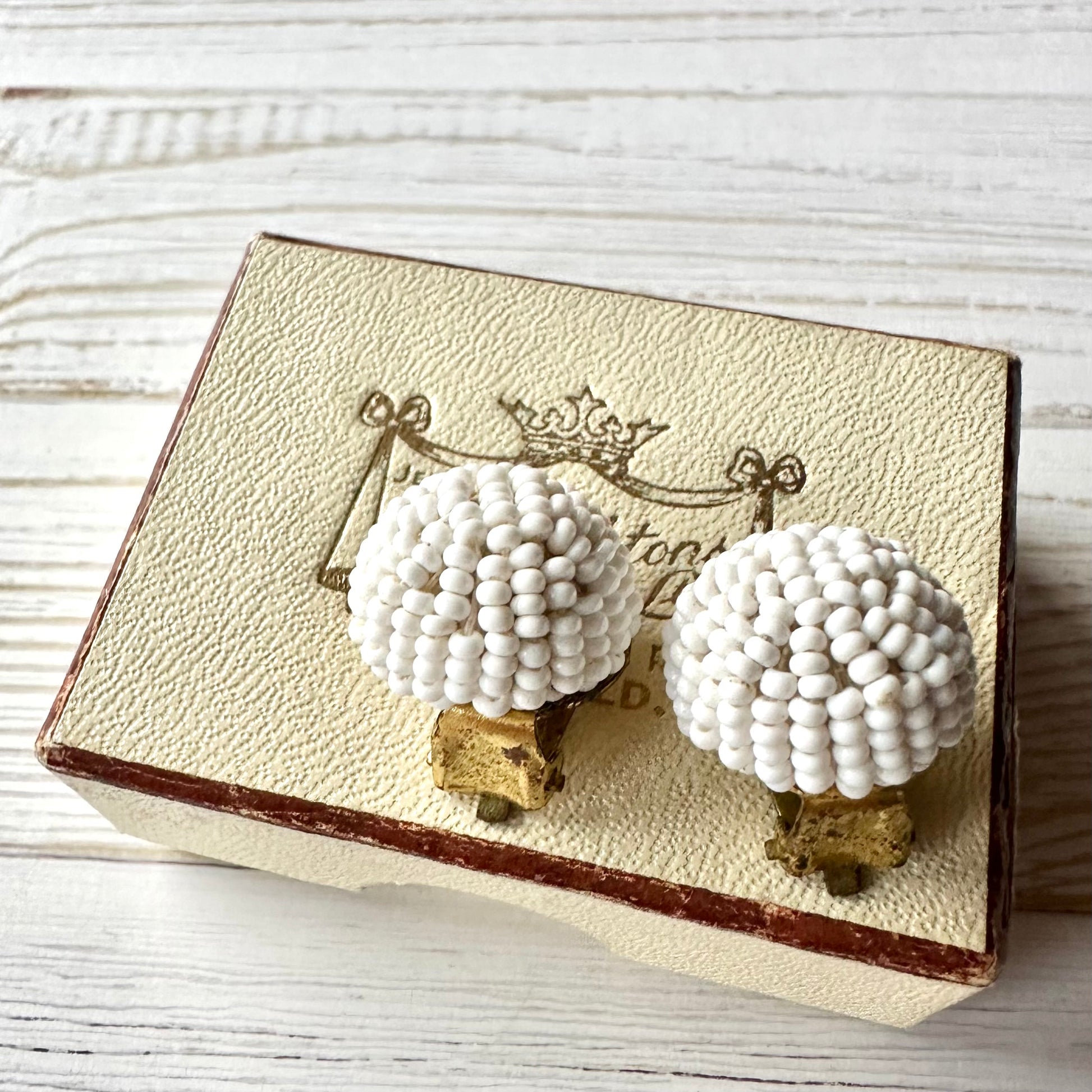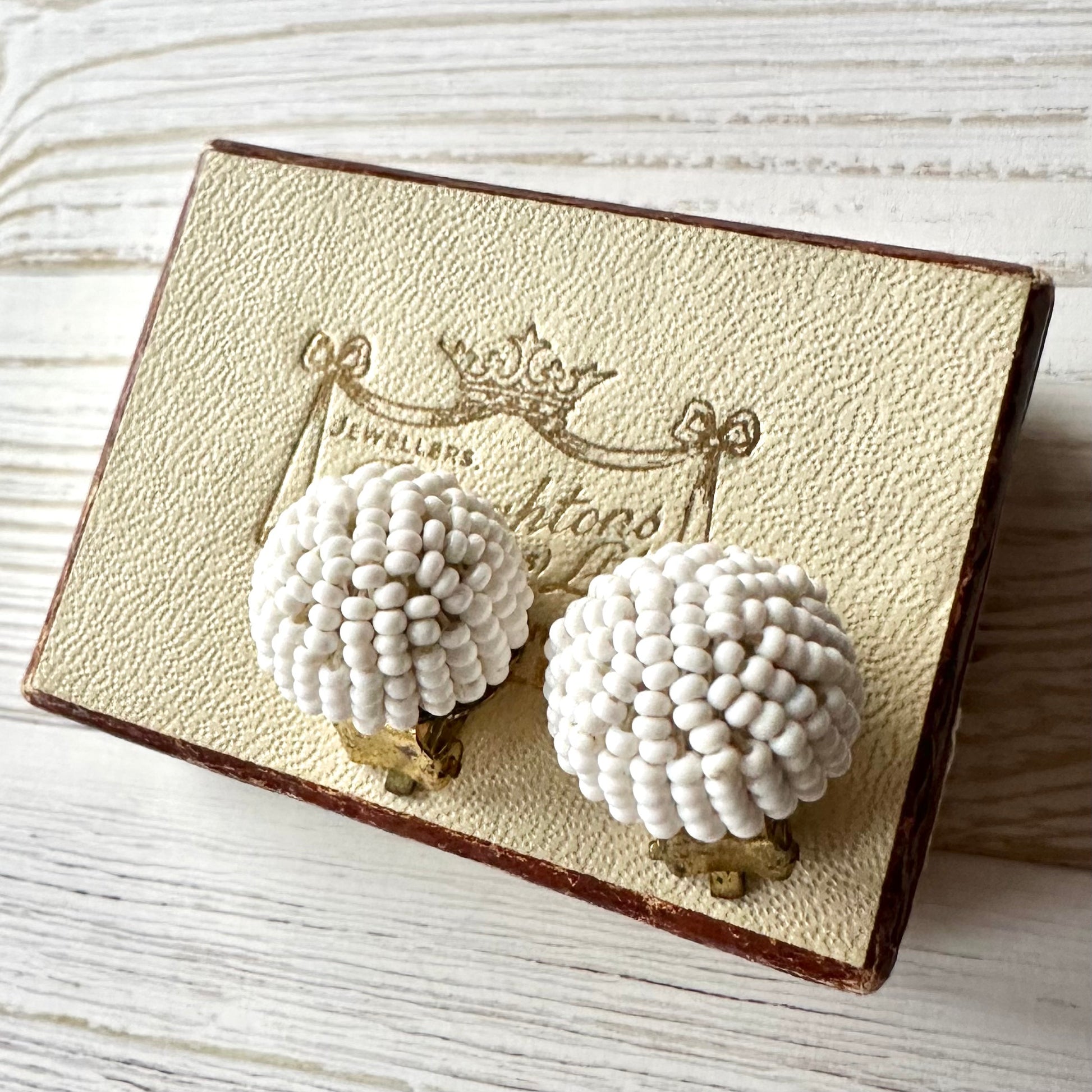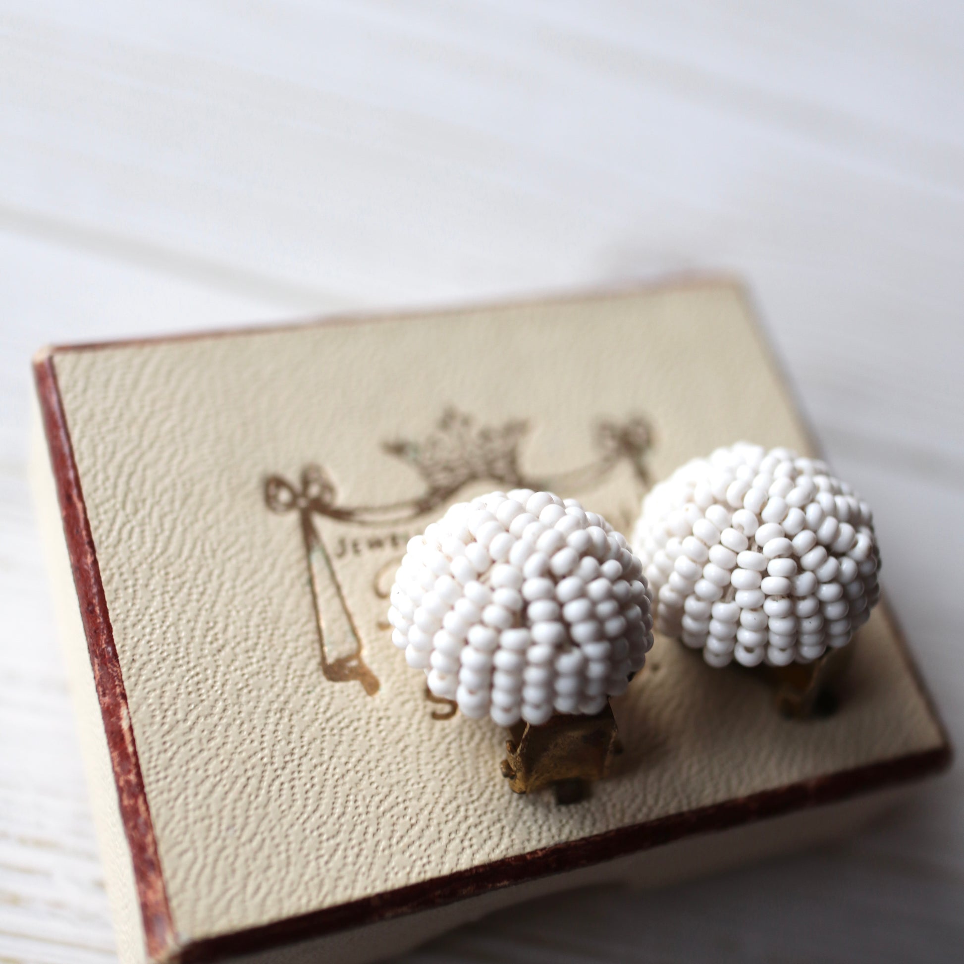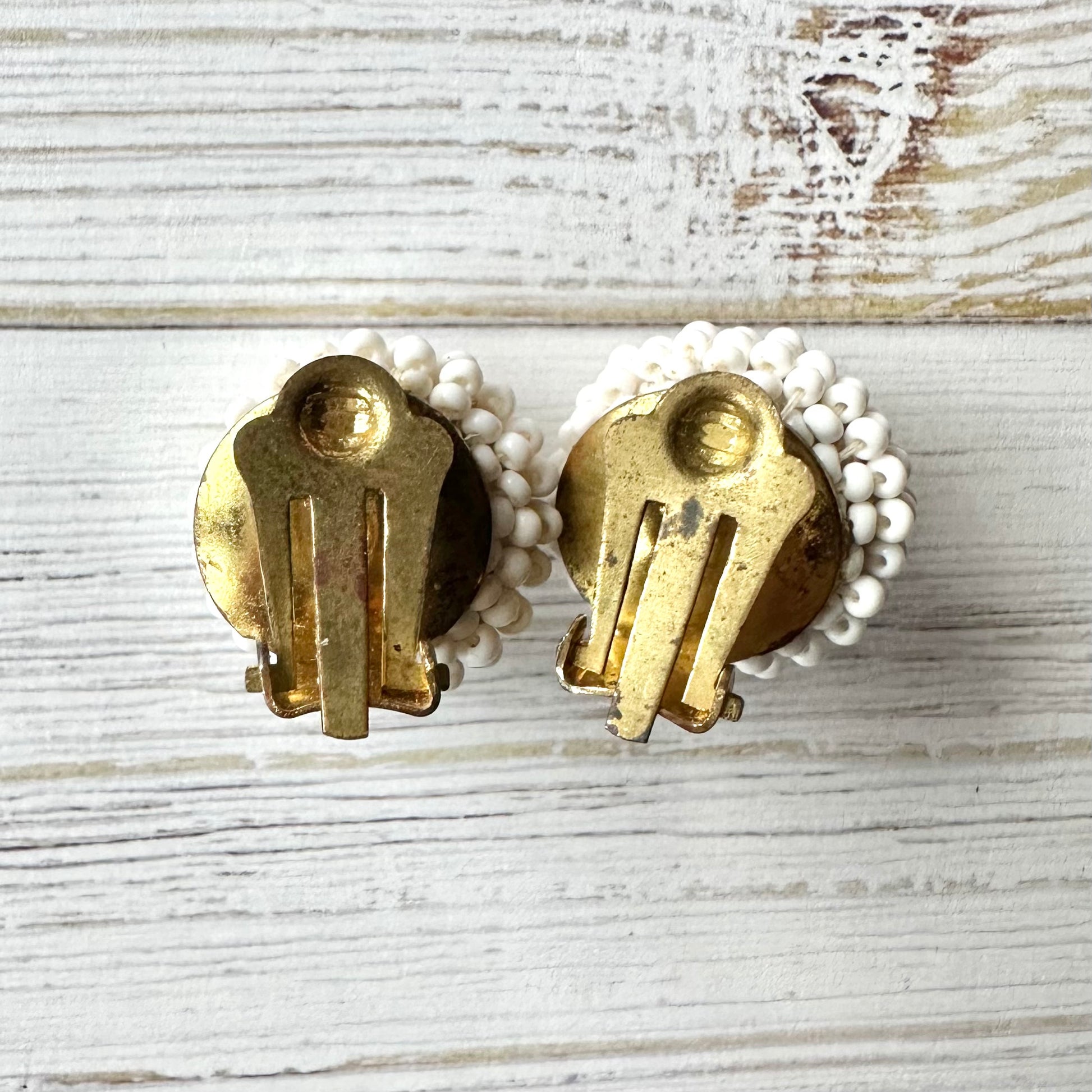 ヴィンテージビーズ ドーム ホワイトイヤリング