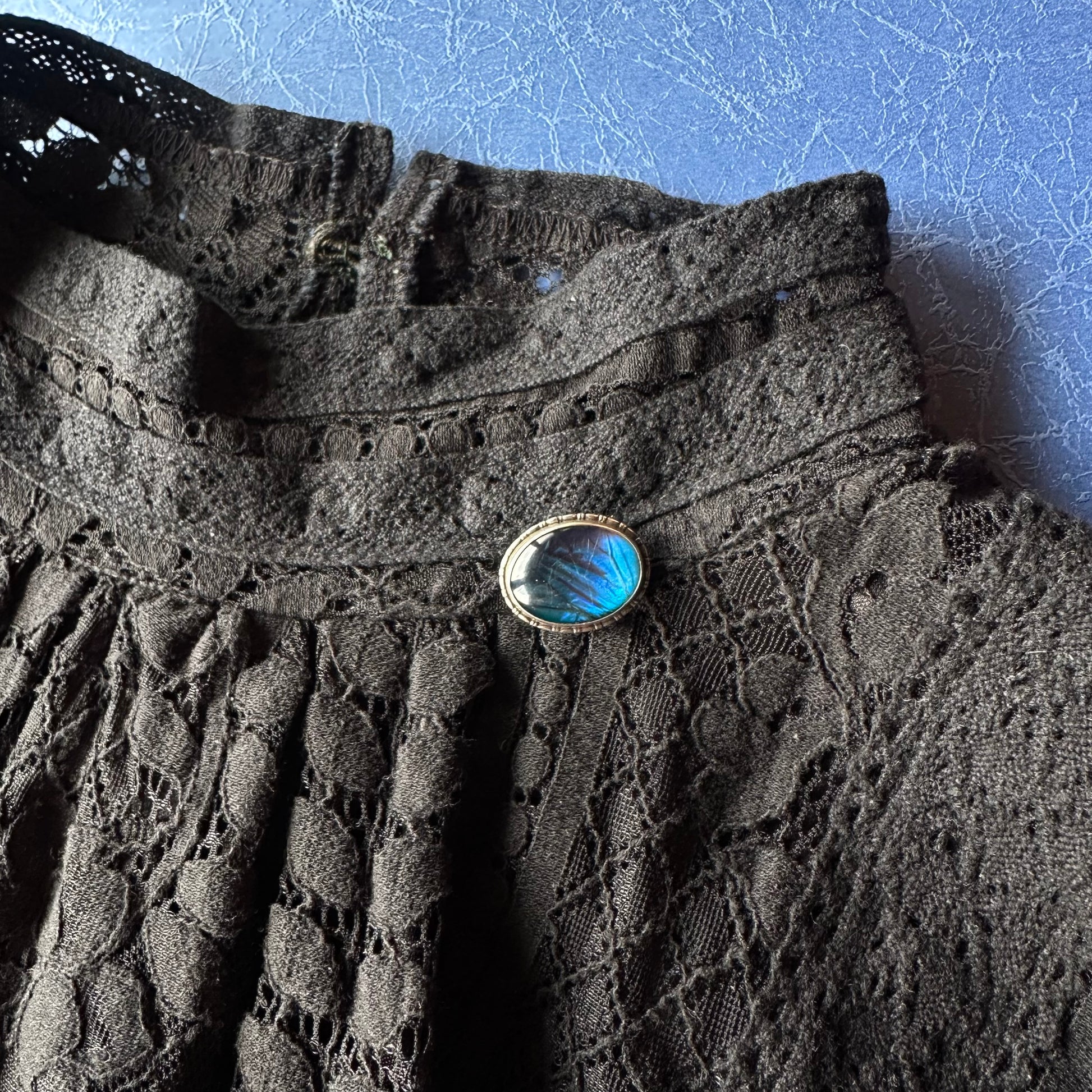 こちらはブルーの濃さは美しい、オーバルのミニブローチ。