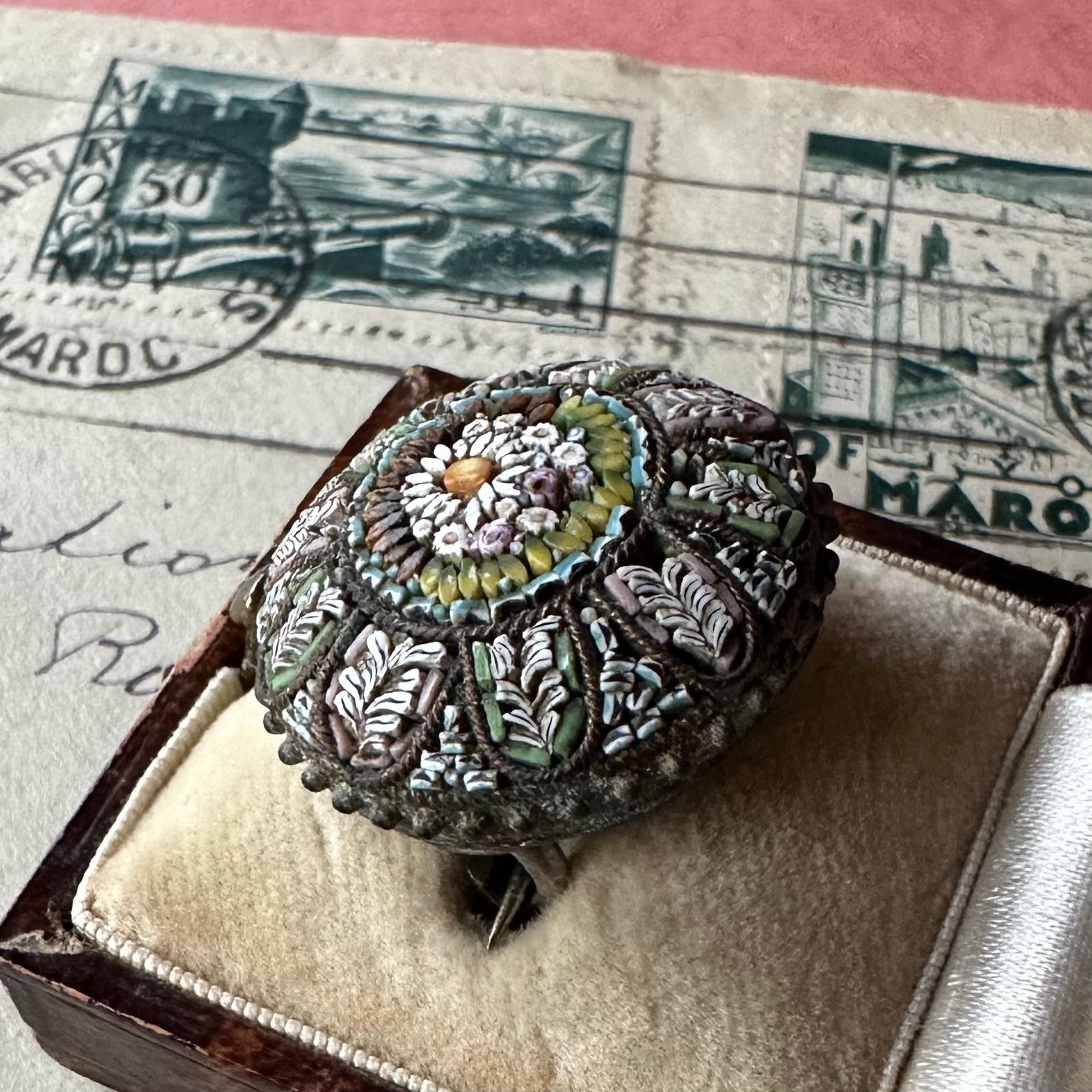 小さなパーツから構成された繊細で美しいマイクロモザイク。