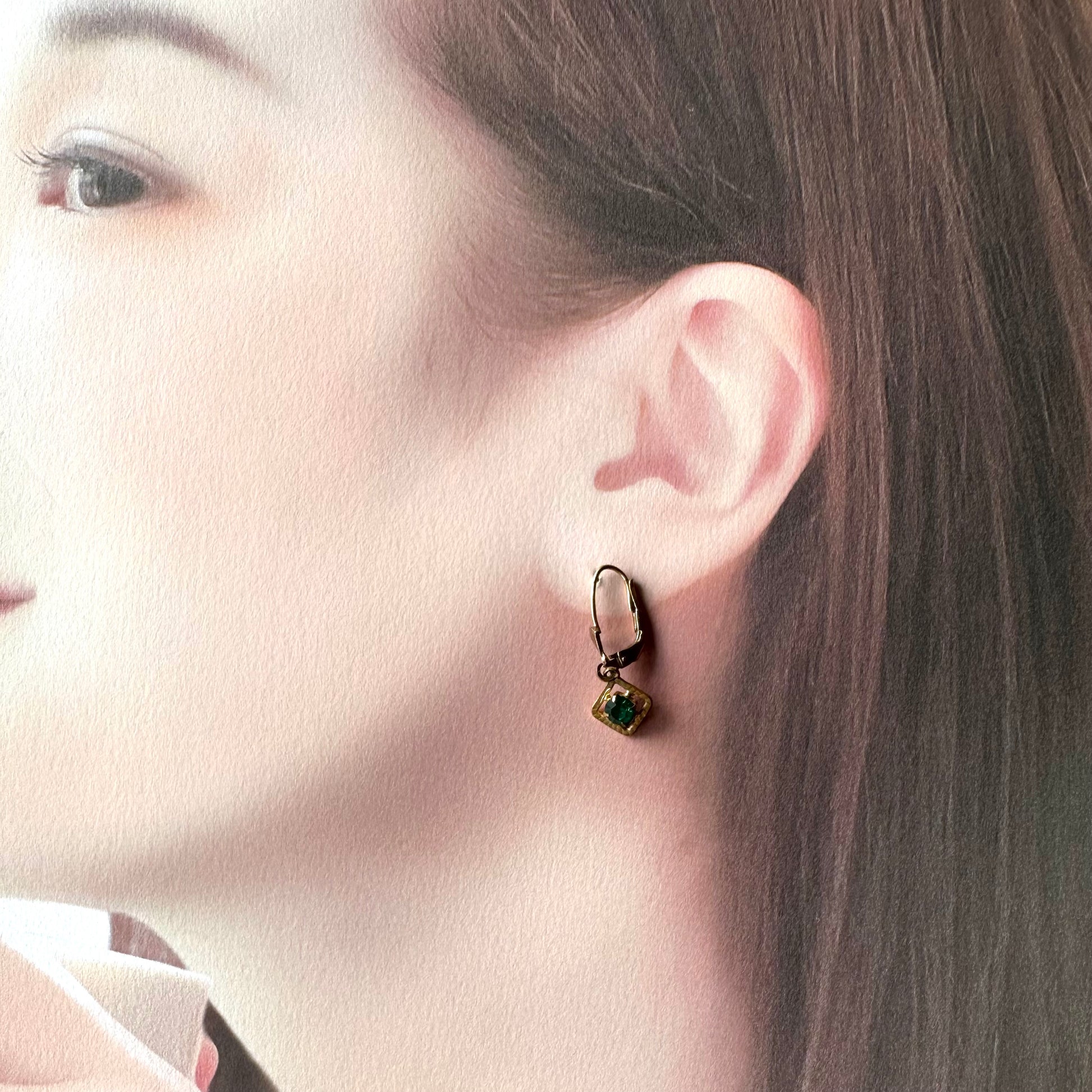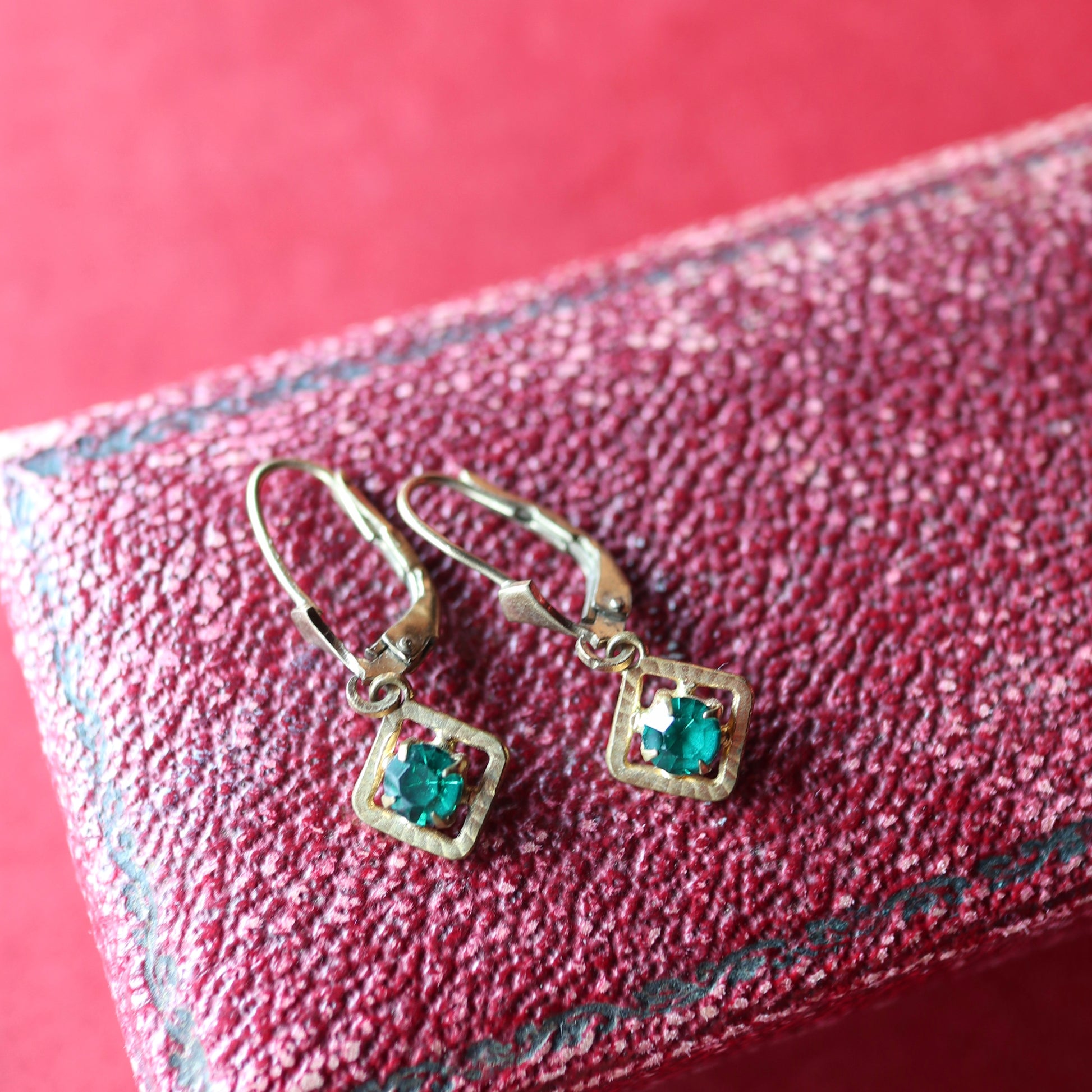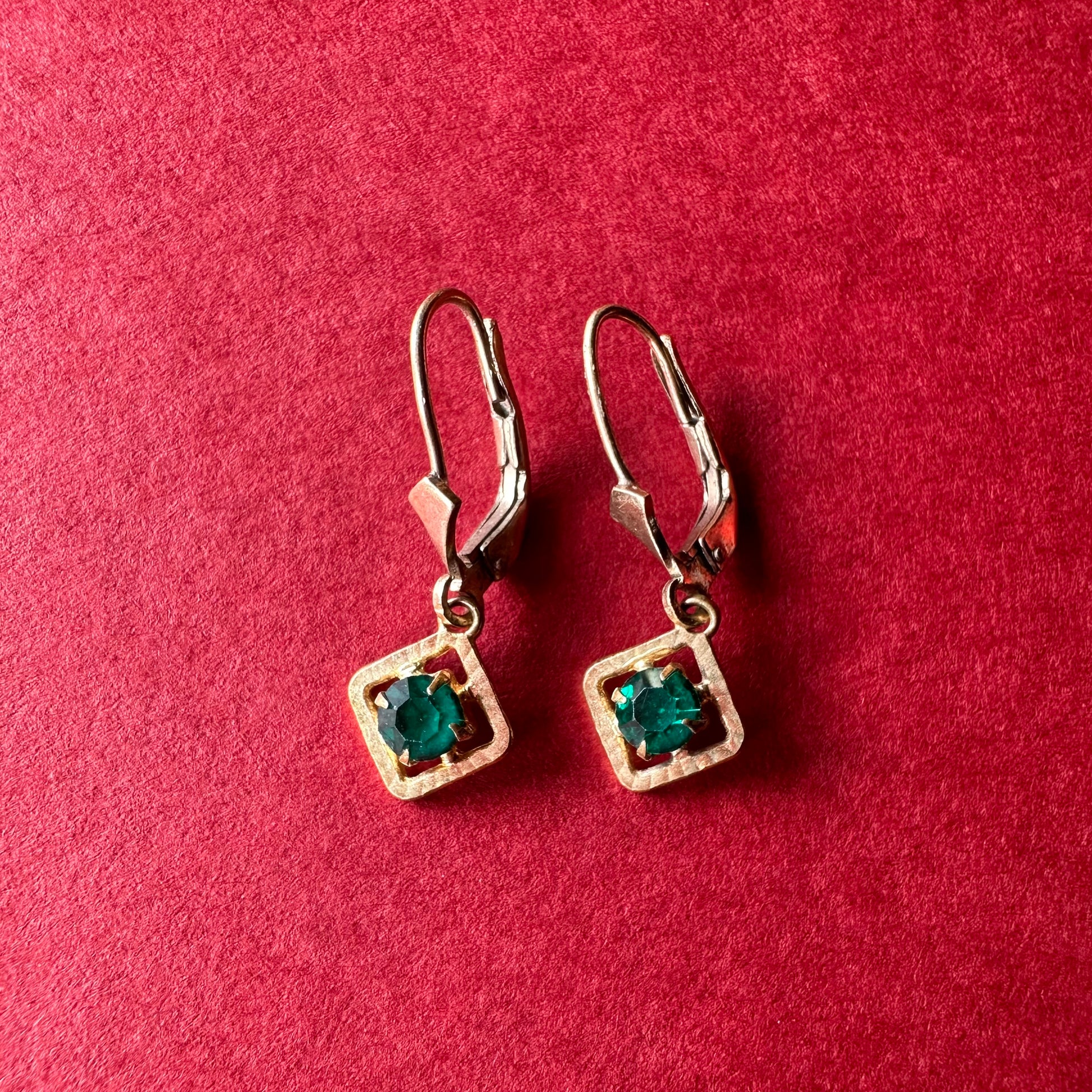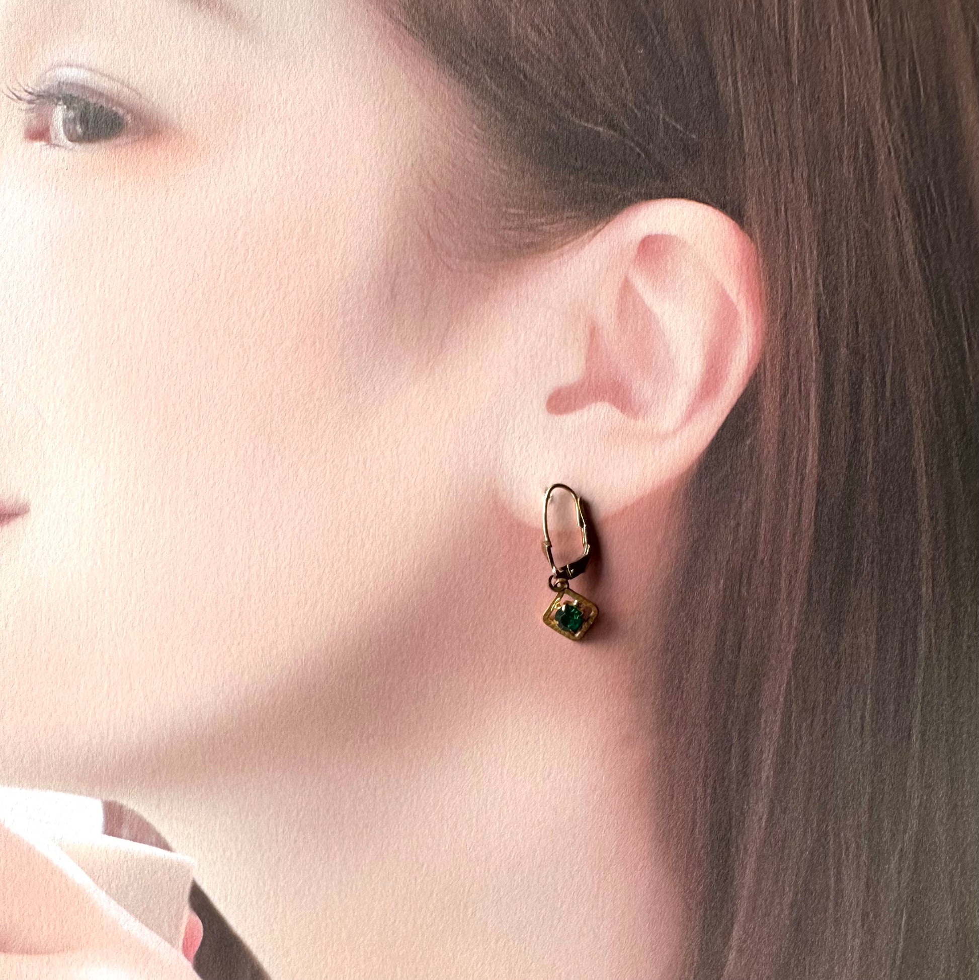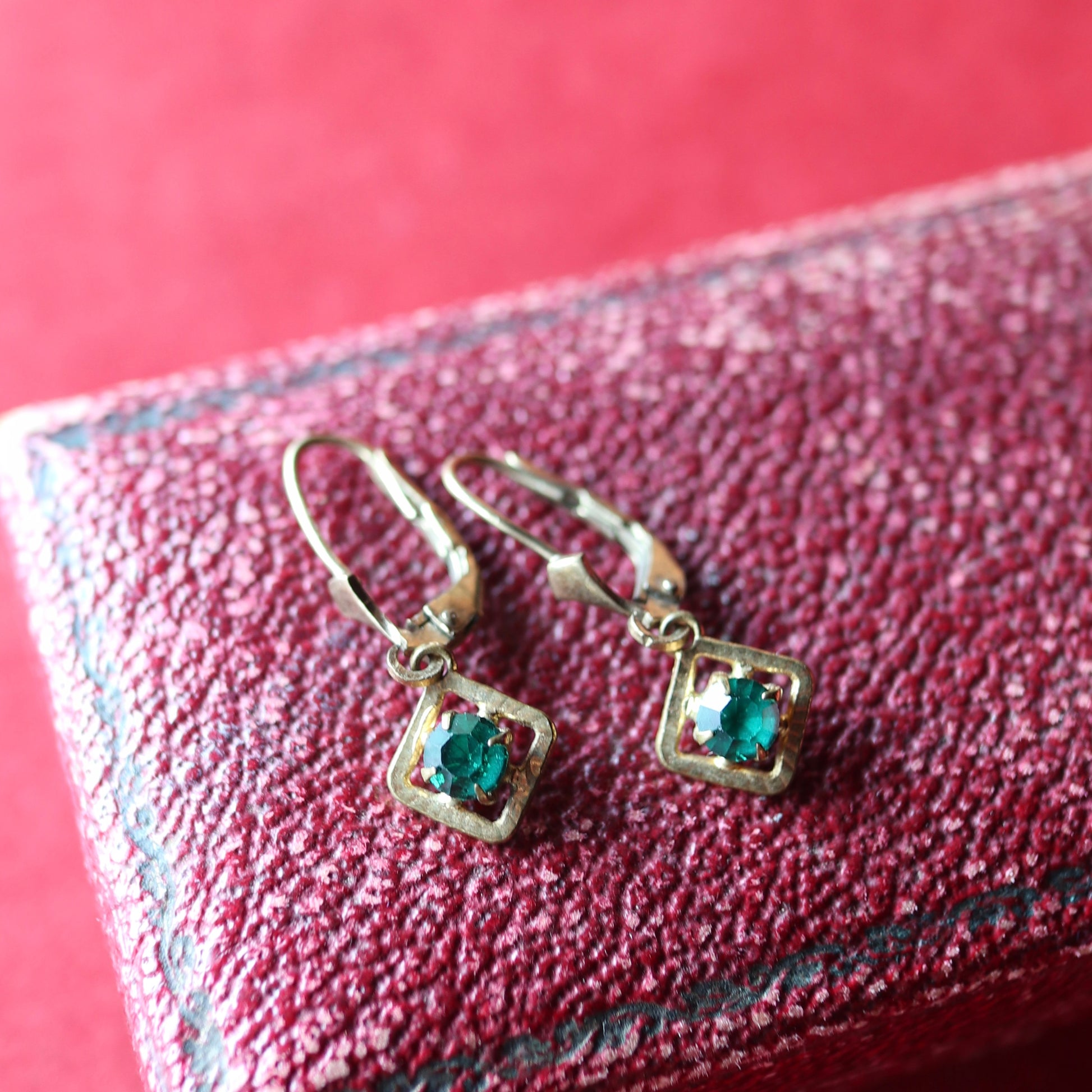 ドイツヴィンテージ グリーンカラーグラス ピアス