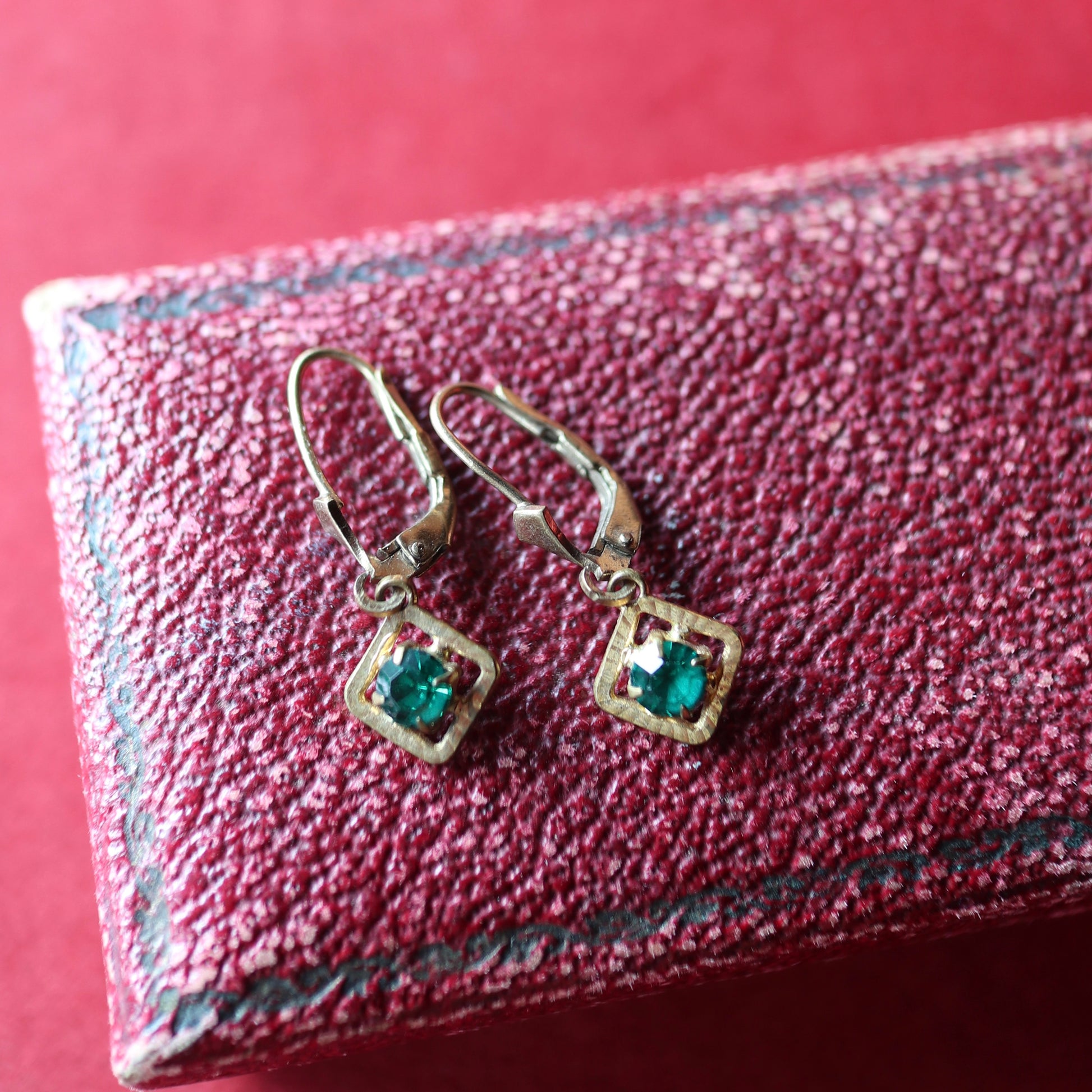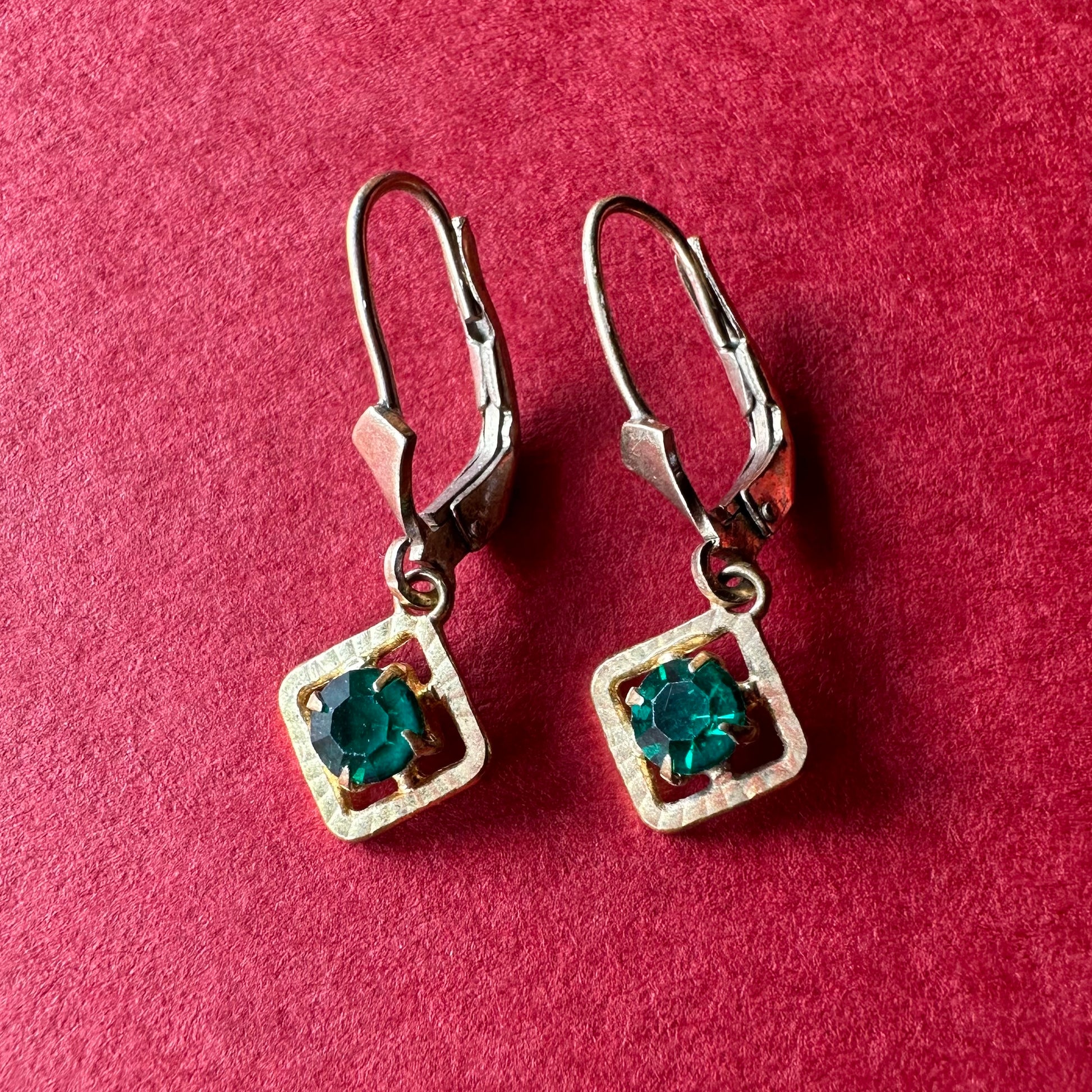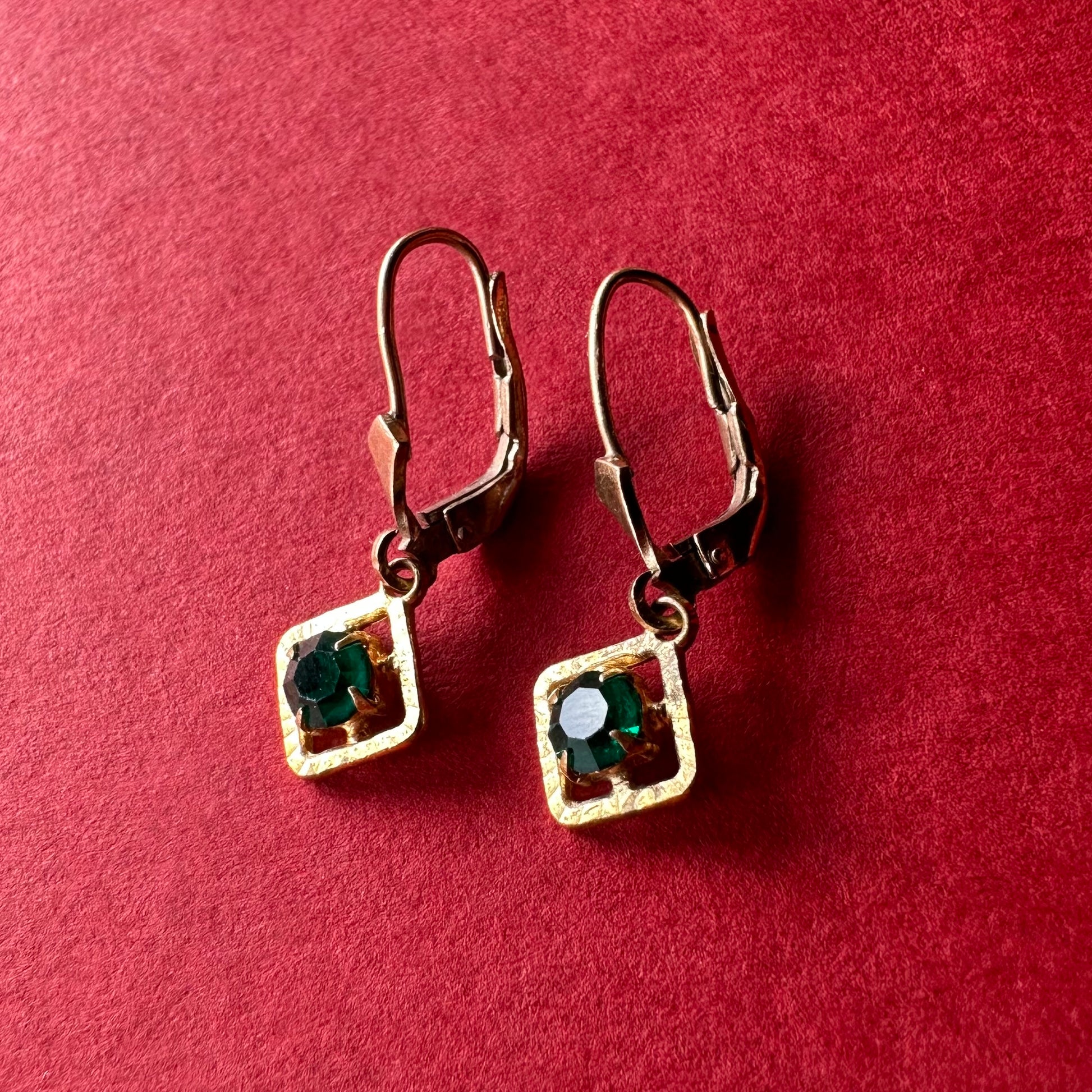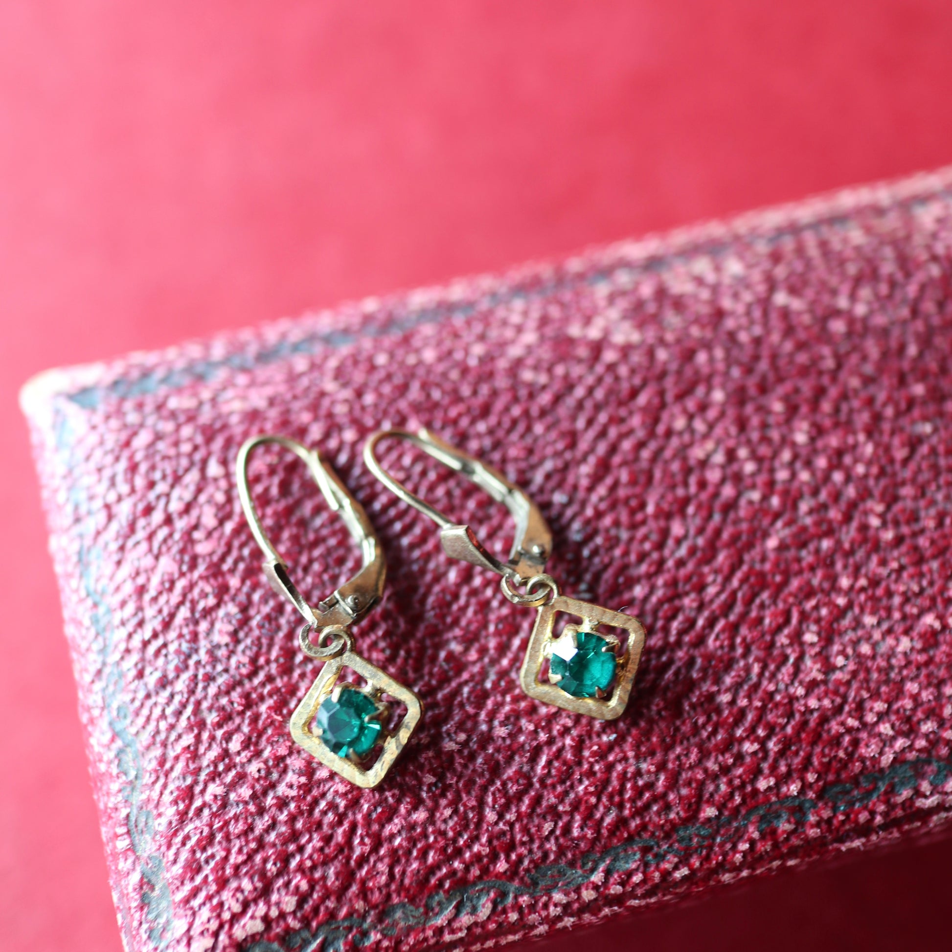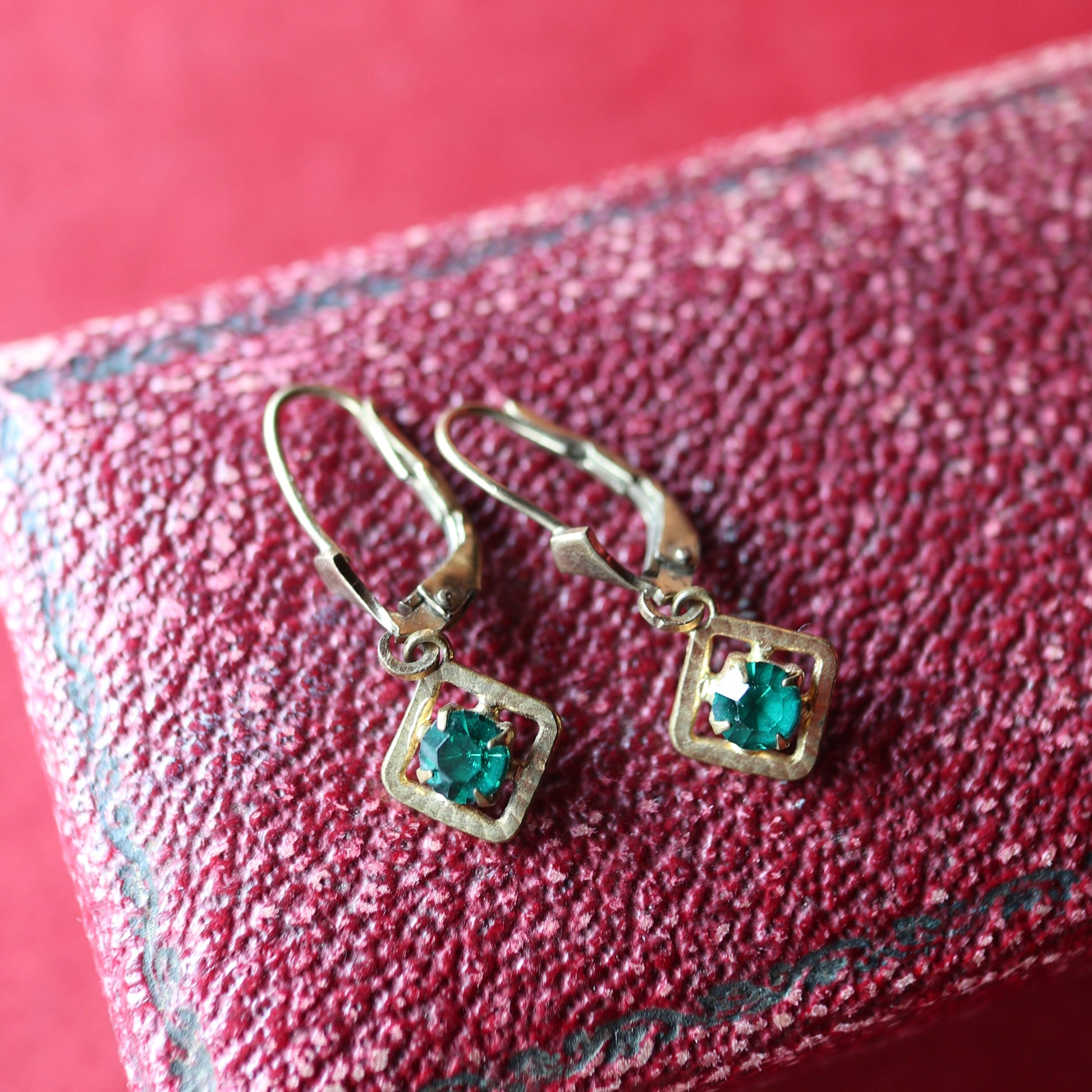 ドイツヴィンテージ グリーンカラーグラス ピアス