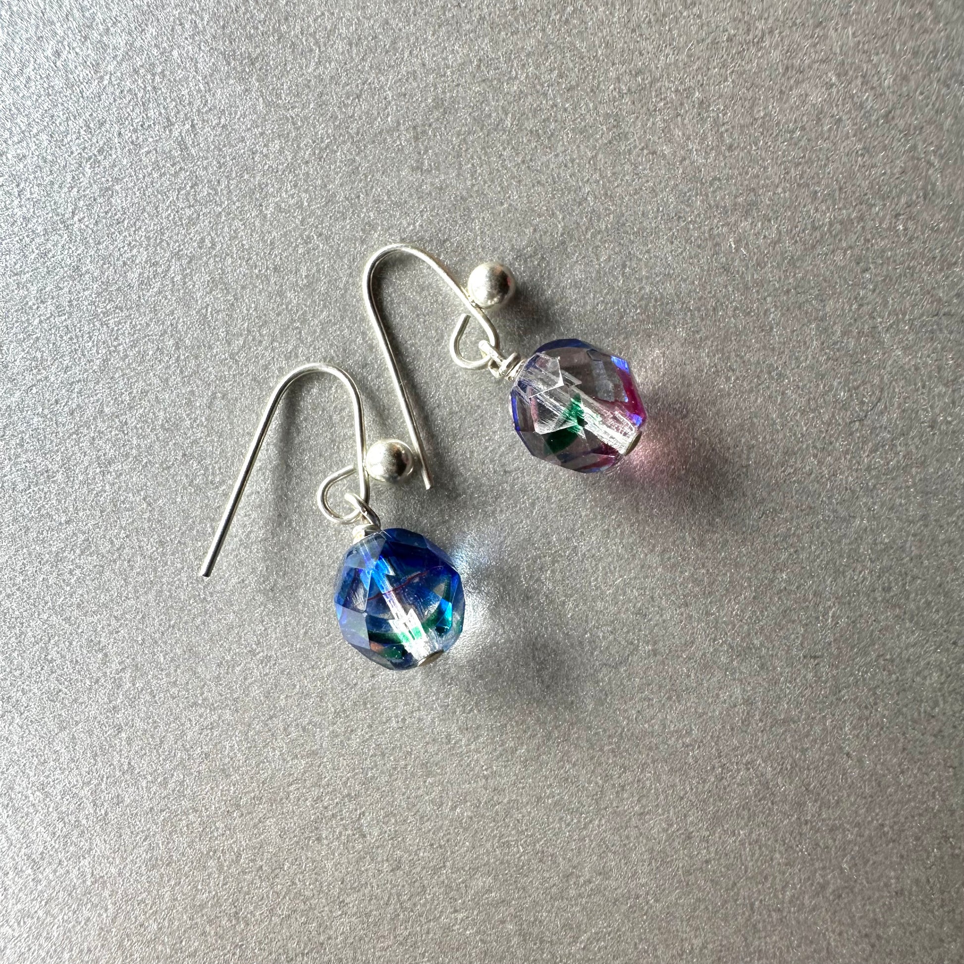 こちらはヴィンテージのアイリスグラスをピアスにした、
